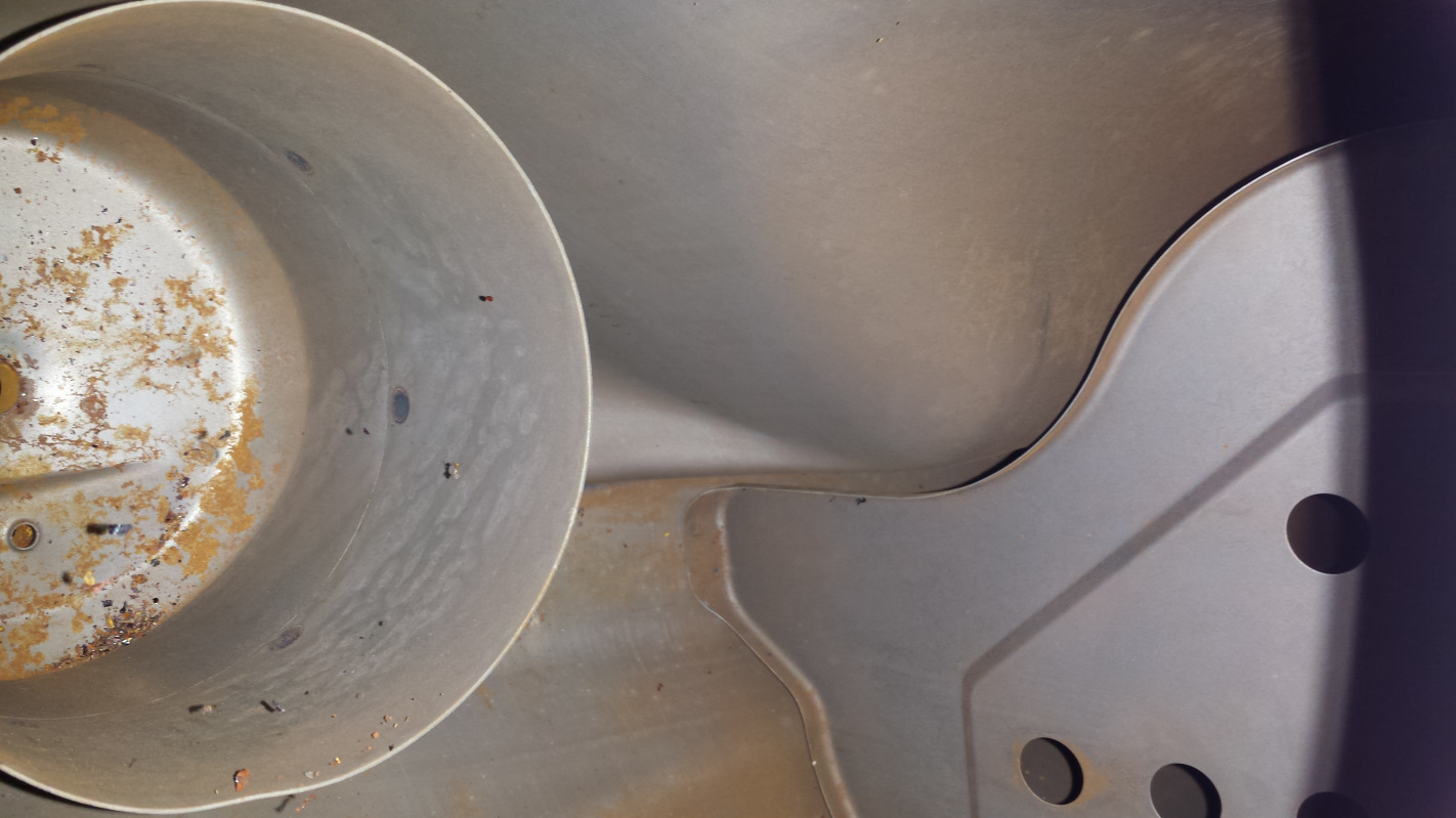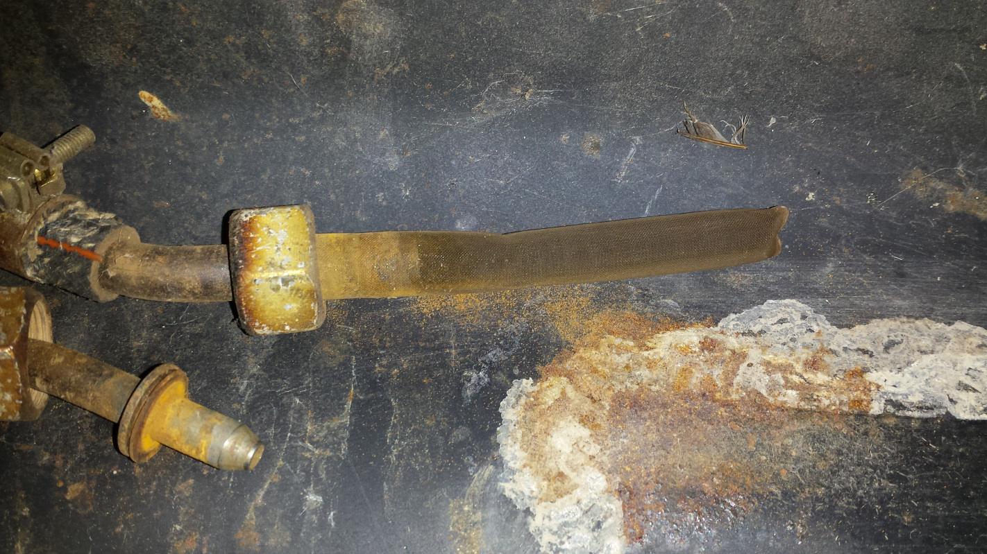 Continuing to gather the last hardware bits to prep for plating. This plating stuff really sucks because it forces you to disassemble components before you are ready. I much prefer to break a component apart, refresh it and put it back together before all those memory synapses decay. Oh well, I'll quit my bitchin'. This morning was breaking down the fuel tank. Nothing noteworthy except look how clean this is inside. (IMG:style_emoticons/default/piratenanner.gif) Even the sock was in great shape. I guess the tin worms were too busy eating the rest of the car to notice this. Probably helped that the last tank of fuel in this sucker was old fashioned leaded petrol with no ethanol. That's no joke. I was planning to do the whole electrolysis thing to clean this tank, but that seems like a wast of effort. Now I'm thinking just an overnight soak with vinegar or metal prep and call it good. What do you smart people think? (IMG:style_emoticons/default/confused24.gif) BTW, that first pic shows maybe the best reason of all why it is a good idea to run a return fuel line. Anyone see what it is? (IMG:style_emoticons/default/popcorn[1].gif) |