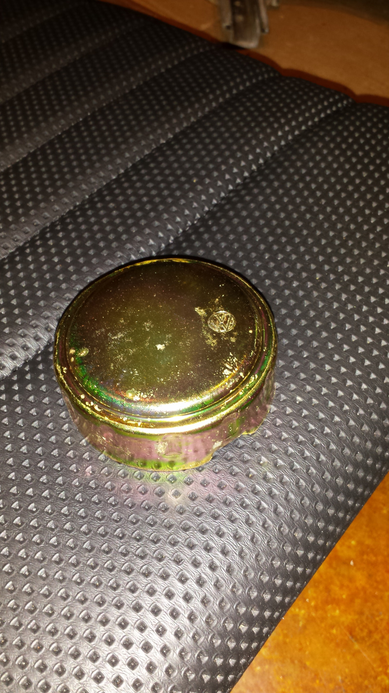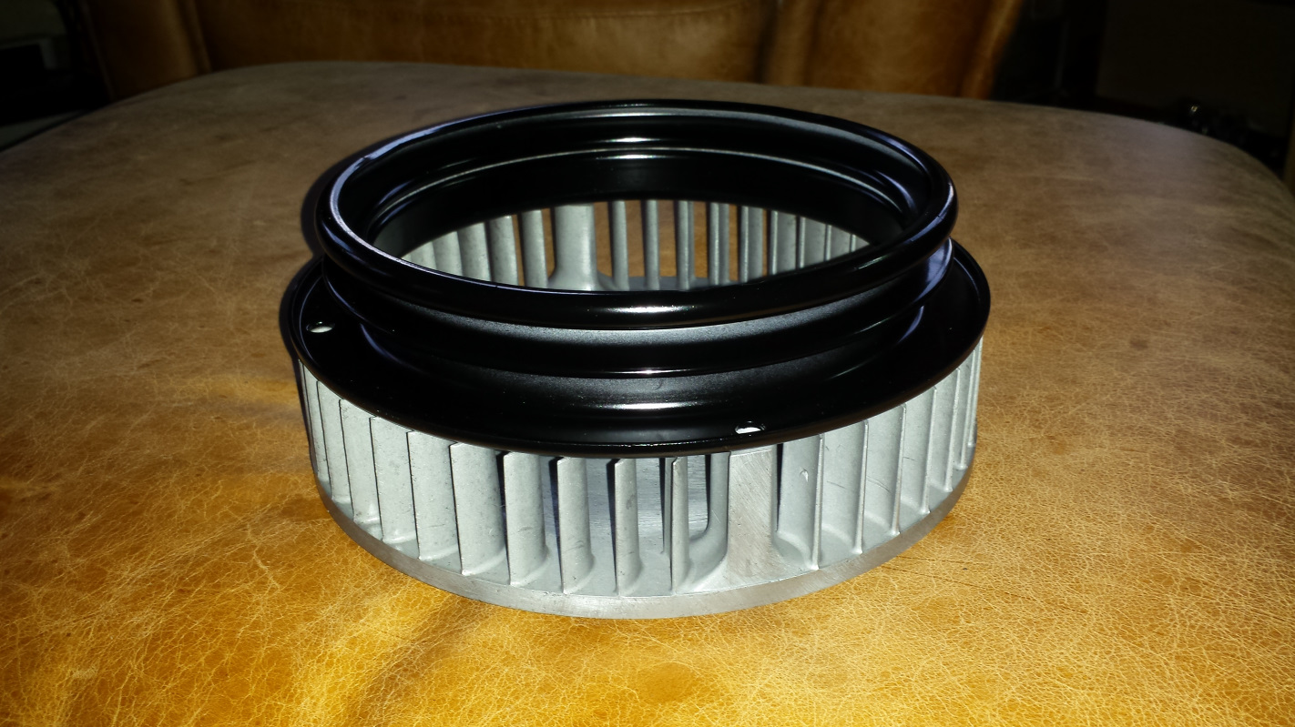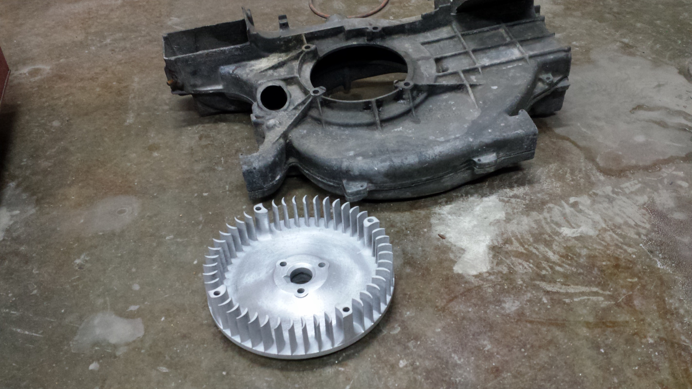 cup full not empty But does it runneth over? Ok, here's a little catchup of some tasks that go back to the weekend before New Year's Day. I decided to clean up the engine fan and shroud. That seems random, but there was some logic behind which is long and boring to describe, so I won't. I wound up just blasting them with crushed glass because I didn't have much luck with walnut shell. This pick shows the fan after media blasting followed by brushing with a brass wire wheel against the untouched fan shroud. And here's the shroud after the same treatment. Both were sprayed with Boeshield T-9 for protection because it was recommended on another thread. Seems like good stuff but time will tell how it protects over the long haul. The fan was a little frustrating because I picked up a can of VHT primer on New Year's Eve and went to paint the fan pulley the next day only to find the paint had gone to shit. I suspect it had frozen as the pigment just puked out in solid chunks causing me to have to reblast the pulley and put the task on hold. Finally climbed off my hermit mountain last week and exchanged the paint, so finished the job this morning. It isn't bolted together as that hardware is in the plating buckets. Here's a shot with the repainted timing marks. The story on that black mark is in this Mystery Mark thread. My other task today was to do something about this box of rusty brake calipers. Oh yeah, I also finished blasting the A-Arm that has been in the blasting cabinet for weeks. Look closely and you can tell which one it is. A better shot of the calipers. Two of them have taken a ride on the wire wheel. I'm told the shine will show through after plating. |