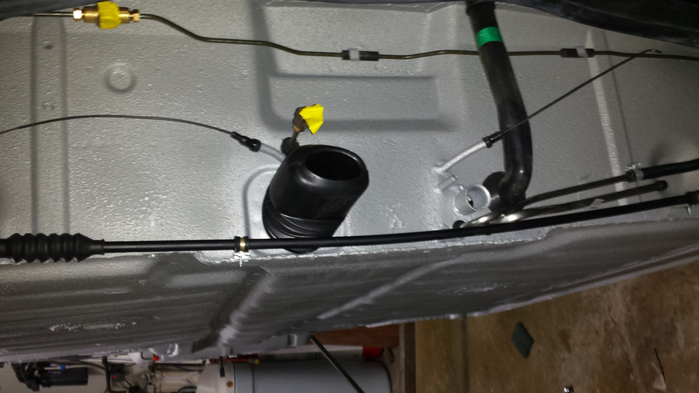 Anyone know which way those hose clamps are supposed to mount? It seems both options are bad. If you turn the hose clamp so the cable hangs beneath the brackets, the cable gets blasted by road grit. Turn them so the cable rides on top of the brackets and it interferes with the shift linkage bellows and runs across the accelerator cable. For now I have it riding on top because that is a straight shot out of the tube exiting the firewall, but open to suggestions. Oh yeah, bling... With that cable installed, might as well finish it off on the cockpit side. My oh my, ain't that purty! Seems a shame to cover it up. Last one. No 914 is complete without this. Okay, some are complete without it but this is better. (IMG:style_emoticons/default/rolleyes.gif) |