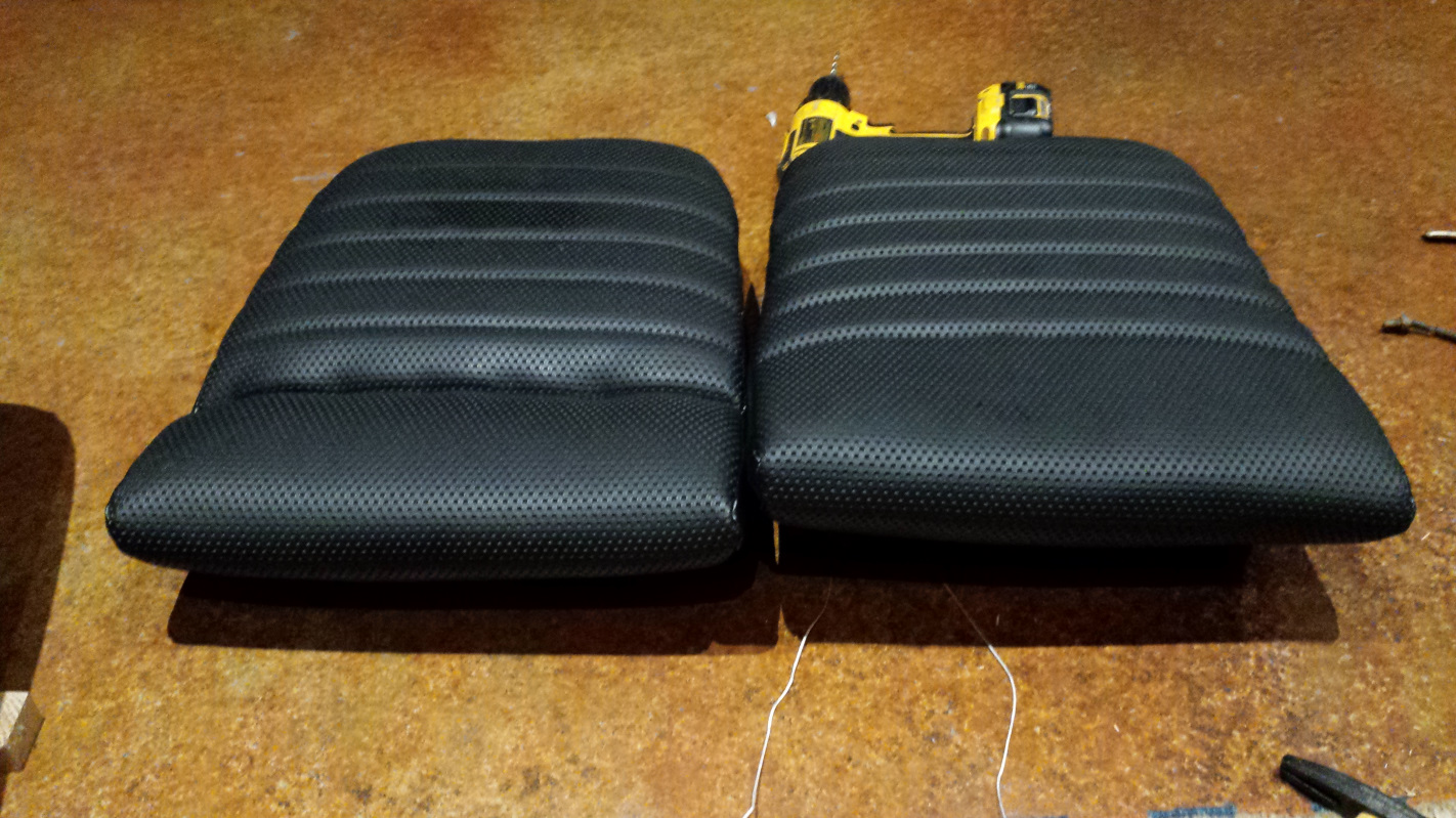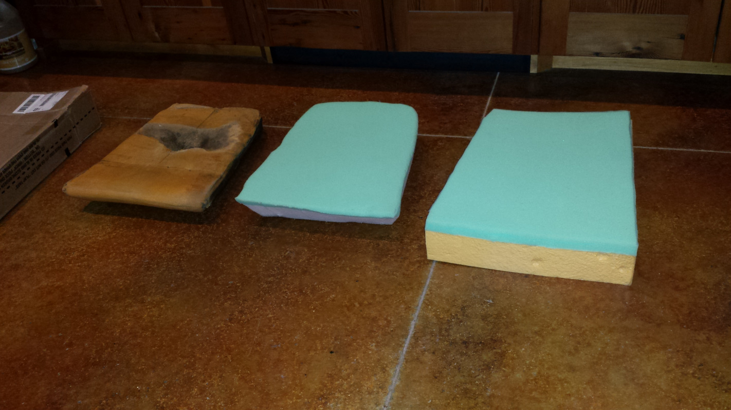 A few more shots to finish up the seat cushions. First, a comparison between the first finished cushion and an original. I don't see much difference, but it will be nice to know that I'm farting on all new material as I drive. (IMG:style_emoticons/default/lol-2.gif)