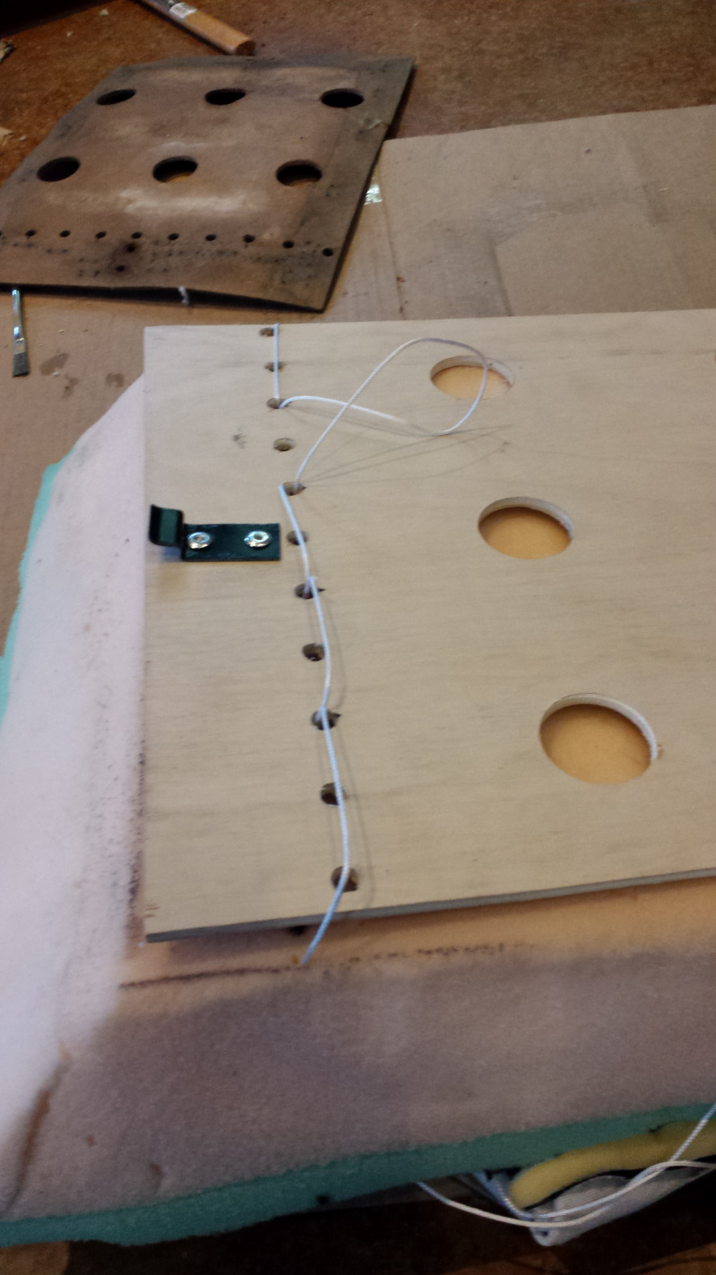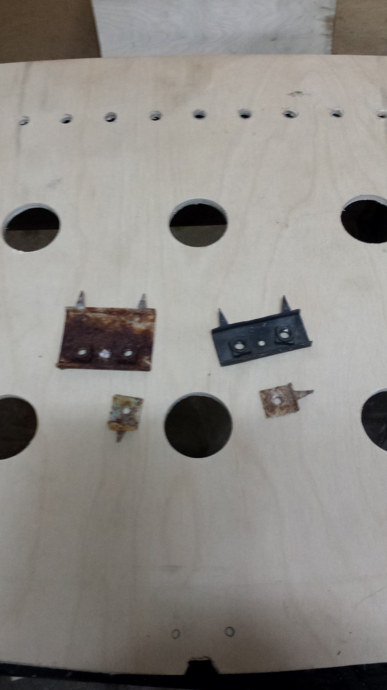 Before the vinyl could go on, I had a bunch of the metal prongs that had come loose that needed to be riveted back in place.