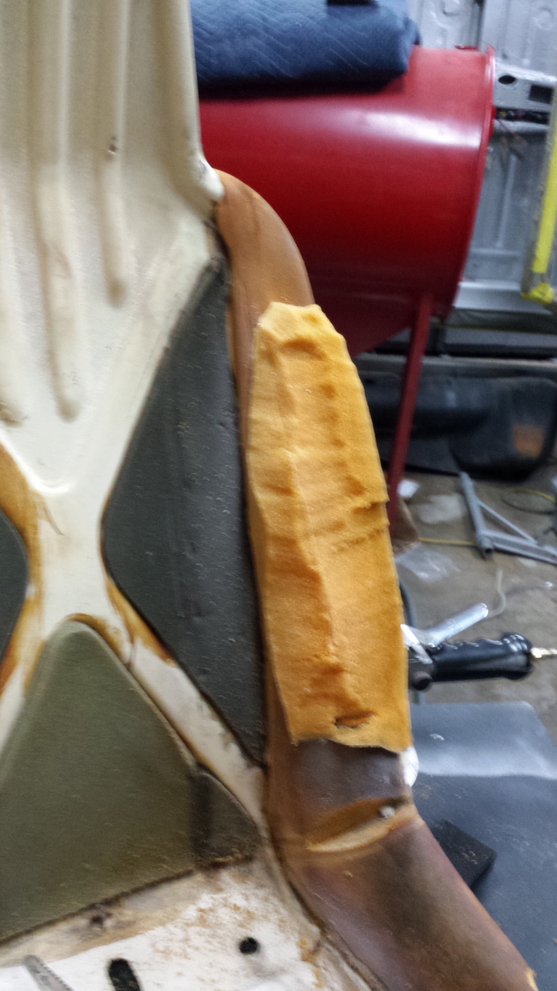 Your a patient man. My first set of seats were in bad shape so I set them aside and used a nicer pair that I got from Rory. I was a bit nervous about recovering the bolsters but it went well. I prepped the contact cement before I installed the vinyl and the heat gun was my friend to remove the wrinkles.