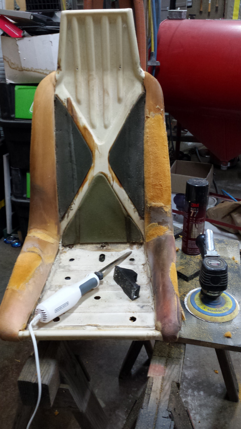 Really nice work Brent and I must say I have been following this thread religiously and have learned a lot. The nice thing is we have both been doing the same exact stuff but your about 2 months ahead of me. So, anytime I start something new I look here first. Thank you! (IMG:style_emoticons/default/beerchug.gif) Thanks so much for the compliments. This has been a fun journey and I love learning new stuff, but you must realize I'm just an ignoramous fumbling in the dark here. So far, lady luck has been with me. (IMG:style_emoticons/default/beerchug.gif) Your a patient man. My first set of seats were in bad shape so I set them aside and used a nicer pair that I got from Rory. I was a bit nervous about recovering the bolsters but it went well. I prepped the contact cement before I installed the vinyl and the heat gun was my friend to remove the wrinkles. Yeah, I was pretty nervous about salvaging that driver's seat, but out here in the wilderness, I don't have much choice. Donor parts are never a local item and shipping alone racks up in a hurry. I'm mostly glad of that though because it leaves me no option but to learn new skills which is what I enjoy most. As it turned out, repairing the foam was one of the easiest parts of the job. Honestly, I completed the foam repair on the driver's seat in well under an hour even with not having ever done anything like that before. I spent more time watching Youtube videos on how to do it than actually doing it. (IMG:style_emoticons/default/smile.gif) The only real trick was learning how the knife and sander react to a material I'm not used to working with. Good point about the heat gun. I did use a gun to pull out wrinkles on the first seat, but I liked the steam iron better because same result with less risk of melting something. But yes, even with good stretches on the fabric, it will be baggy and wrinkly in spots so you need to go over the whole thing with heat to tighten things up. Also, for those contemplating doing this, shrink the wrinkles out of the bolsters BEFORE you install the back piece. I screwed up on the first one and there is a lot of the bolster you can't access once the back is on. I may wind up pulling the back off the first seat and running over those spots with the steam iron. I wound up with a few small wrinkles on the inward corners of each seat. Just couldn't stretch them out and heat only took them so far. I could probably keep working them down but they are barely noticeable so I'll probably just wait to see if some time in the sun takes care of it. |
