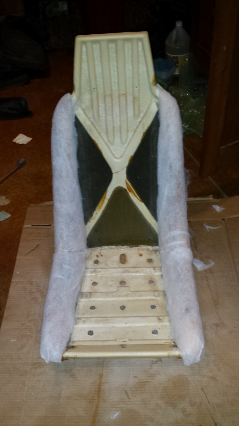I reupholstered the front and rear seats in my '70 Ghia last year. The car came with a couple of heated Subaru seats and I originally planned to keep them, but as I dug more into the process, realized I would have had to install some switches and run a bunch of wiring to each one because in addition to the heat strips, they had multiple motors to adjust everything (IMG:style_emoticons/default/blink.gif) So I picked up a pair of correct year seat cores from a gentleman at the Paso Robles airport for $50. Turned out, he is Elliot Cannon's AP mechanic - small world. They definitely needed some work, but all the parts were there. I ditched the OEM horse hair padding, cleaned up and painted the frame and springs with Rustoleum's 'Rust Reformer', and DupliColor's semi-gloss on the visible parts ... ... then installed a layer of polyester padding, new foam and another layer of polyester padding before the new vinyl covers. The foam and vinyl were purchased from West Coast Metrics. I think I got the polyester at Walmart (IMG:style_emoticons/default/unsure.gif) They turned out pretty nice, considering it was my first attempt at doing that ... ... but I ended up taking the passenger's seat bottom apart again and added some additional padding to make it match the driver's seat better. I forgot to take new pix though (IMG:style_emoticons/default/dry.gif) |