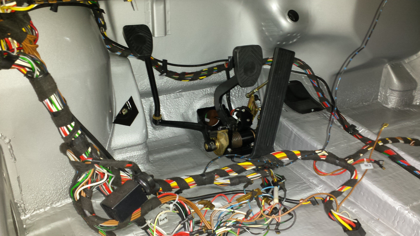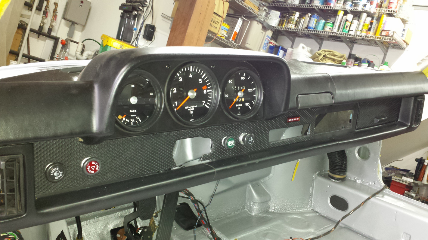 I rigged up a Poor Man's spring tester today using some scrap plywood and a bathroom scale. I was hoping I would be able to put a 1 inch pre-load on the spring, tare the scale to zero, then crank the spring down another inch to read only the weight added in the second increment. I wasn't surprised it wouldn't tare with that much weight but my backup plan was to tare the scale with the spring on and no compression, then take incremental readings as I compressed the spring an inch at a time. Like most "smart devices," this thing is dumb as shit. Simple analog would have been much better. Anyway, I managed to compress the spring manually an inch to get a reading, then repeat at 2 inches. I tried for 3 inches but was afraid I would break the rig. Anyway, I was able to get consistent readings of 42 lbs. for the first inch which I expected would be light, then 92 lbs. at 2 inches. If I'm thinking right, that means my springs are only rating at 50 lbs/inch. Not unexpected but crap (IMG:style_emoticons/default/sad.gif) I guess I'll jump on the GB for stock springs that 914Rubber has promised. To end this on a more satisfying note, I put the instrument cluster in the dash today. Waiting for the wife to notice it missing from the family room counter. They look better in the dash. I'm a little bummed though because I have a set of new gauge gaskets from 914Rubber but they fit way loose in frame and the gauges would fall out if I used them. My original gaskets are looking a little ratty but at least they hold the gauges in place. And here is a shot of the pedal cluster back home after 35 years. (IMG:style_emoticons/default/cheer.gif) |