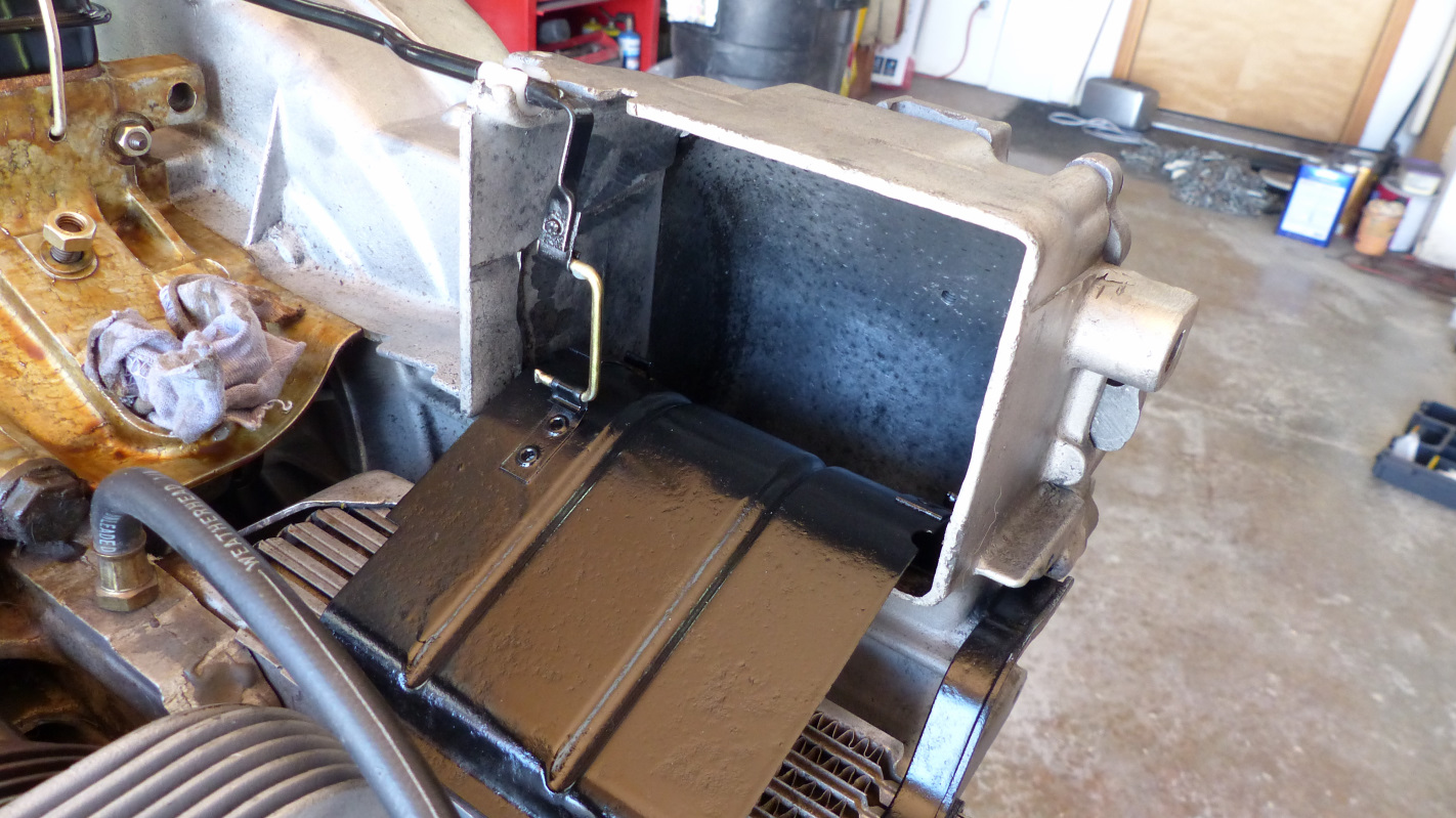 Work continues on the engine while I wait for barrel shims. All the tin and bolt-ons were painted with high temp paint back when I rebuilt the short block, but I didn't have access to a blasting cabinet then. Everything is getting blasted back to bare metal and repainted. This is the one place I would use powder coating if I had the coin, but I don't. Powder might hide some of the pitting on the flappers but nobody will see them once the tins are on. Spent some time with the zinc chemistry set to make all the bits shiny too.