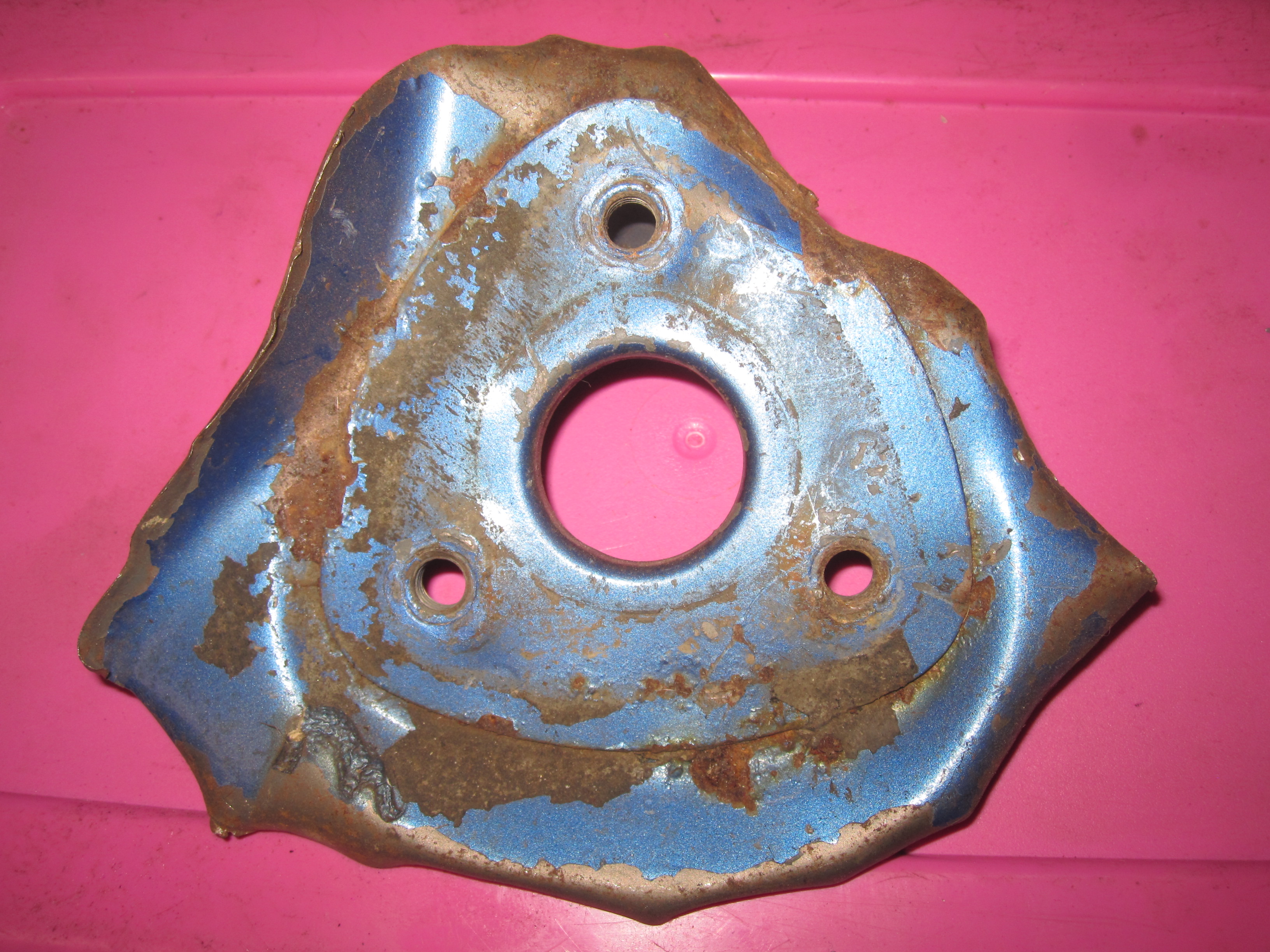 Here is an old picture of mine, before I cleaned them up. 70 '6, purchased used in July 1977. These were on when I bought it, so can't say if factory or dealer, but my understanding is they are 'factory correct'. This his helpful. Thank you for posting. I am trying to see what the factory welding looked like (i.e., was it tack welded or bead welded). Perhaps it is not possible to see it when everything is assembled? (IMG:style_emoticons/default/welder.gif) IIRC, welding is only done at the tab on the inside where the gas tank sits. The outer tab then bolts to the inner with the wheel well sheet metal in between. |