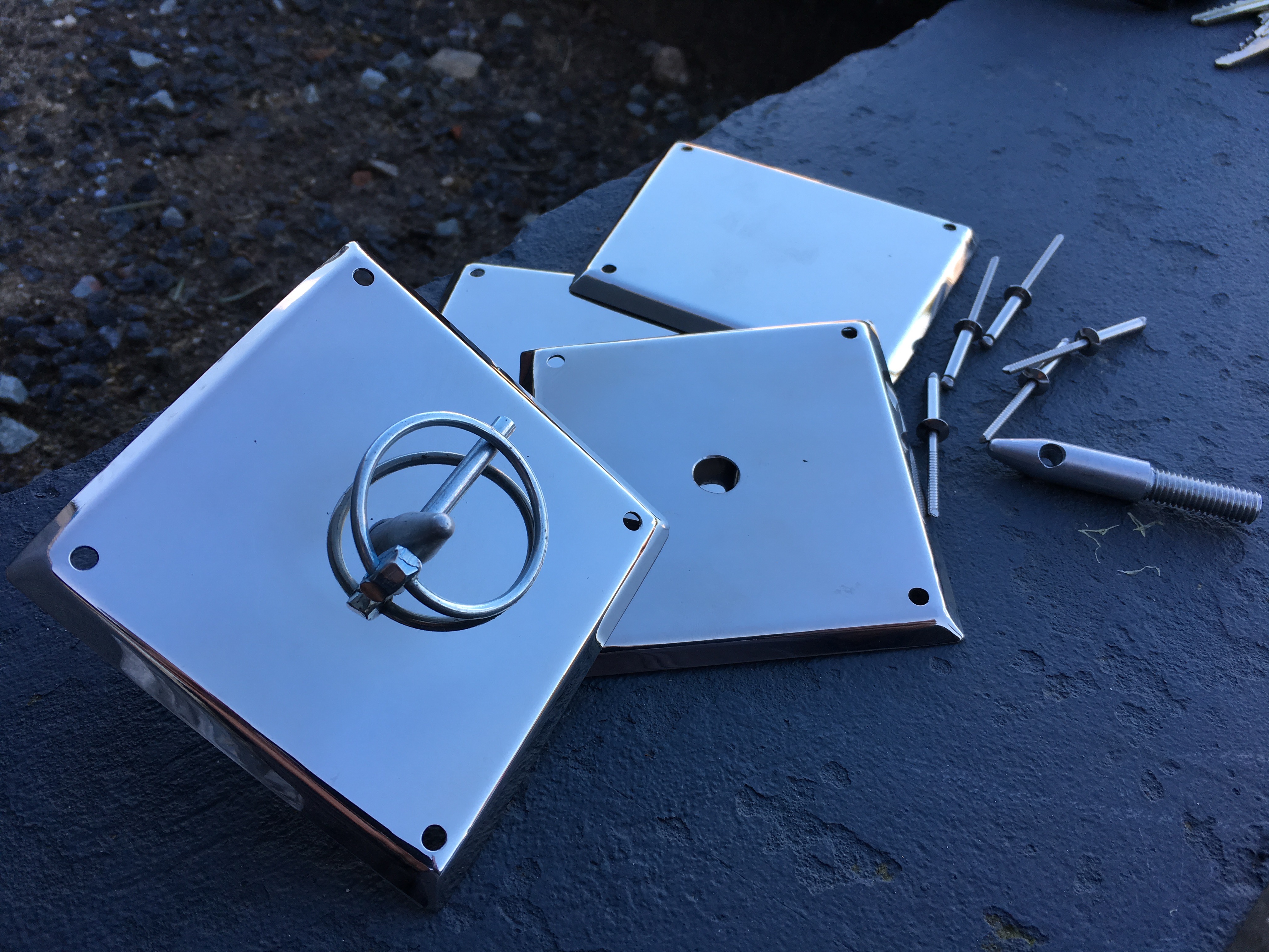 Inspired from the original race cars, I made them of stainless steel - polished up , as the alloy ones I tried look a bit bumpy after a while they have the bended edges as the original ones I have seen so they are not just a flat piece the Kit contains * 4 polished stainless steel plates with a center hole for the pin ( You can order these with out the center hole ) all 4 plates got 4 holes in the corners for the stainless steel rivets which are incl * 4 alloy pins , copy taken of org car * 4 locks * 18 4 mm rivet“s then you got 2 for spare my advice is to mount the plates firsts , drill a hole in the bonnet for the pin and rivets and fit the pins to match the hole afterwords, pretty straight forward if you got a fiber decklid I would advice to use a small washer underneath the rivet so the rivet dont shred the fiber I will post better pics asap , but I hope you get the idea The price is 200 EURO for a kit INCL SHIPPING - Paypal ok By interest please send me a email to Early911parts@gmail.com DO note due to custom clearence , snowstorms etc you must expect up to 30 days delivery , Do Note I am from Copenhagen - Denmark as you may say on the worng side of the pond Regards Marek Attached thumbnail(s) |