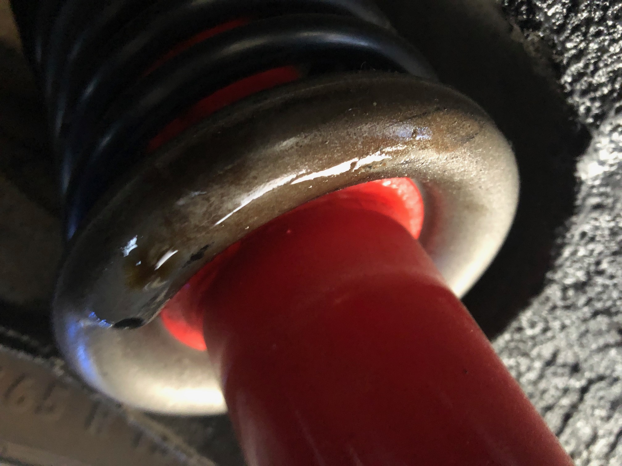 Shout out to @Mikey914 Just talked to Scott at 914 Rubber and he is overnighting me some replacement trim and vinyl. These guys are the best. Not only do the Targa Trim gods hate me, but so do the shock absorber gods. The rebuilt set of Koni reds of unknown origin have leaking seals. This is a blow to my quest for originality, but I'm over it and have a new set of adjustable Koni Sport yellows going in. |