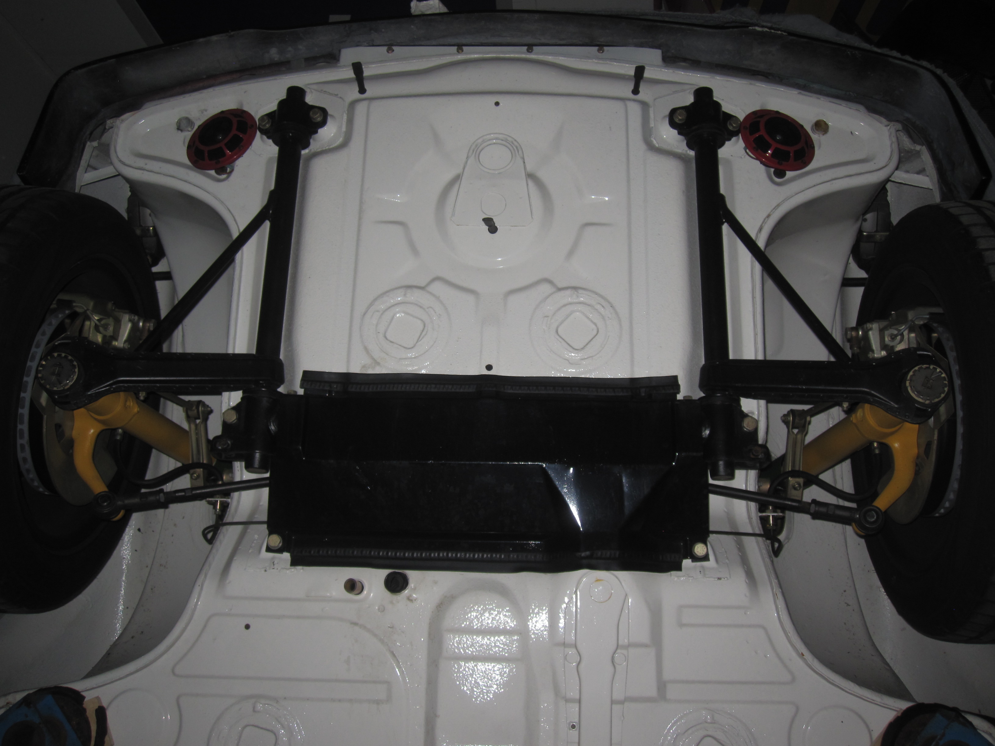 Finally some pics of the bottom of the car with the engine and transmission installed.