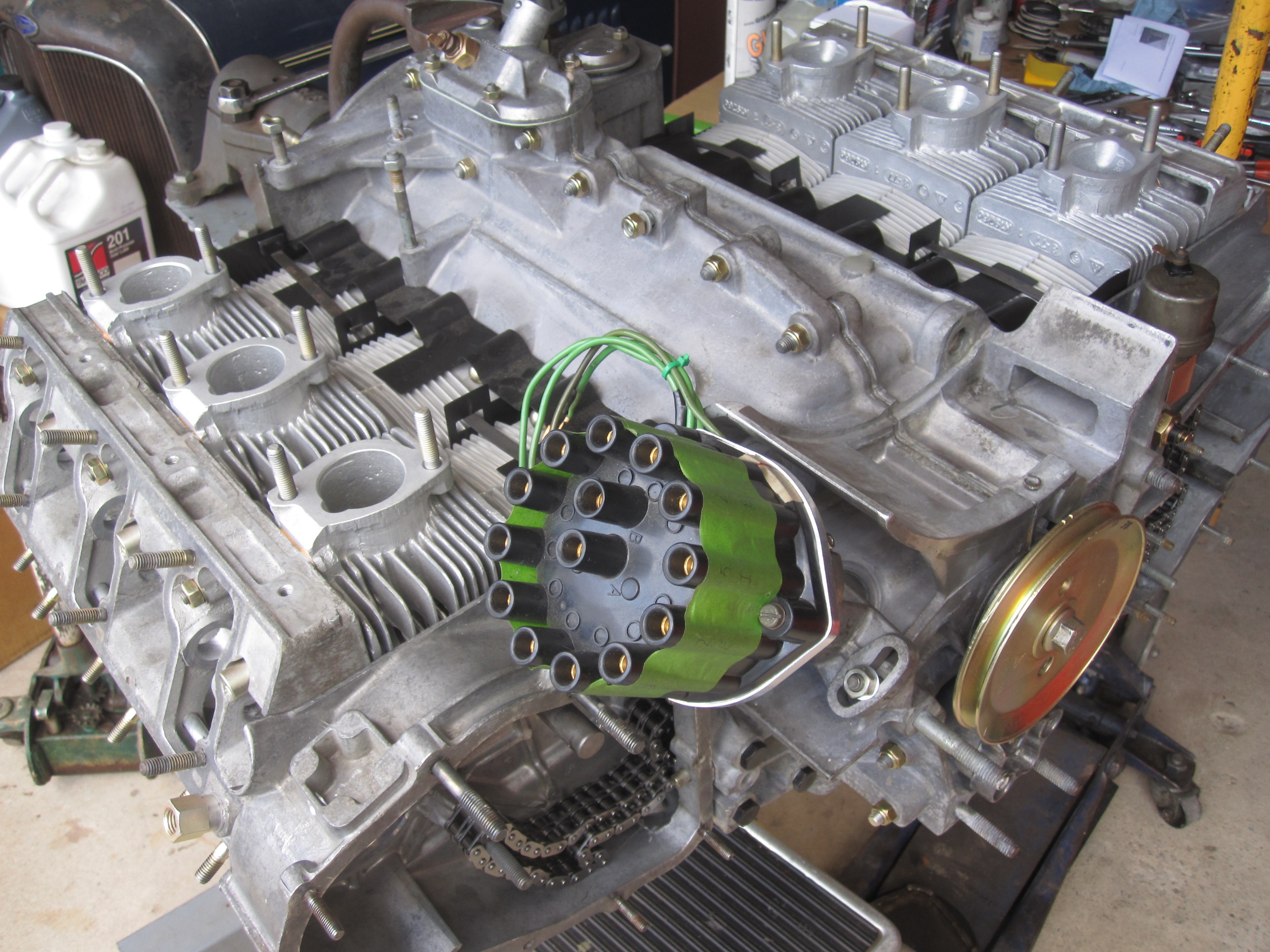 compression reduced to 9.8 to 1 Twin plug distributor added for bling shot Next up camshafts install and time, then add the rockers, adjust and button it up. Might start it out of the car for easy access and adjustment. I've never driven a short stroke 3.2 but understand they're quite lively and can make up to 300 hp Progress should pick up a bit now. Attached thumbnail(s) |