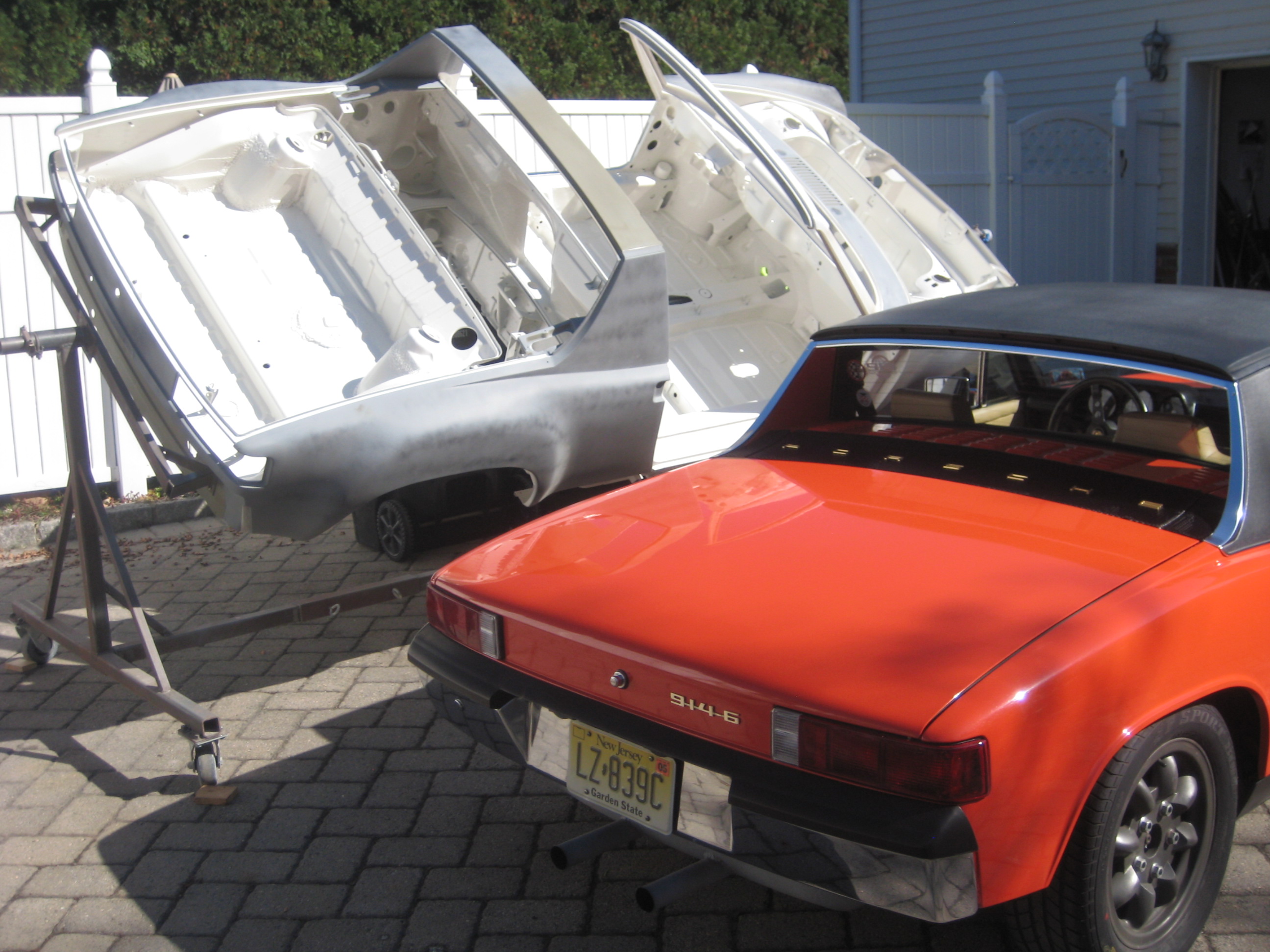 (IMG:style_emoticons/default/icon_bump.gif) How's it coming along there Rory? Any updates ? (IMG:style_emoticons/default/beerchug.gif) Hey Luke Happy New Year ! Plenty of progress through the fall months. Etching primer, metal massage / body work , fitting doors and lids, body schutz, pebble coat, etc.etc. Not my work, I paid an old friend. By the way two sets of front and rear lids and front and rear bumpers. Four in fiberglass and four in metal. In a lull now, doing projects on friends cars. Revived a 73 911 after a 21 year snooze and also revived a '70 914 6 that is 13 VINs from mine. The engines are consecutive numbers ! Fresh engine never started after being rebuilt in 1991 ! by a well known guy I worked for ....way back. Purrs like a kitten. Attached are some random pics. Stay in touch Attached thumbnail(s) Attached image(s)