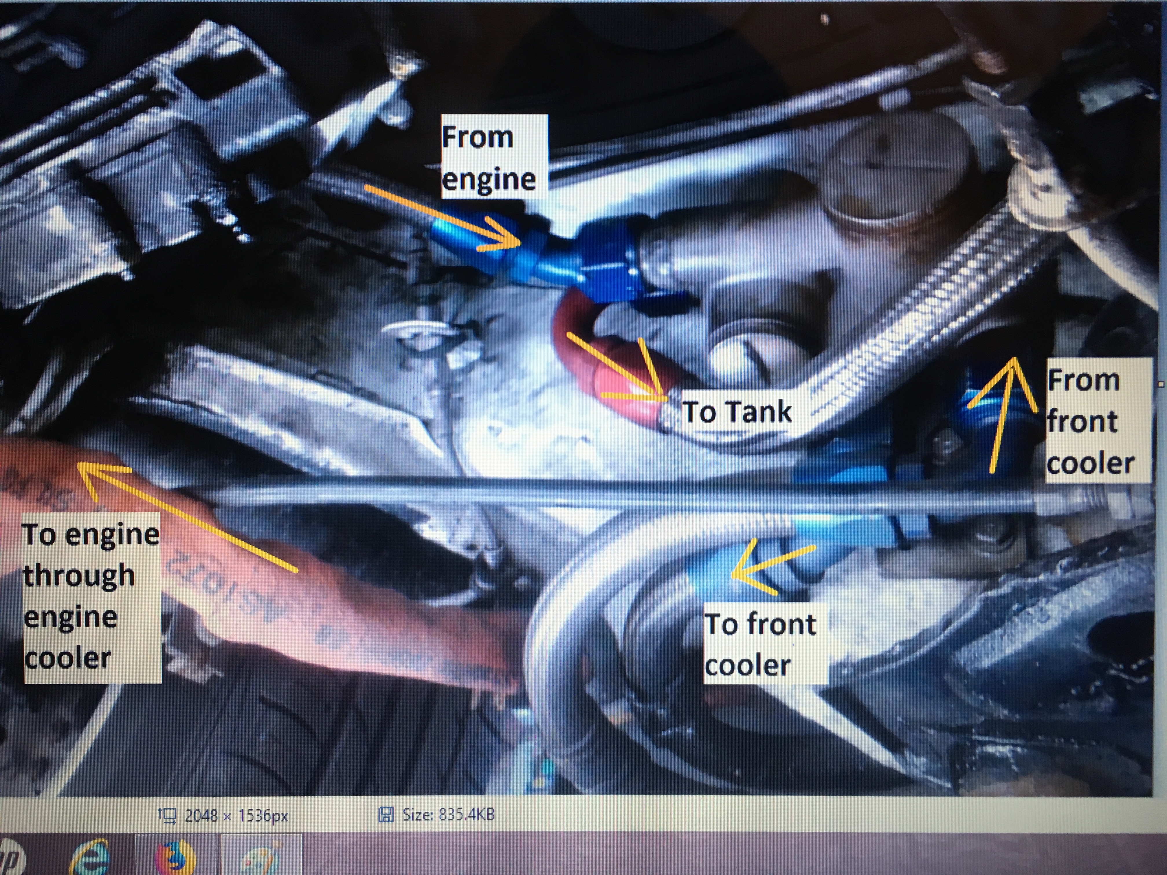 30 from tank to oil cooler and 26 from engine scavenge to oil tank return. Sorry to Labour the point but are they 30mm at both ends of the oil tank to engine oil cooler line on a 3.2 ? (That was the one I'm interested in) Thanks Yes If you want to run A/N hoses, you can get metric to A/N adaptors for the metric fittings. Then you aren't locked into the length of the metric hose if your building a non stock setup. Ok great. Cheers |
