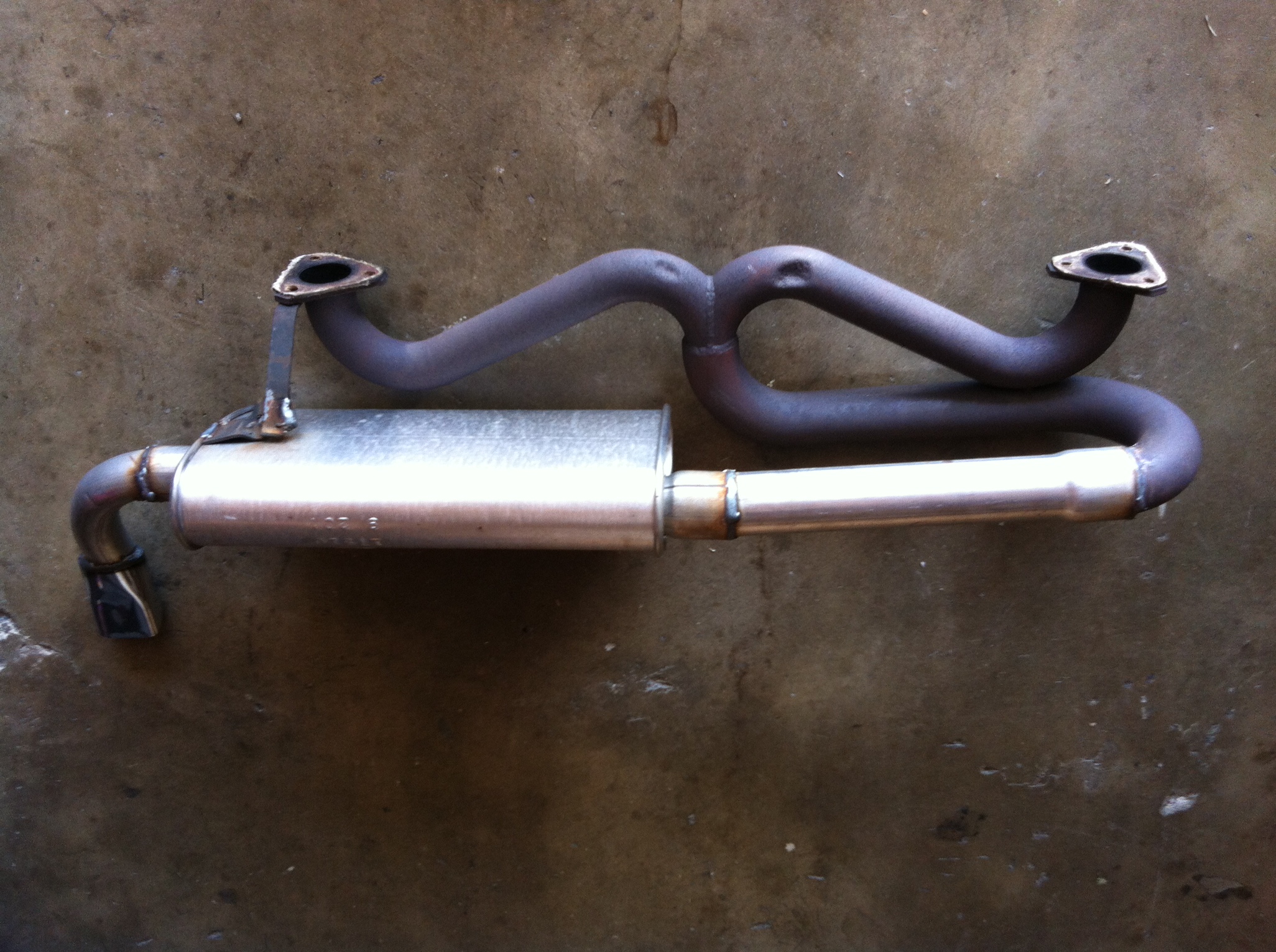 (IMG:style_emoticons/default/agree.gif) You'll need to change out your 75/76 style heat exchangers for 73/74 2.0L heat exchangers and a correct muffler hanger to use any muffler designed for a early 2.0L application.