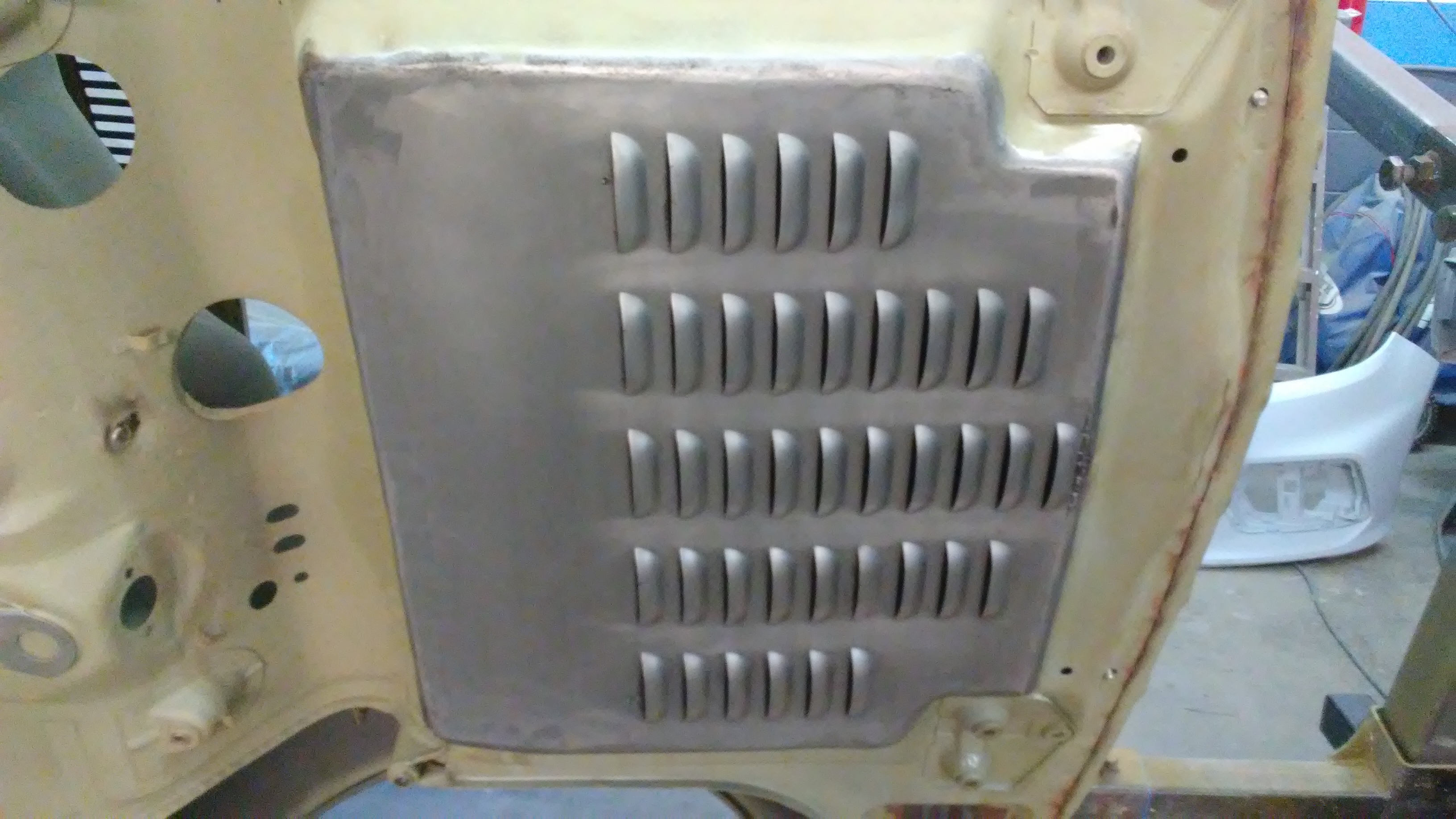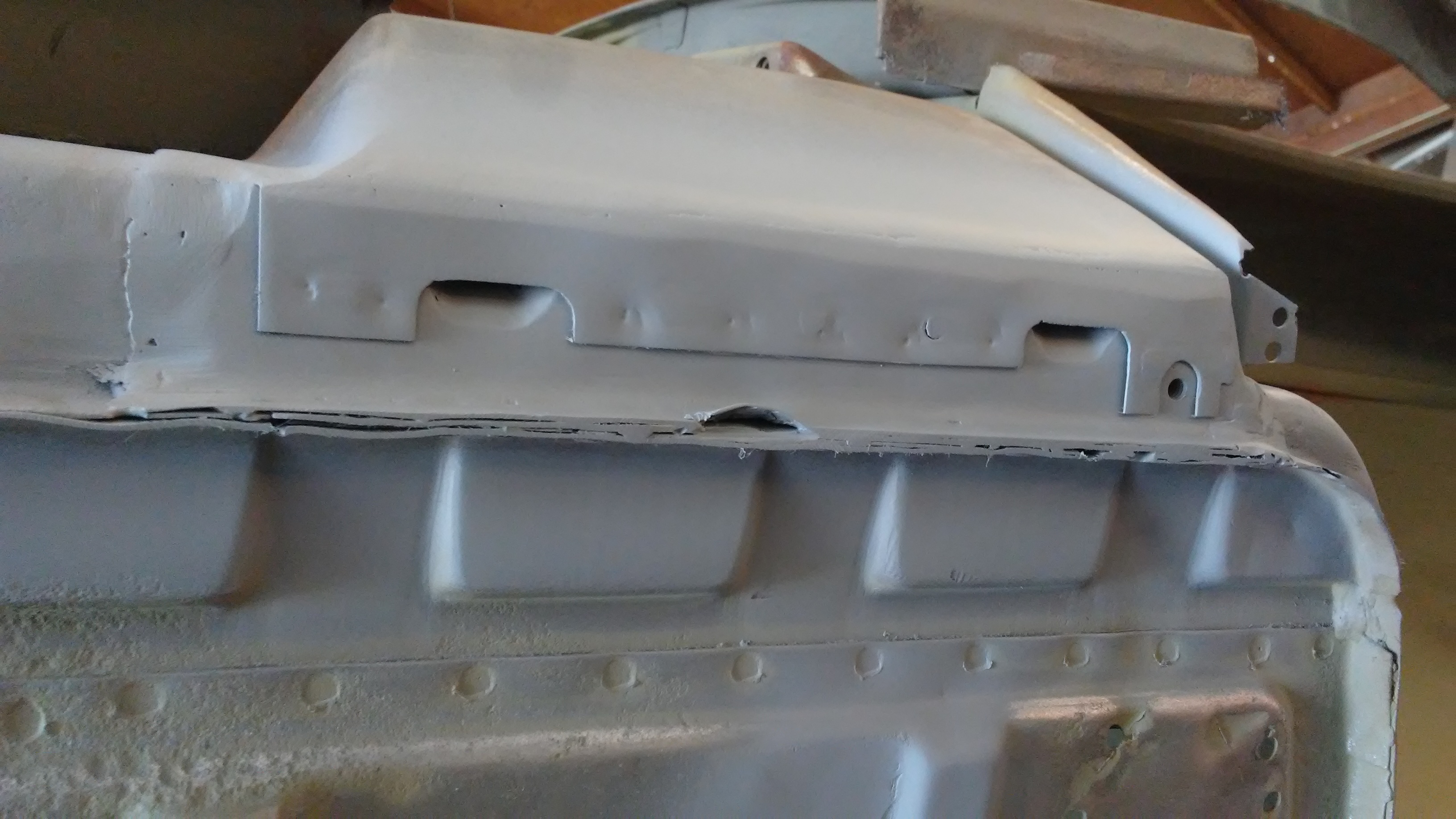 Created the drain channels in the panel then made the flange that comes down over them...also located and welded in the nut for the rocker cover.
