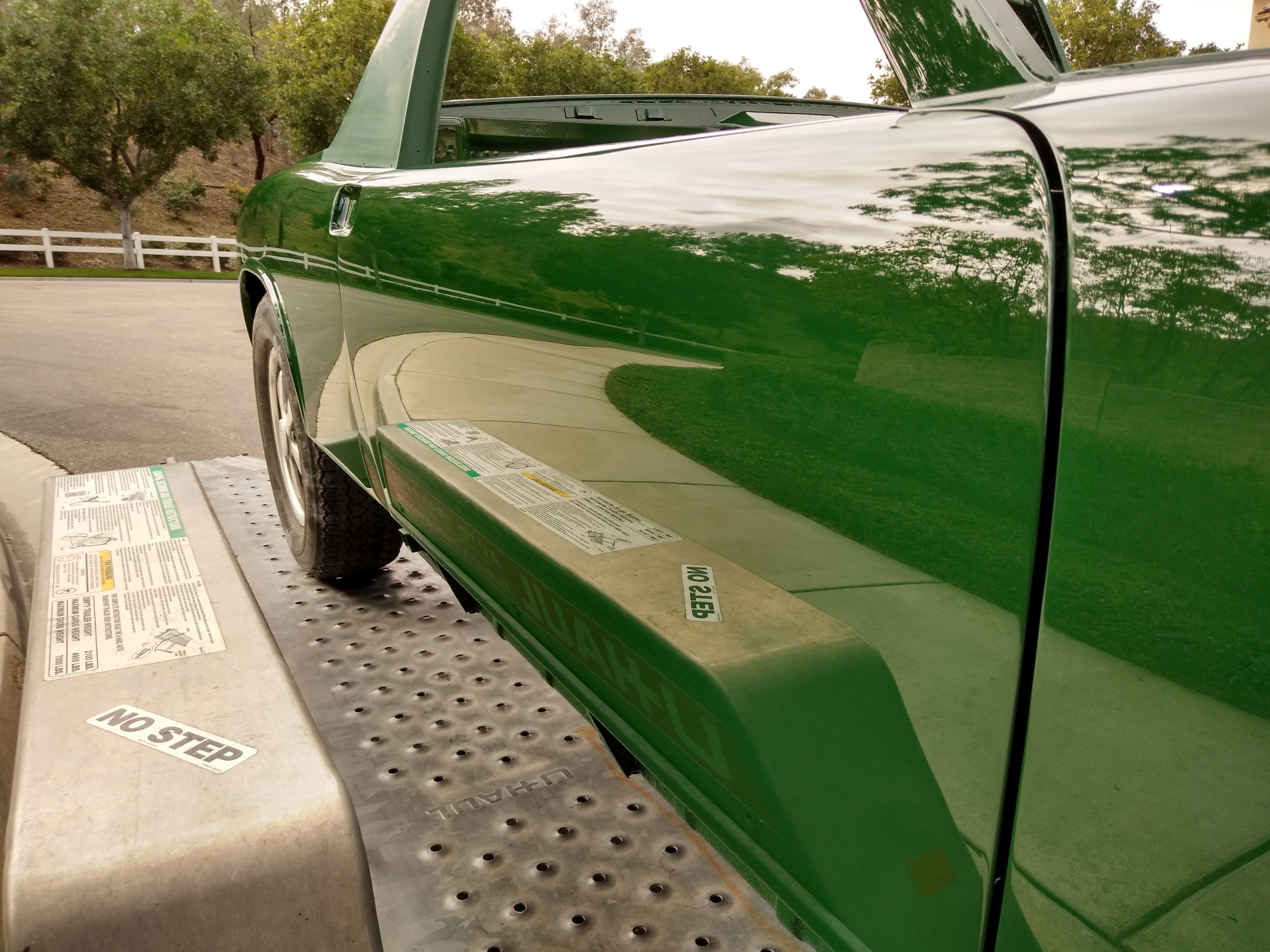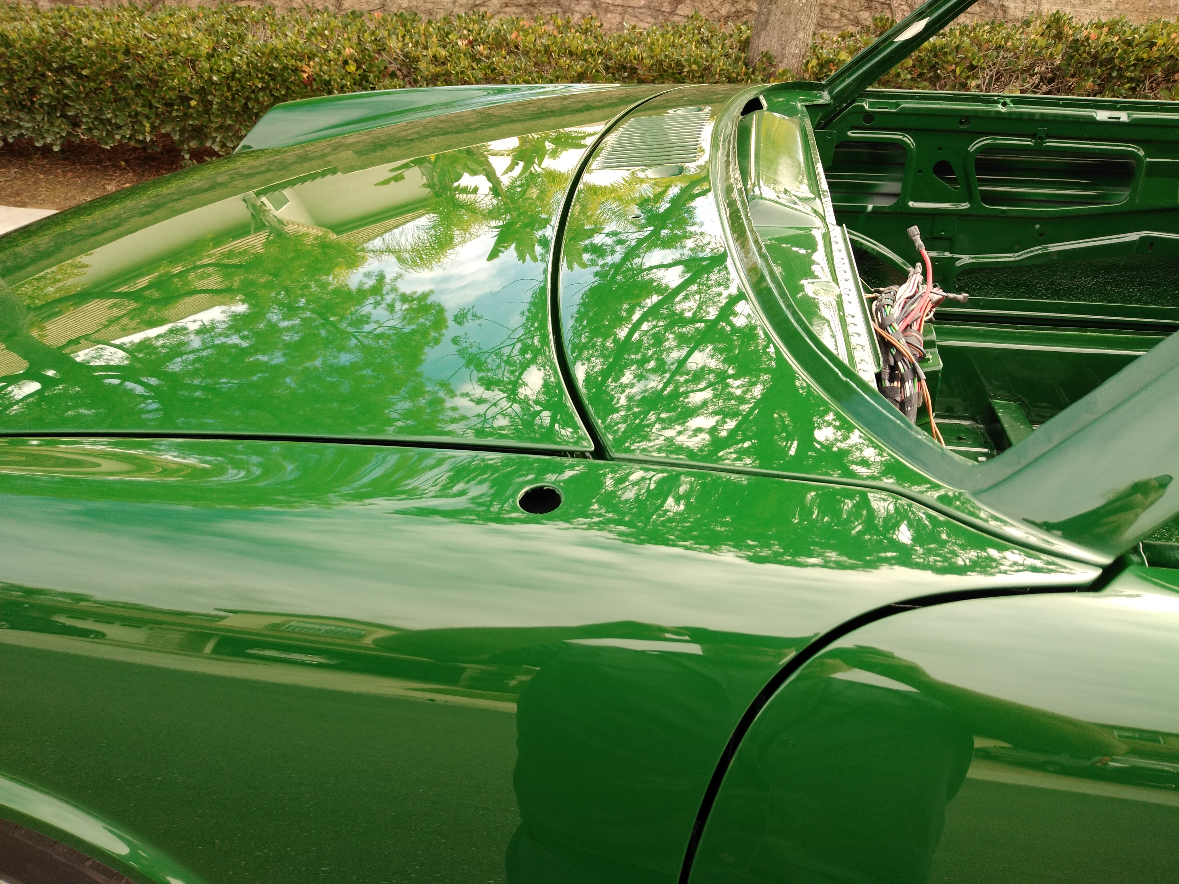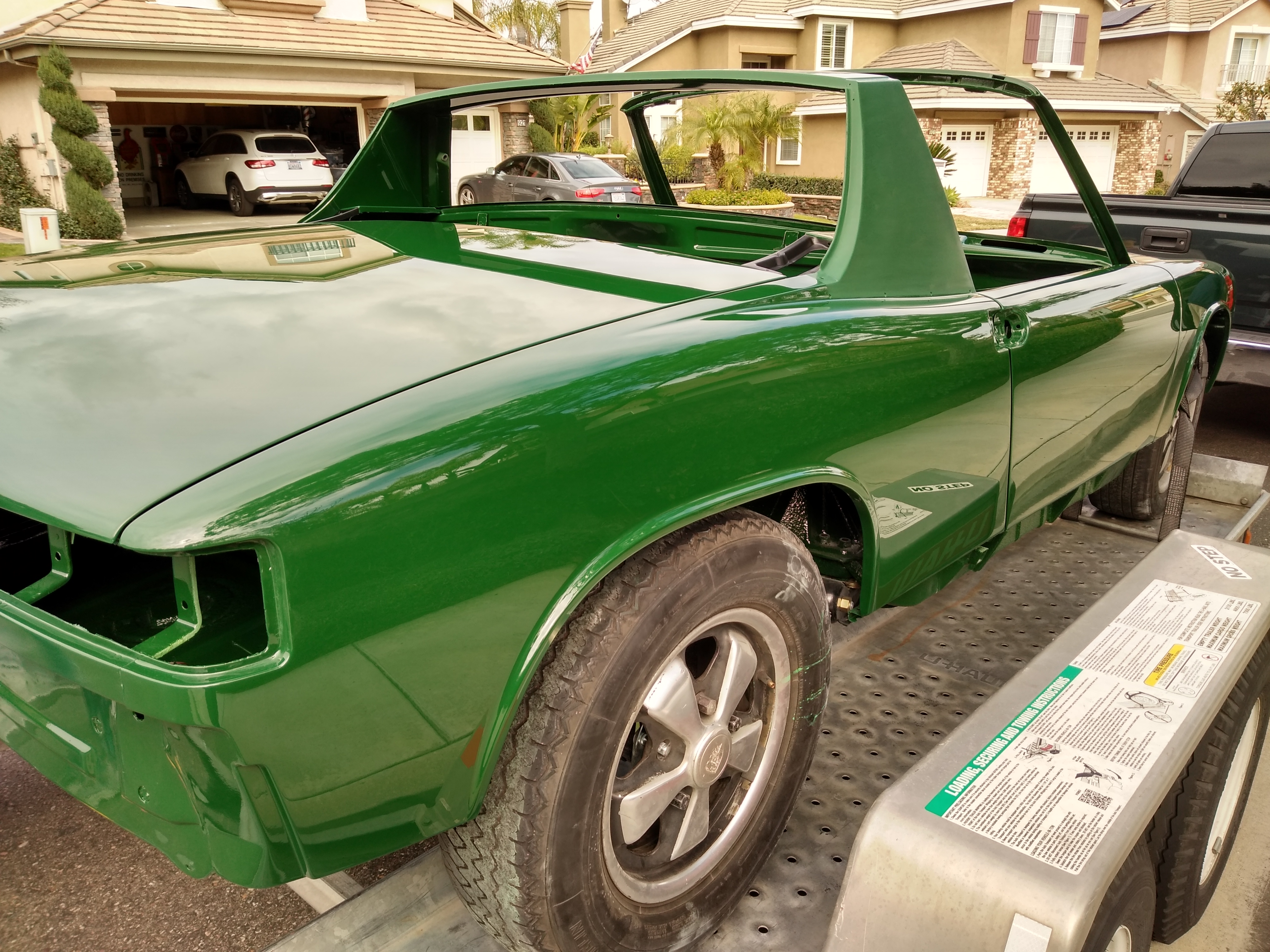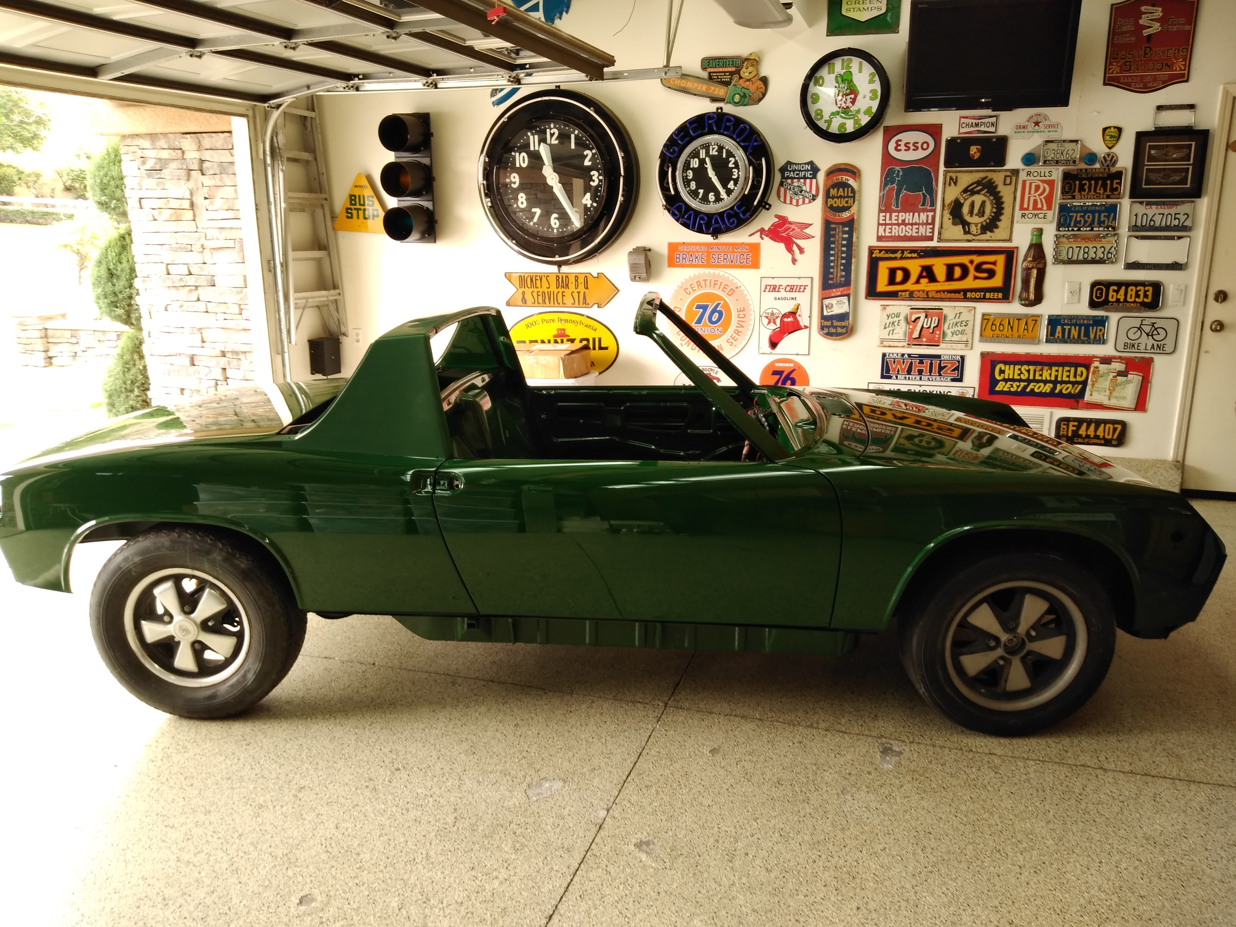 If you aren't aware, getting my Six to this point was a very heavy lift. My car came apart in 2012. I took it to Kent's shop at the end of July in 2017 and he had a lot of work ahead of him to get it back to factory specs or better. In less than 18 months we have an absolutely perfect chassis sprayed in Irish Green. The skills it took to get my chassis to this point are over the top. There is no "bondo" on this car; it is all metal work. My car has not seen the light of day as a "roller" since that day in 2012. The hardest part of this project is behind us. Now all of the nice parts get to go back on and the car transforms into what it is supposed to be, a 914-6 that reminds people how cool these cars are. I know as I type this, Jim, Kent and perhaps Andy and Bob are probably assembling things that will finally be off the floor, shelves, etc and back on the car where they belong. I can't wait until the engine/transaxle go back in and lower that beauty down. Looks like a 4-wheel drive right now- a beautiful 4 wheel drive. (IMG:style_emoticons/default/beerchug.gif) |