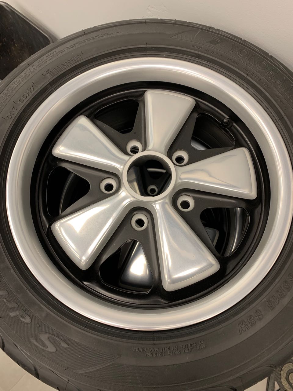 Today was a cool day. My brother and I drove up to Oroville to meet with Harvey Weidman and pick up my wheels. So first I plug in his address in the Navigation and look at the time we were showing for arrival! Good omen? I think so. Now look at the wheels and tires. I am telling you Harvey is the best; I know why he gets wheels sent to him from all over the world. By the way these are deep sixes, widened 1" on the back side with barrels Harvey has made. Then we wrapped them in Yokohama 205/55R 15 tires. I can't wait to put one on the car and see how they look. Enjoy this wheel porn:
