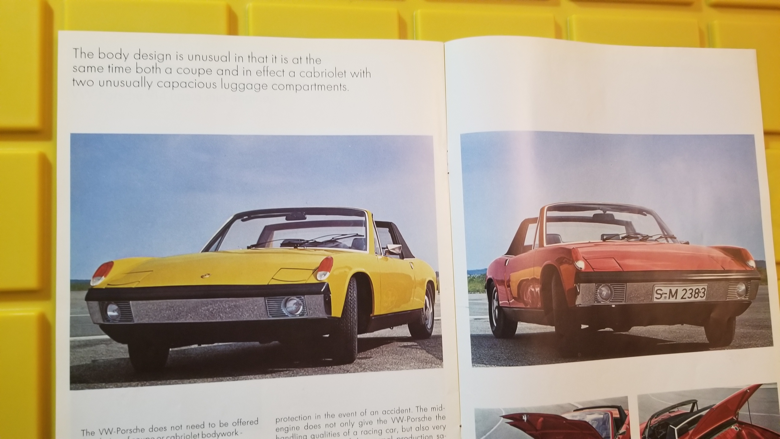 (OK don't everyone go crazy- no crest on any 914 from the factory and we will not have one on mine. That is what i thought until i saw this 914 sales piece. Euro version 6 with a hood crest. And i think the two flat 8 engine cars had them. In the second pic note no crest on the red car. Attached thumbnail(s) |