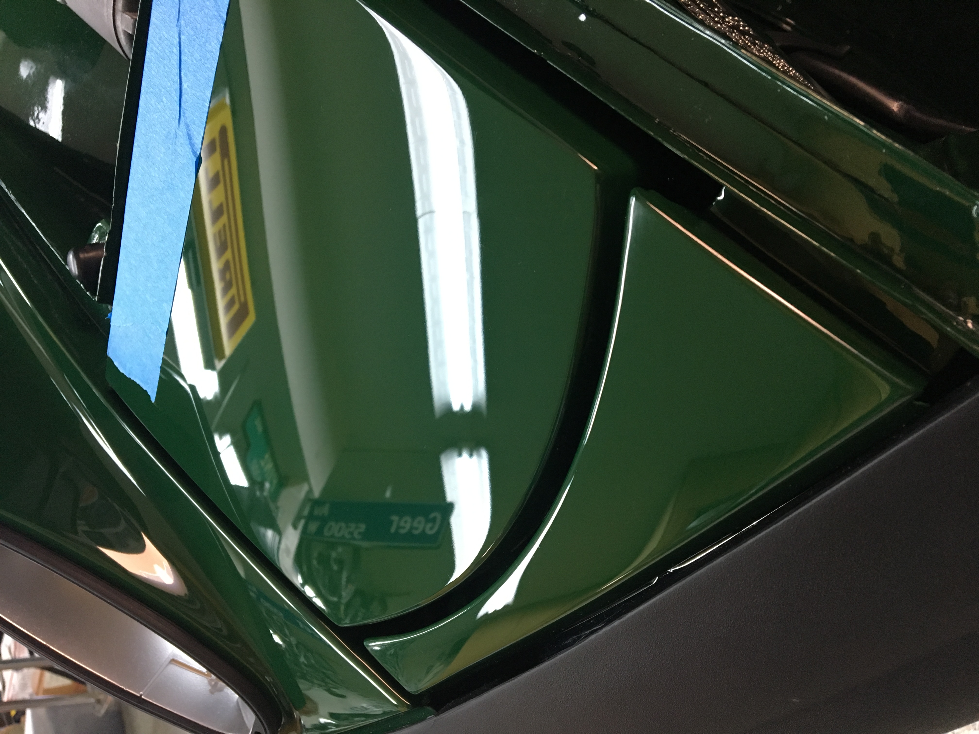 Hey Michael, I stopped by today for a free lunch. Man the car looks great. I made a template so we can put the Porsche emblem on the frunk lid. Need to get it on straight and centered. All sixes had them from the factory.... (IMG:style_emoticons/default/lol-2.gif) Hey Mike. Sorry that Dave was allowed to get near your car. His Mom wasn’t able to take him with her to work, so she dropped him off with us. Aside from the mouth breathing and drooling he wasn’t too bad. We have nicknamed him “Scooter.” |