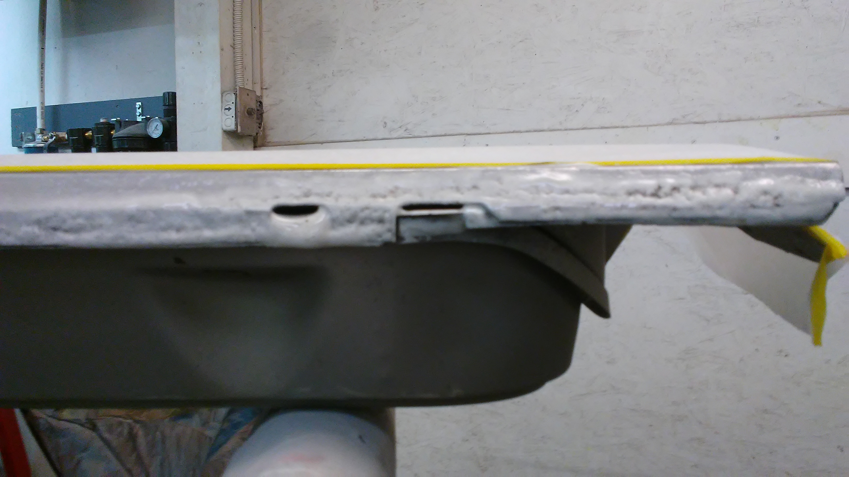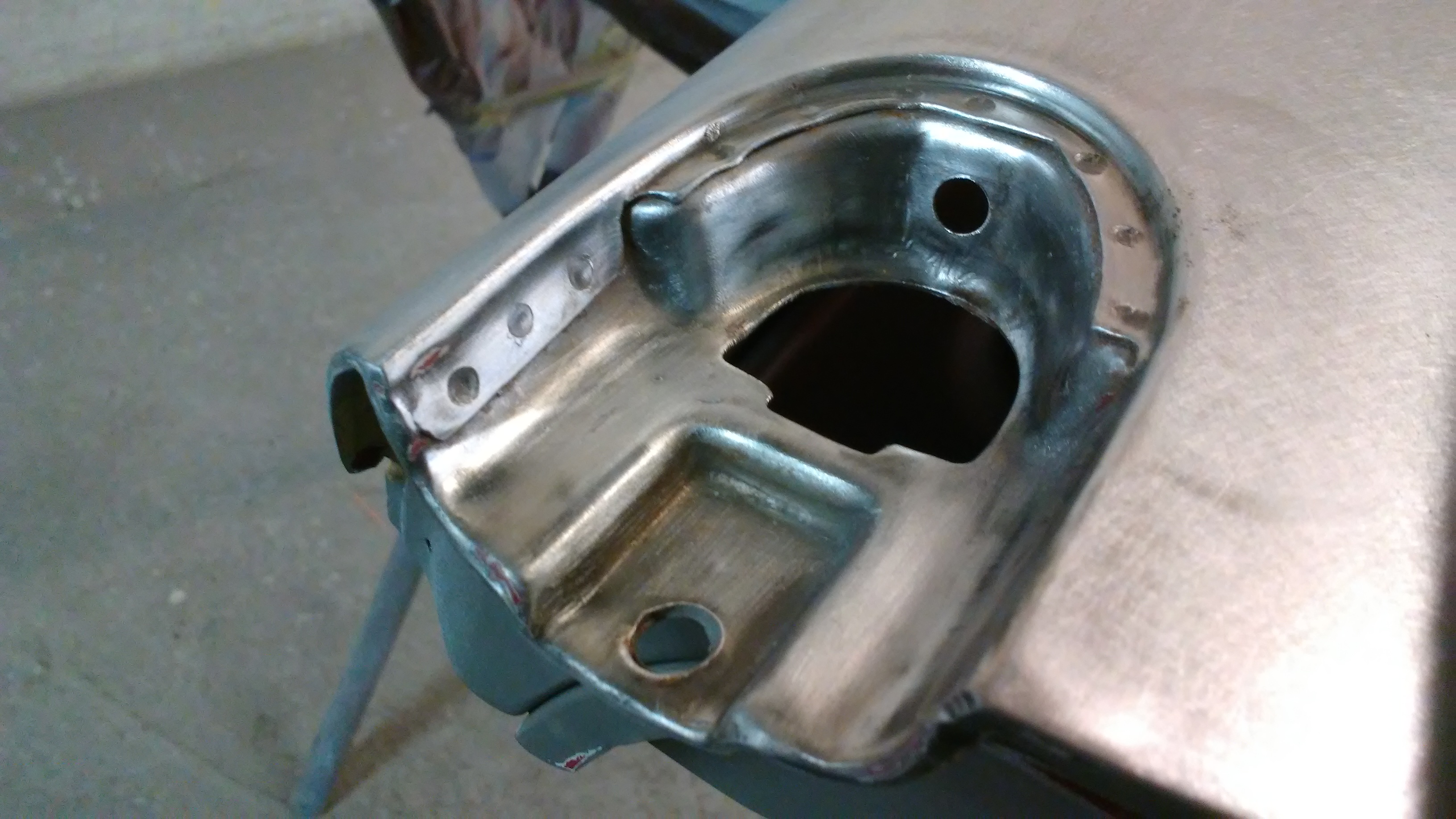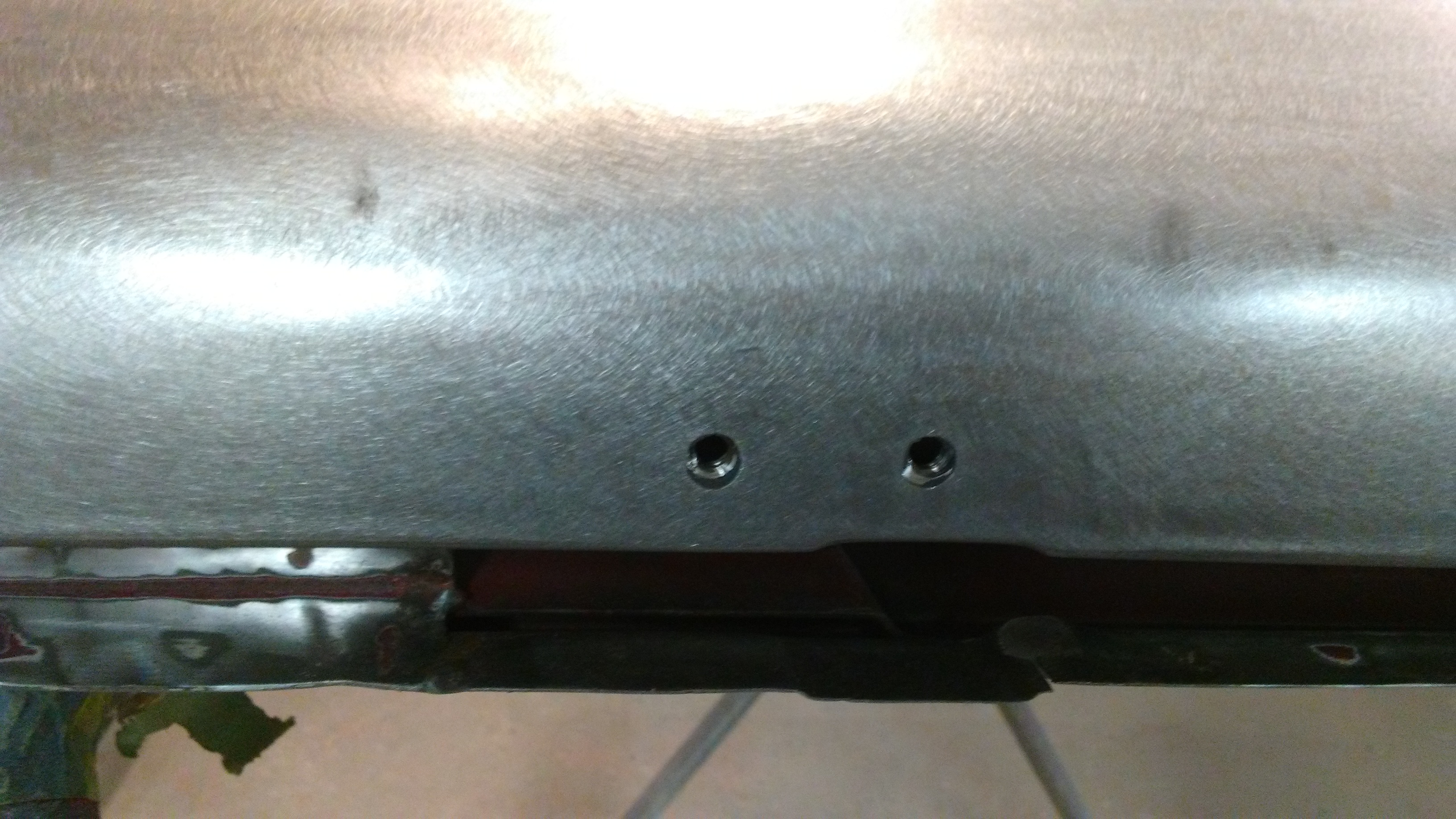 At first glance I thought a PO had drilled right through the nut plate for the mirror mount. Lookin closer, I saw that they had drilled two holes just off to the side of the nut plate. I welded up the holes then located and drilled holes to reveal the threads in the nut plate.
