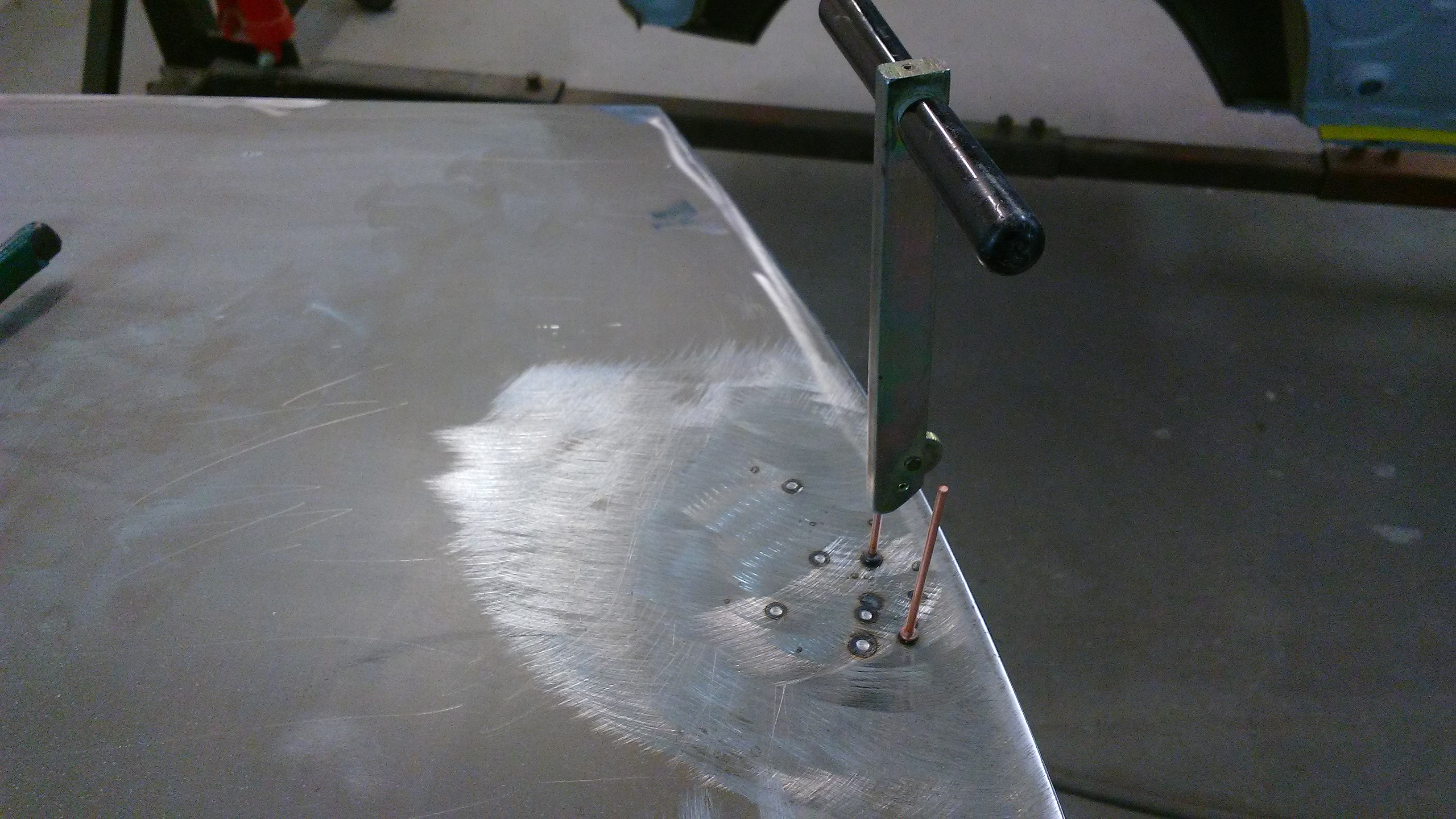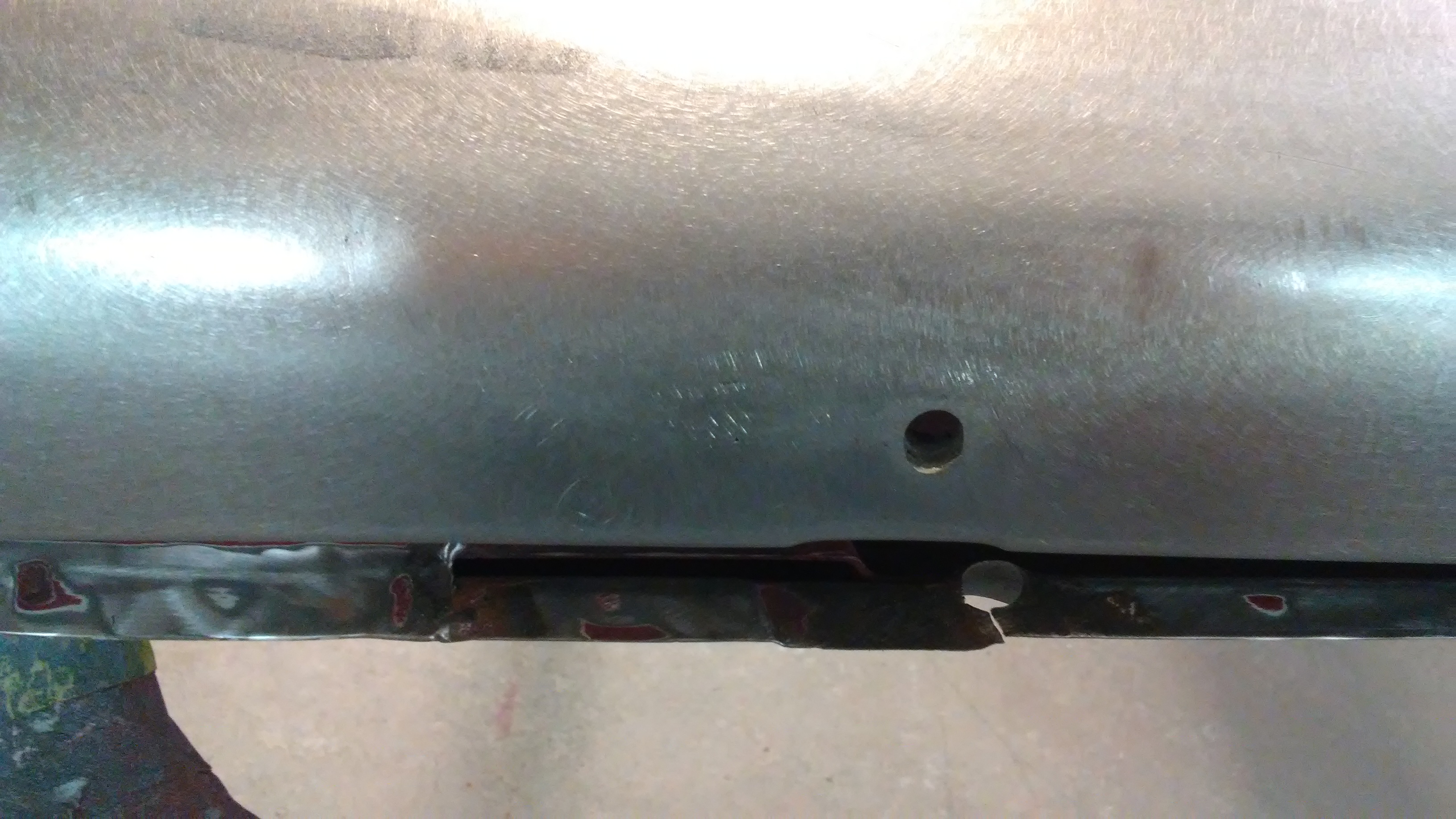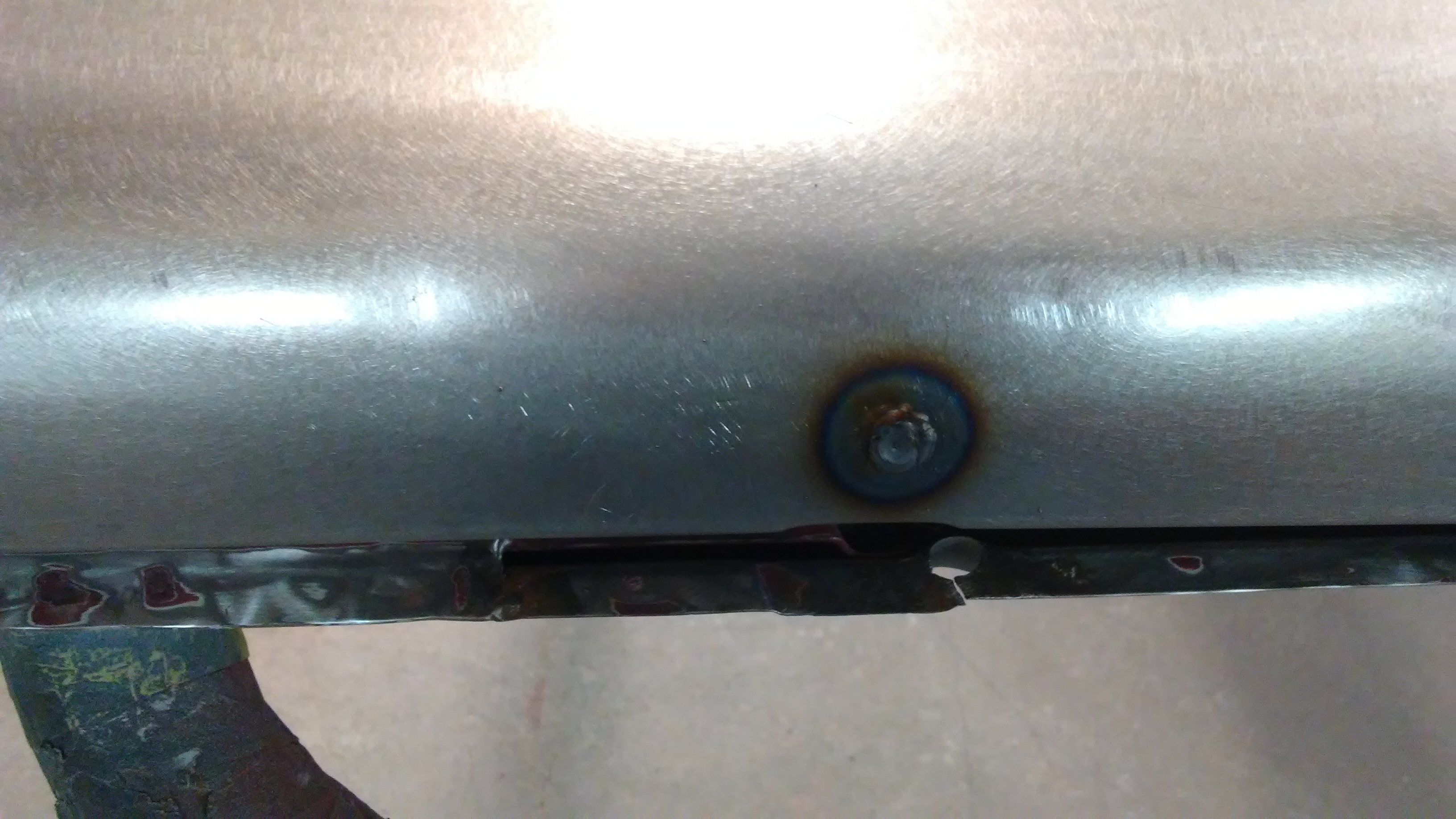 At first glance I thought a PO had drilled right through the nut plate for the mirror mount. Lookin closer, I saw that they had drilled two holes just off to the side of the nut plate. I welded up the holes then located and drilled holes to reveal the threads in the nut plate.