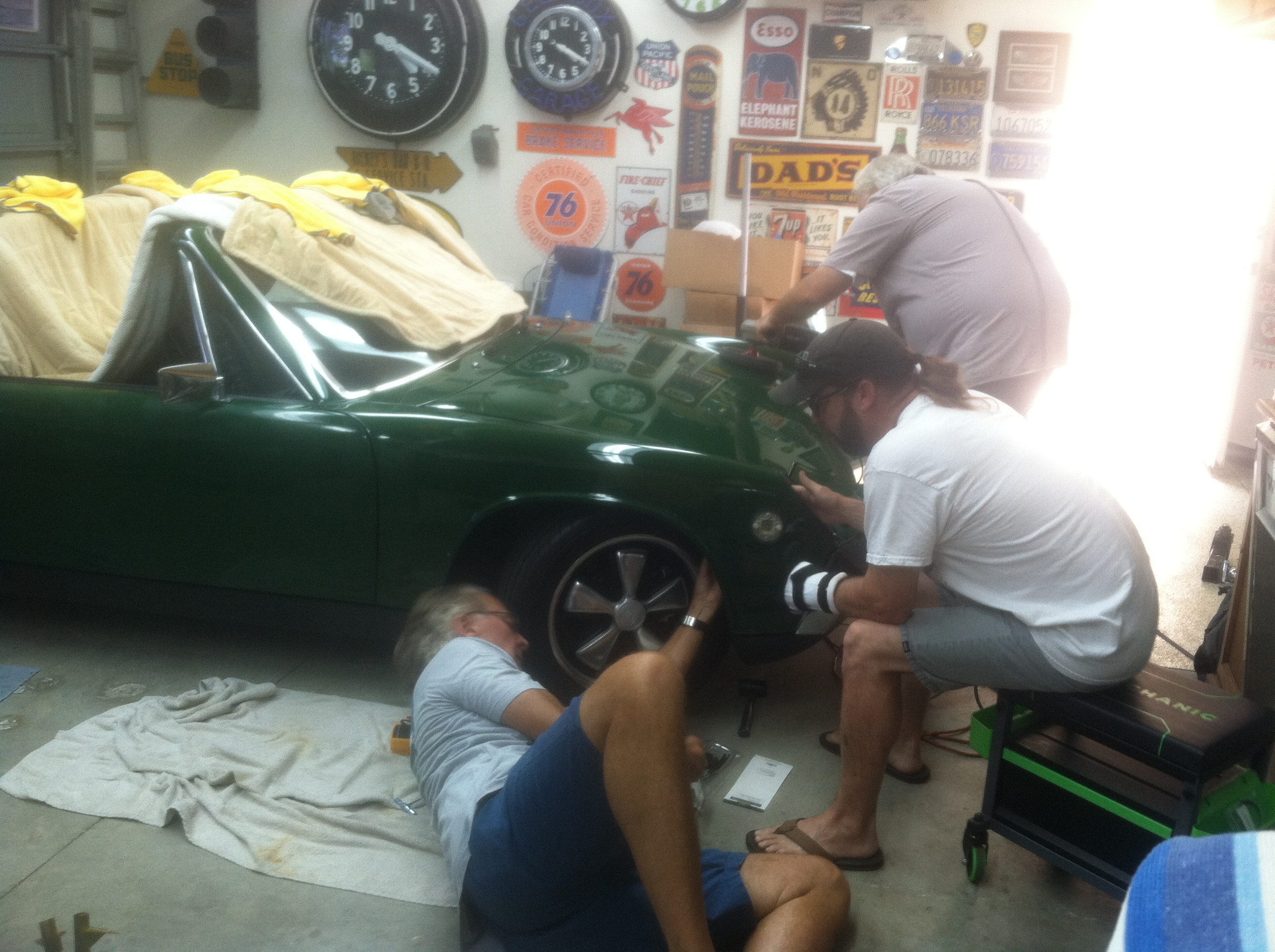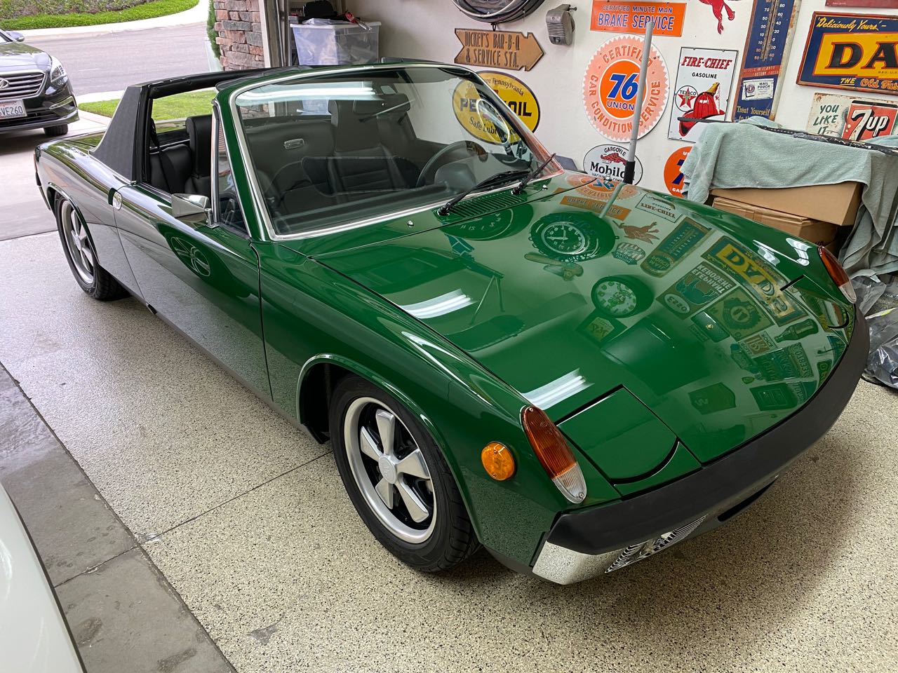 OK. We have some great progress and the finish line is right in front of us. Here is a great picture Jim sent me showing the depth of this Irish Green paint and finish: Many thanks to Jim, Kent, Andy, Bob and Dave! Wow, this pic does a lot of talking. Almost more impressive to me than the depth is the side reflection and how right it is at the rear door join. Gorgeous car, and more than deserved result. Kudos to all involved! |