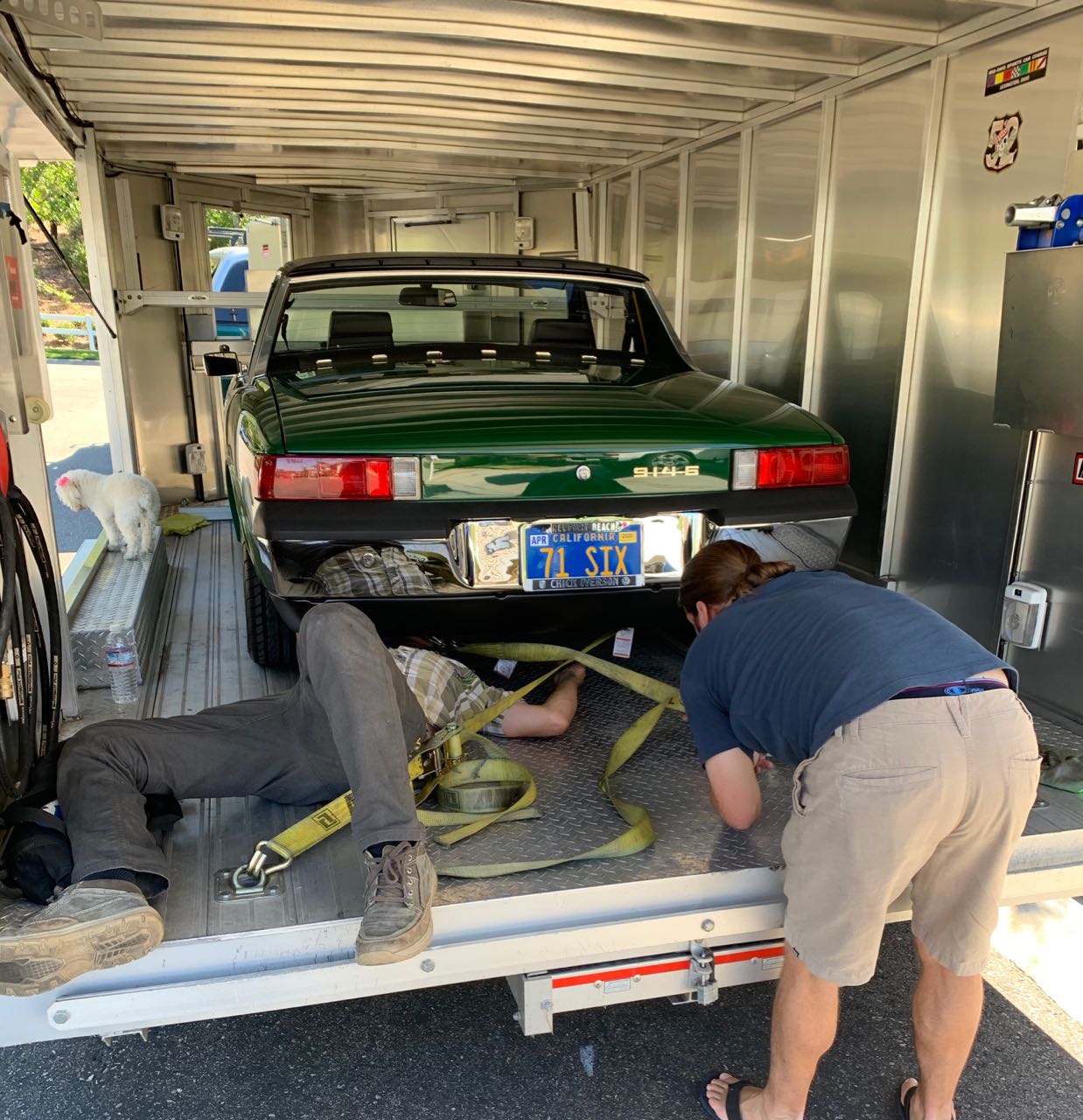 My brother Bob, my cousin Phil and I drove down to Jim's on Saturday and I admit I was anxious to see my car. It has been 10 years and 5 months since I bought it. We were tickled to hear it start and run, see the gauges working and hear that terrific 3.2 with Ben's ( @mb911 ) beautiful SS heat exchangers and muffler. We took it for a drive and I was not disappointed. It runs strong. It sounds great. It rides great. It looks terrific. A nice surprise was Oscar ( @ValcoOscar ) showed up at Jim's and he came bearing gifts. Oscar is just a great guy. He gave me a cool 914 hat that was in shades of green, a cool 914 hoodie and 2 914 T-shirts. I don't make out like that Christmas time. Thank you Oscar I am really looking forward to one of your BBQ's where I can bring my car and let everyone get a chance to check it out. Also Dave ( @blue6 ) was there and he has seen this project progress from the complete mess I delivered to Kent to what I consider to be one of the finest 914-6 in the country. Yeah, that's my opinion. I am sure this is not everyone's cup of tea, but that's OK. It is mine. Thanks for coming over Dave and safe travels my friend. We put about 40 miles on it and then loaded it into the enclosed car carrier, special thanks to Chris ( @tygaboy ) for hooking me up. After loading it was time to relax for a bit and we cooled off in Jim's pool. We sat around and talked about everyone (of course) and then decided we were refreshed enough to do the 400 mile return trip home. Off we went; the drive home was very easy with very little traffic. This morning we unloaded the car and returned the trailer to Petaluma with another big thank you to Chris. I would also like to thank my twin brother and best friend Bob for sharing this whole experience with me. He has been there for the whole thing and I hope he drives this when I throw him the keys and enjoys the way this car runs, rides, handles and looks. I doubt I would have hung in there with this build when the going was rough (pre-LA) without his support. Enjoy the photos guys and thanks for all of the support as I experienced Mr. Toad's Wild Ride. I can't believe it has been 10 years. (IMG:style_emoticons/default/smilie_pokal.gif) (IMG:style_emoticons/default/beerchug.gif) |