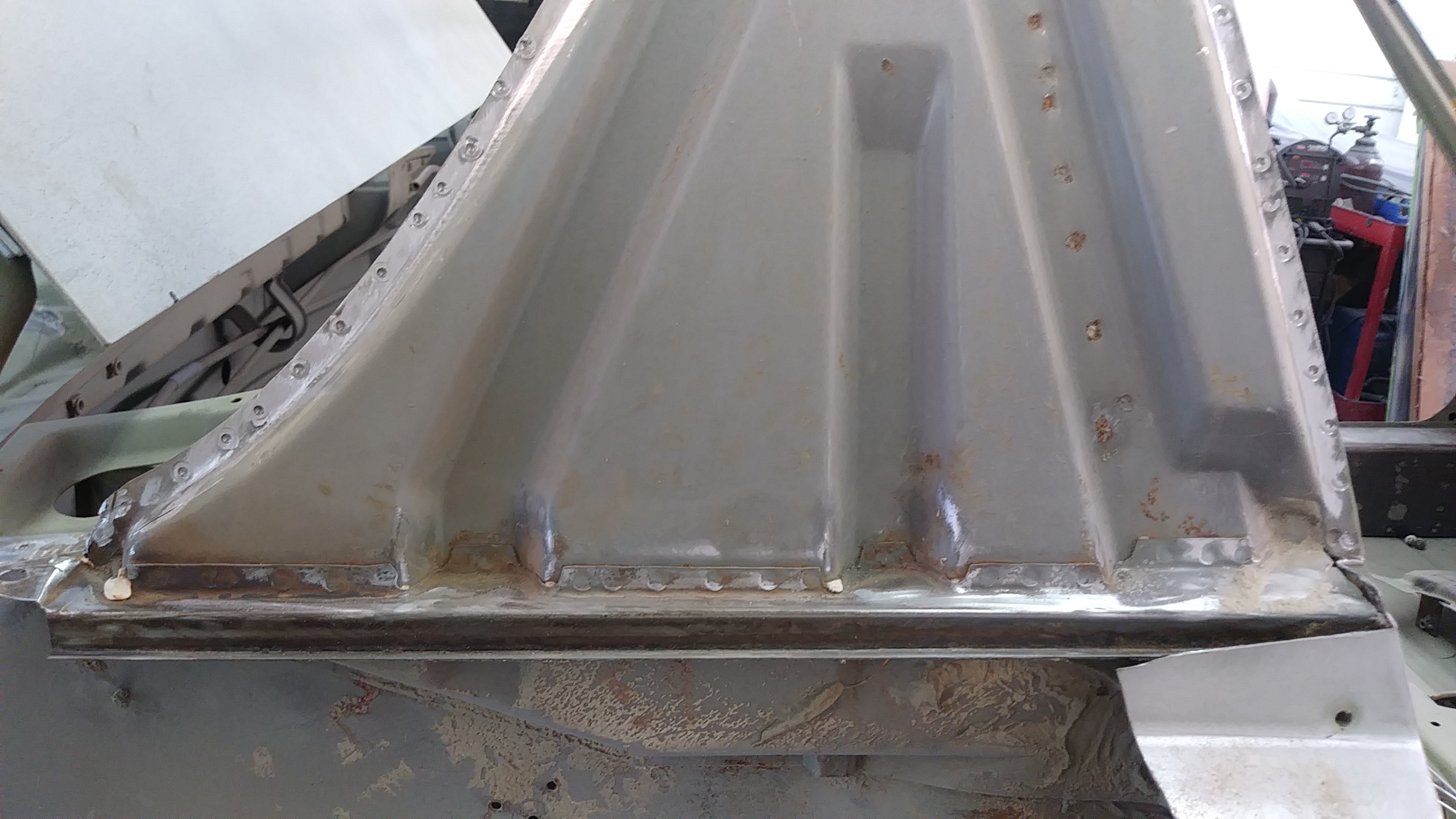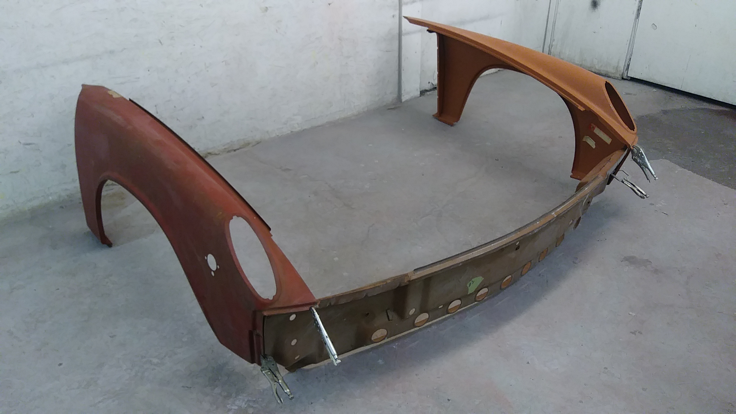 Here's a sneak preview of the front nose panel and a hint as to how (with some Tig welding) it will become an early nose as opposed to late.