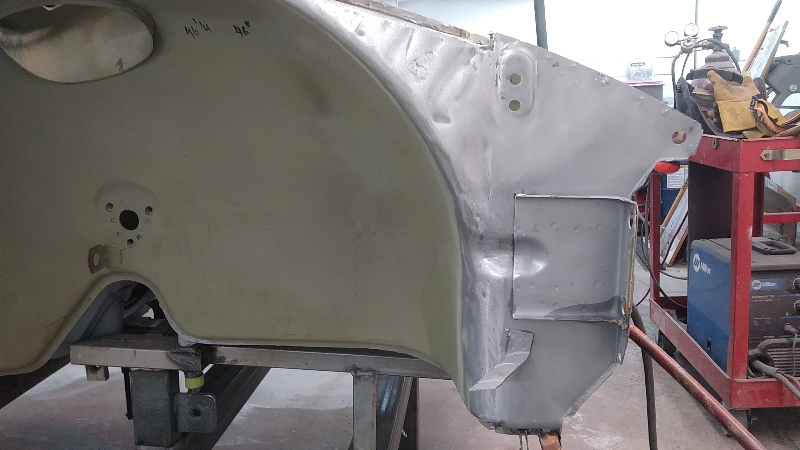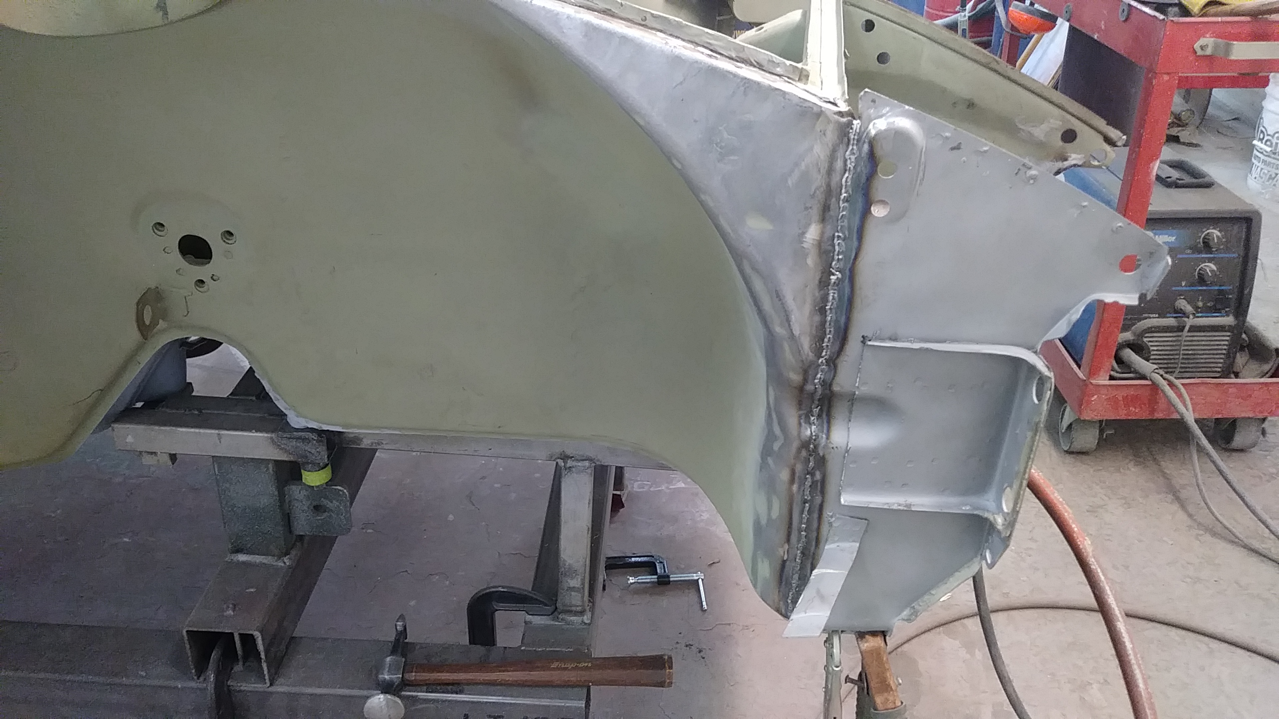 Oh that looks very nice. We now have an early front panel. (IMG:style_emoticons/default/biggrin.gif) Notice how the picture of the nice spot welds is Crystal clear, then the one with the nasty seam welds is all out of focus, then the ground nice finished panel is all crisp again!!!! (IMG:style_emoticons/default/poke.gif) Makes an amateur newbie panel welder feel better!! Thank god for grinders!!  |