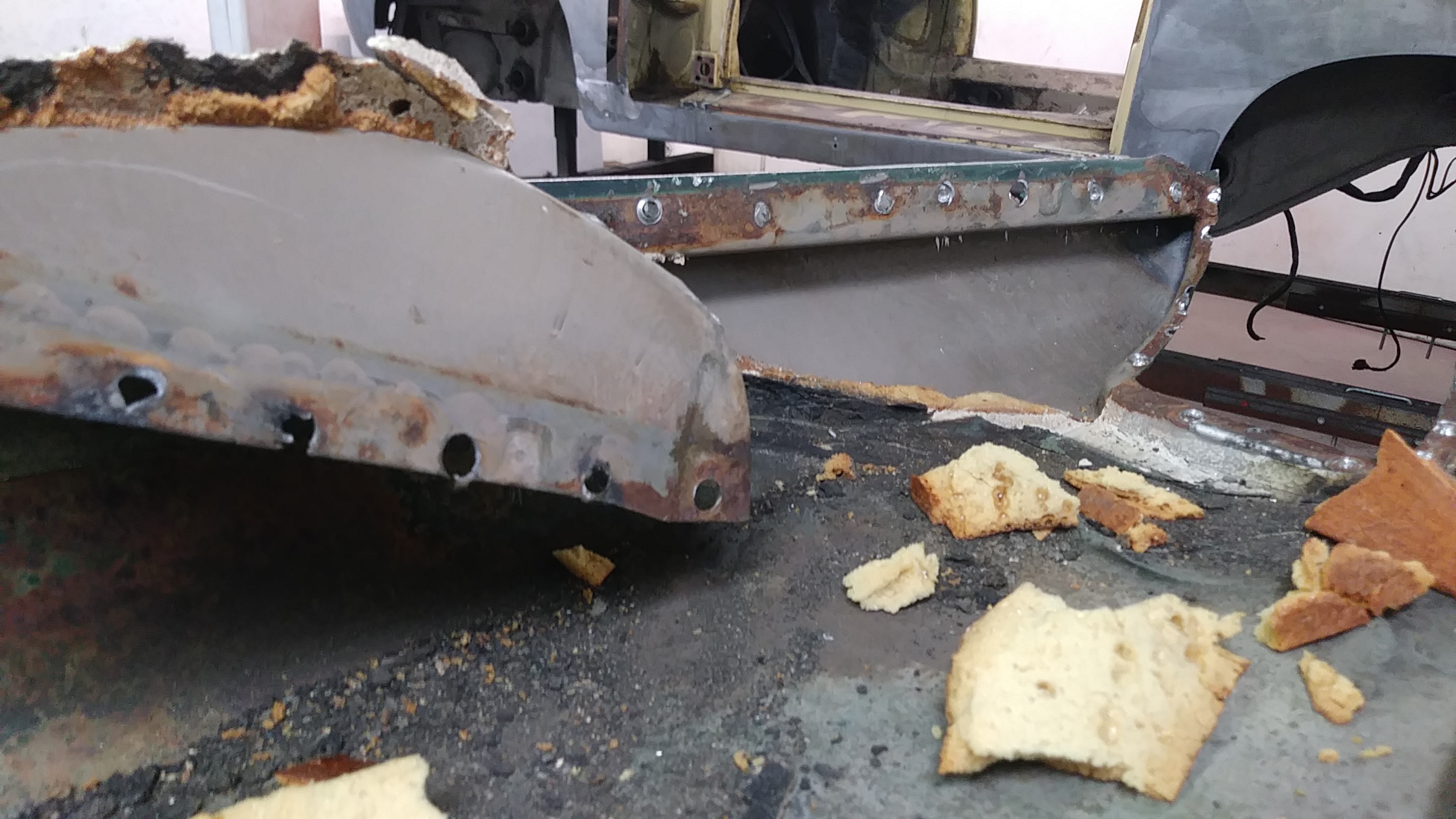 Prepping the reat fender for media blasting. Very clean under the foam in the rear corner. Way cool.