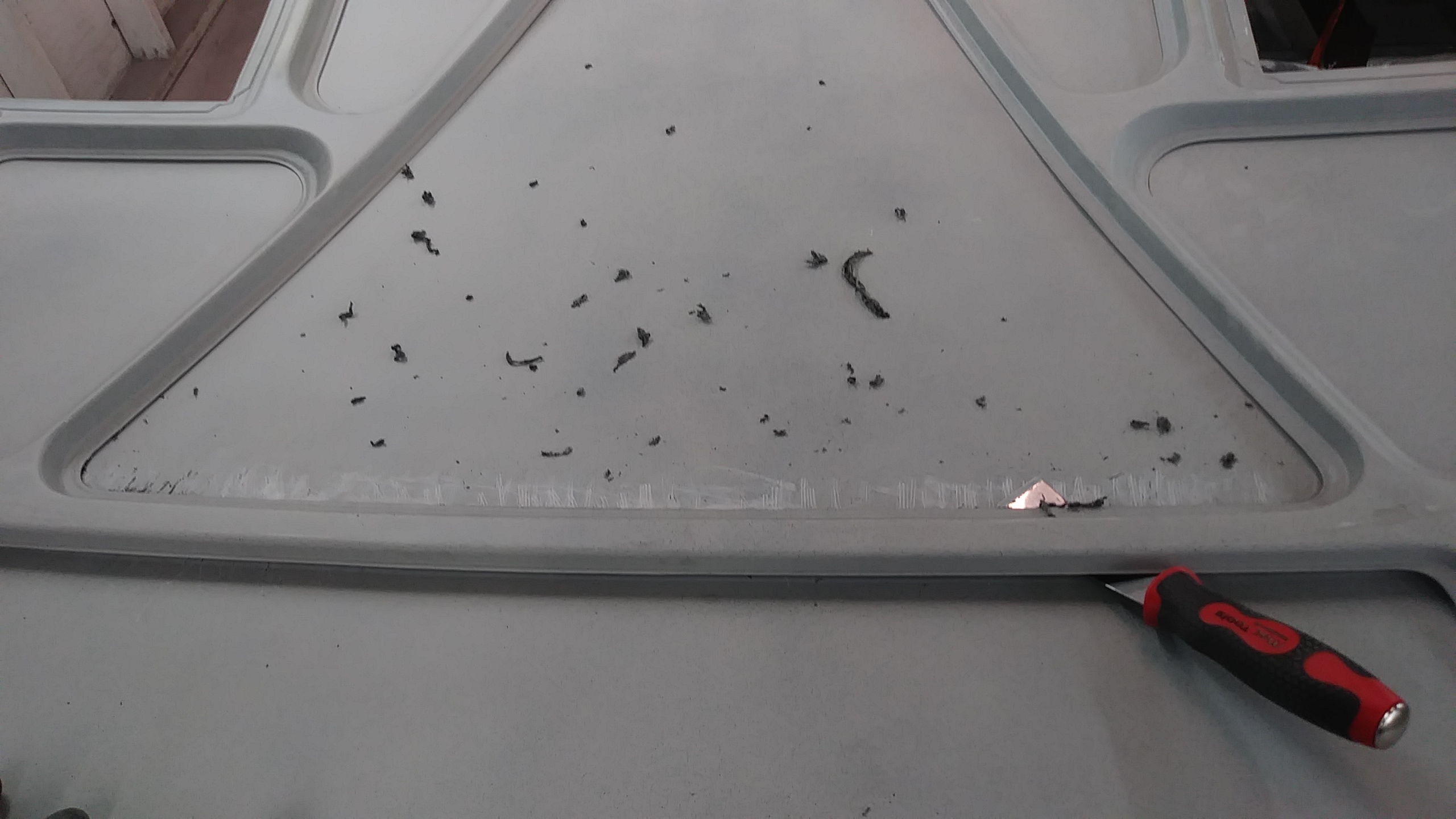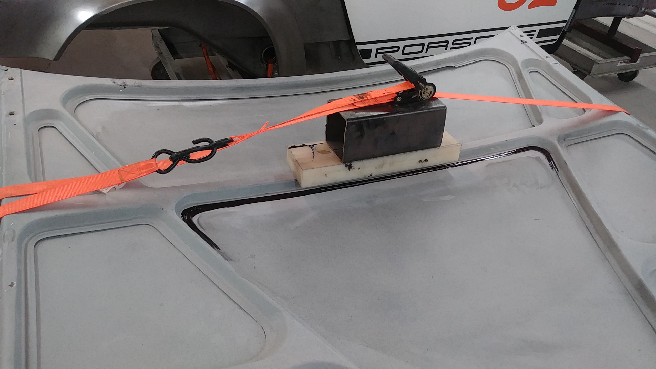 Cleaning and rebonding the under webbing structure to the hood skin.