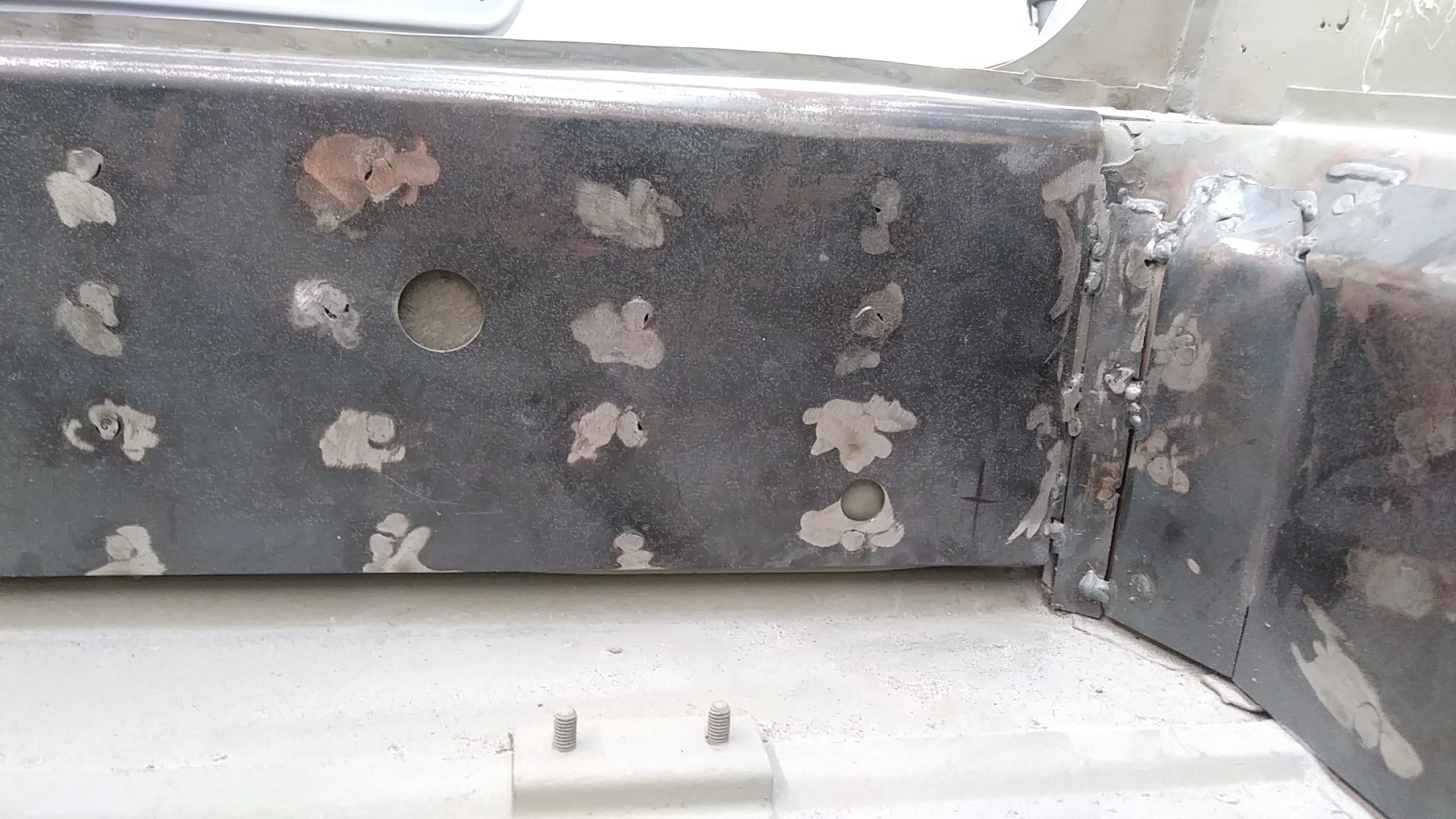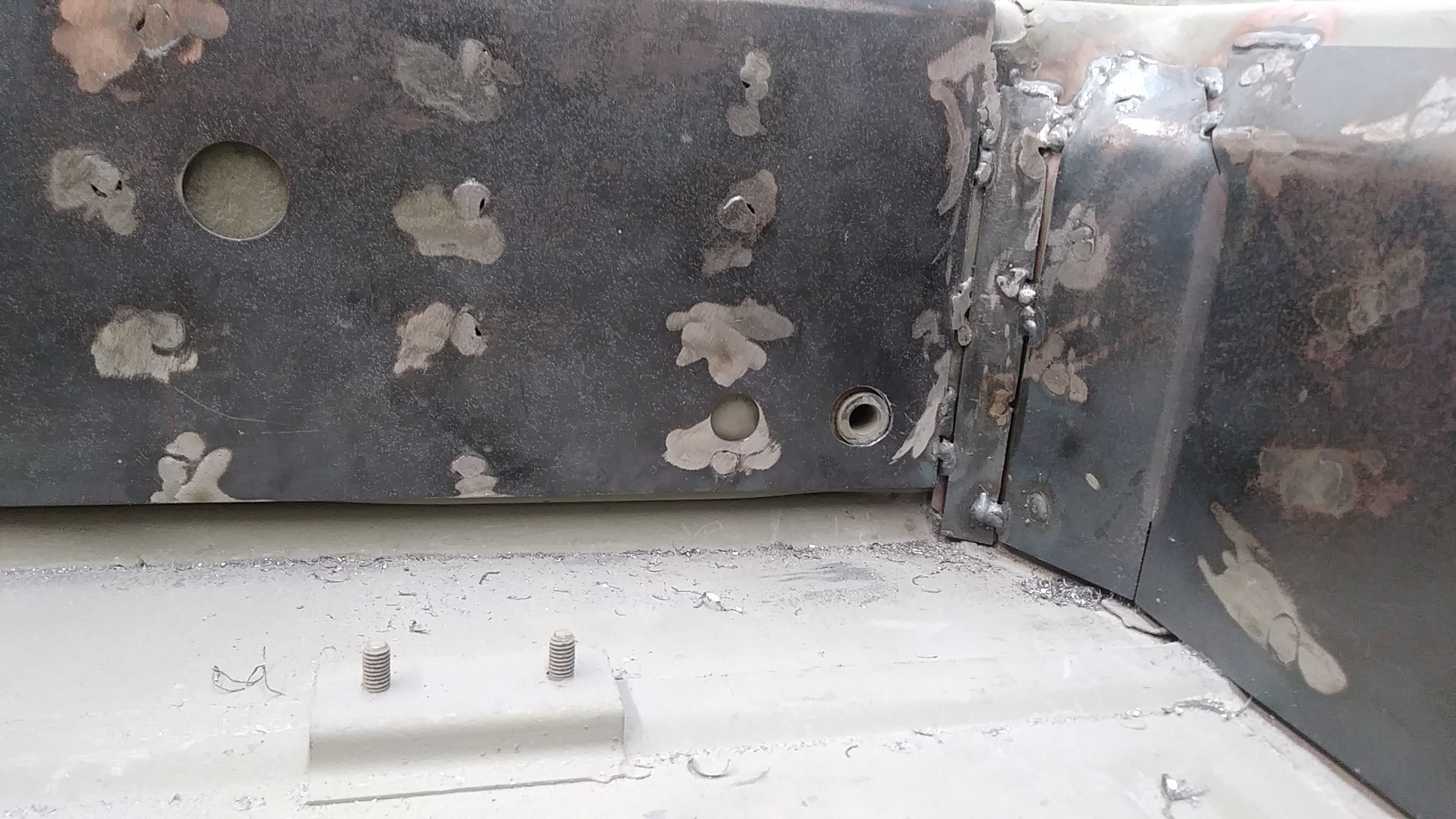 At some point someone welded in a long stiffening kit and welded over the seatbelt hole on the passenger side. I located it and drilled a hole then flushed the metal so that the belt can float/rotate as it should.