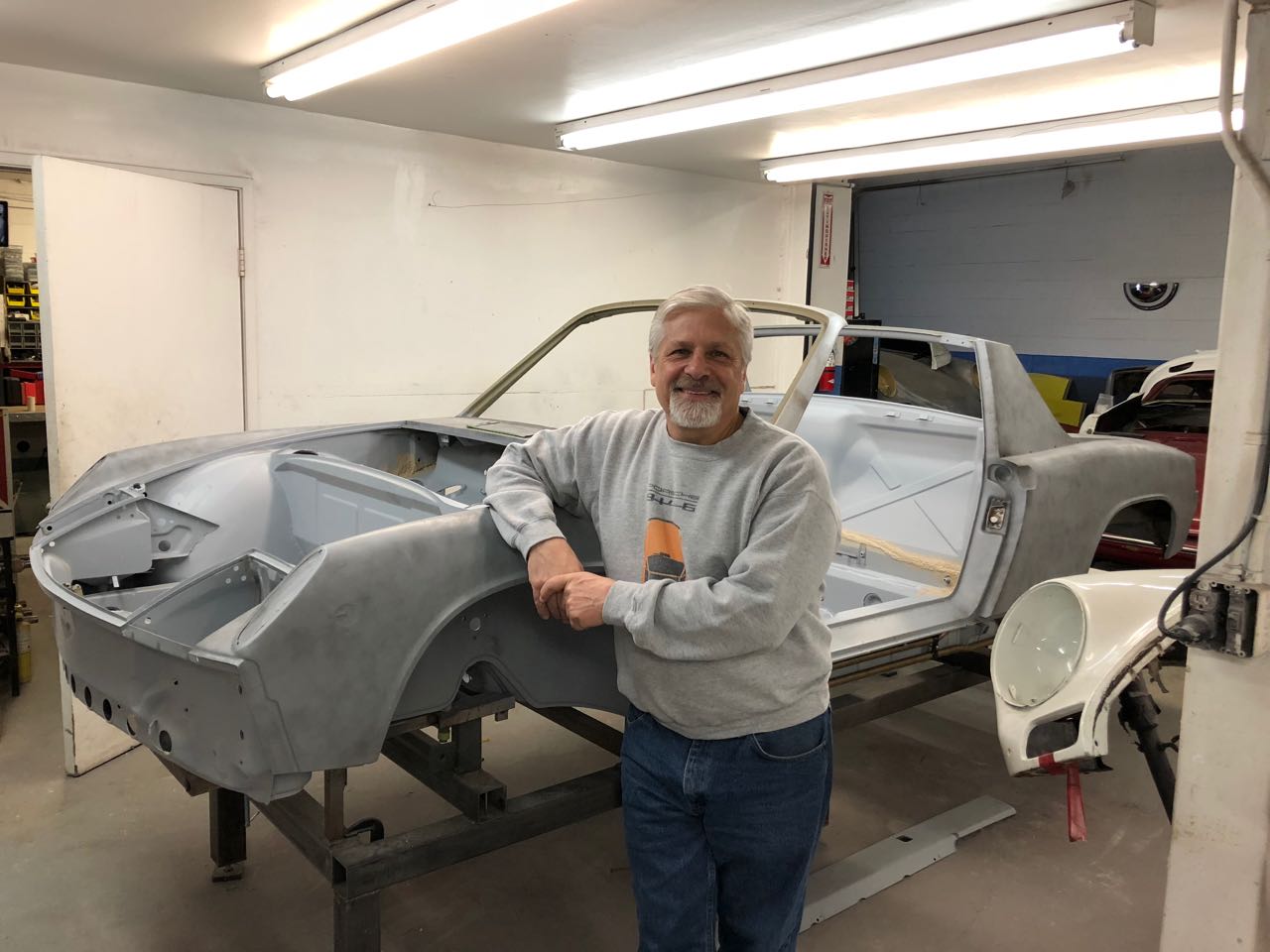 Had a great time visiting with Kent and Jim and seeing all of the progress on my car. It looks like it would have on the factory line. It's sitting next to a very very rare '68 911R.....the work on the 911R is just amazing.