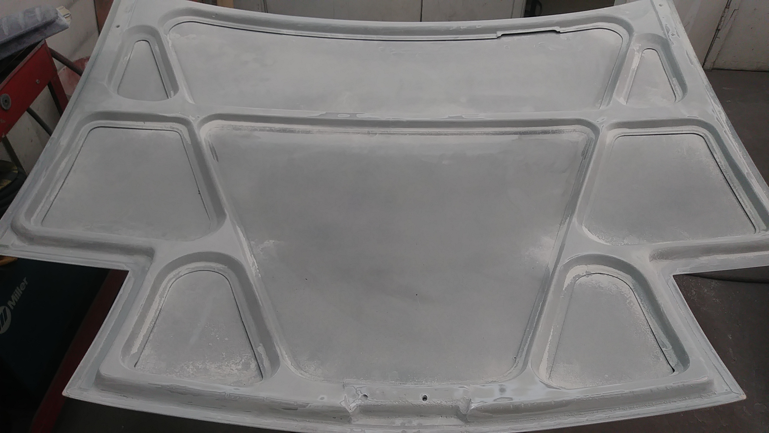 So I believe this is wrapping up the body work on the car. There were a bunch of lite pick hammer strikes on the underside of the hood that are now fixed. The hood fits great.