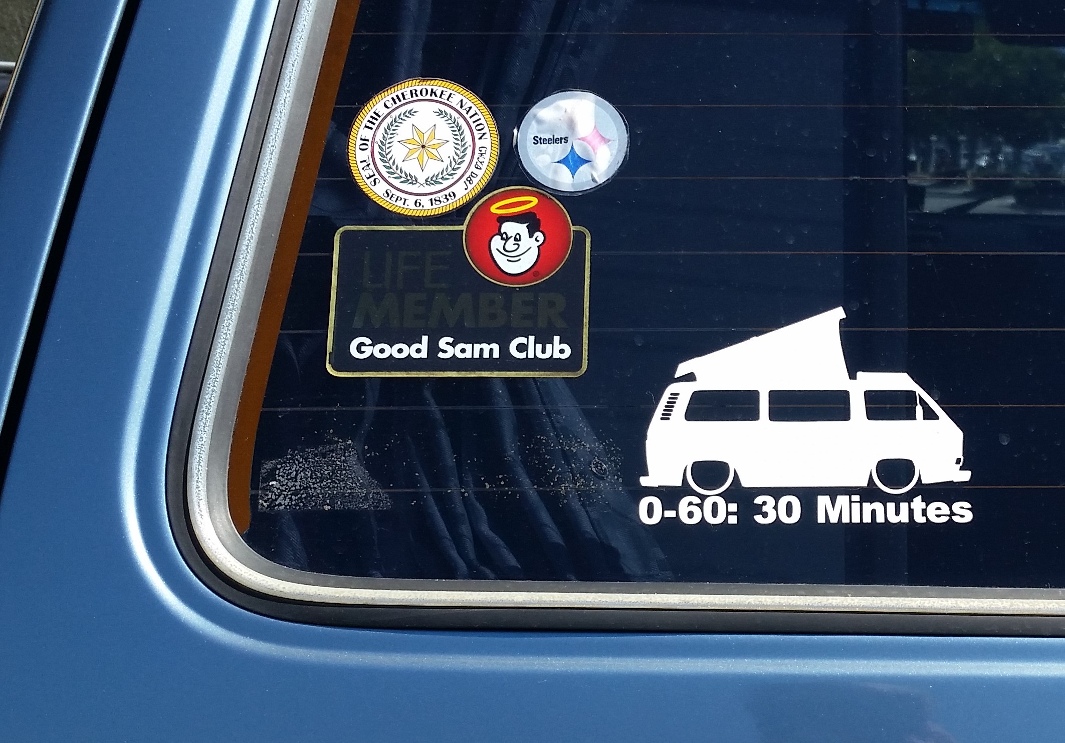I can get them for both our Westy & son's Honda, & probably a couple of extras for the BMW (maybe 914?), & in case they peel/fade or I need to change a rear window, etc. At +/- 30000 mi/yr per car at this point - what with both kids grown & gone, & wife working 2 mi away & me at home office + meetings/site visits/etc. out - it may take a few years to actually get to the 239K odo reading though with the Westy & BMW. However, our son may make it within a year - depending upon how much He & wife drive the Honda DD after he gets his new Tesla S 75D later this month. He was doing +/-20K mi/yr with the Honda in local DD + 2 trips/yr of block leaves from Ft Carson/Colorado Springs to OC/SoCal & back. (IMG:style_emoticons/default/driving.gif) (IMG:style_emoticons/default/driving-girl.gif) Cheers! (IMG:style_emoticons/default/beerchug.gif) Tom /////// |