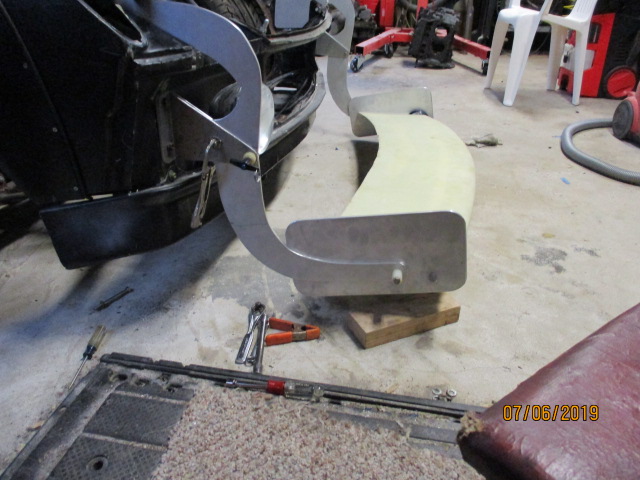 A lot of people have shown a grate interest in what I am doing here. I'm very free with the information about the build. I will gladly make templets and send them to anyone that wants them. All of this hanging from the body in 2 directions of shear. 1 in the light buckets and the other form the front bumper brackets. I don't think that the total weight with down force will be over 80 pounds and even if the ground force gets doubled it should still be under 140 pounds on the front of the car. I sincerely believe that the wing and the brackets would fit inside the headlight buckets and still have the headlights go up and down.