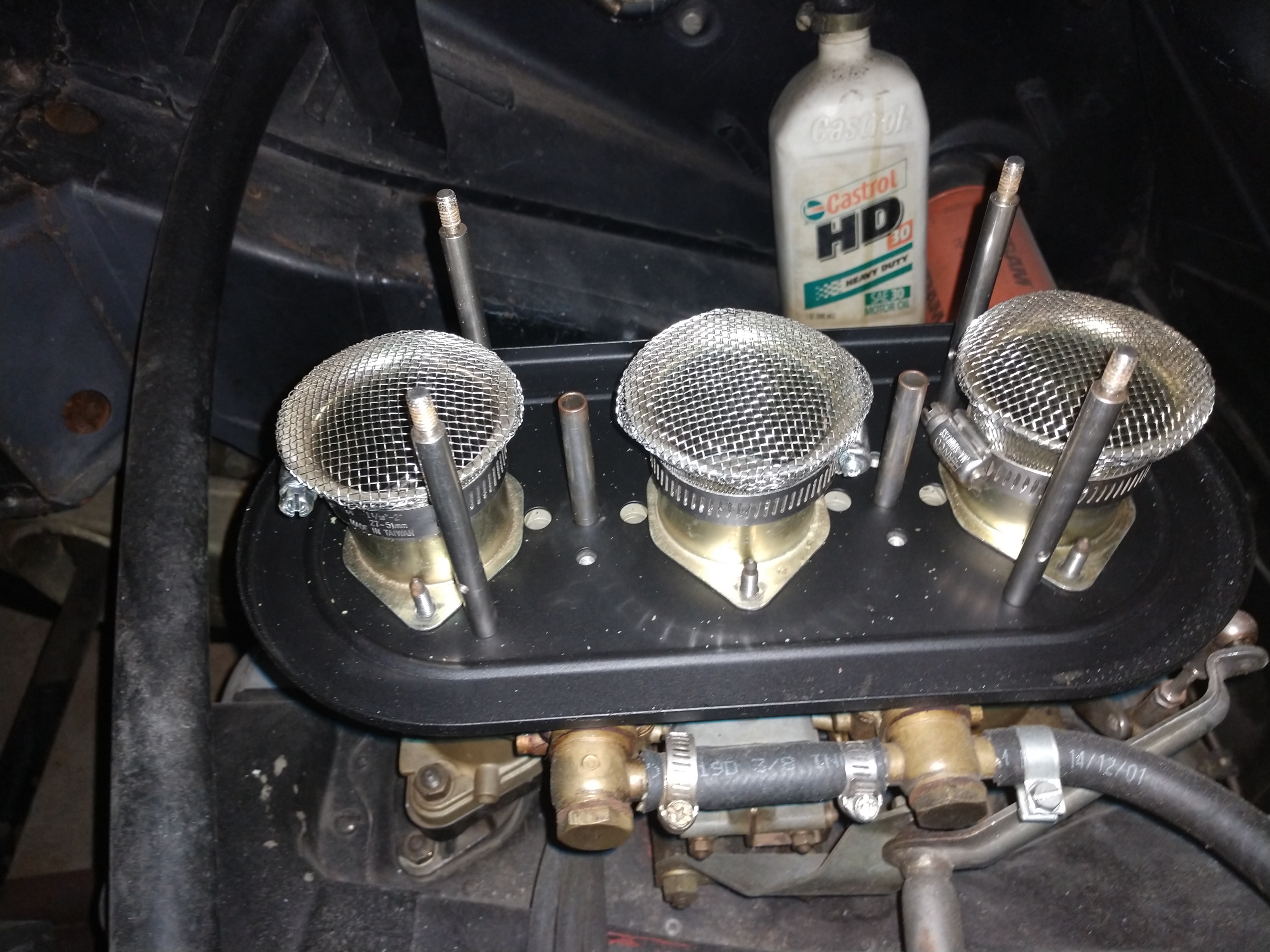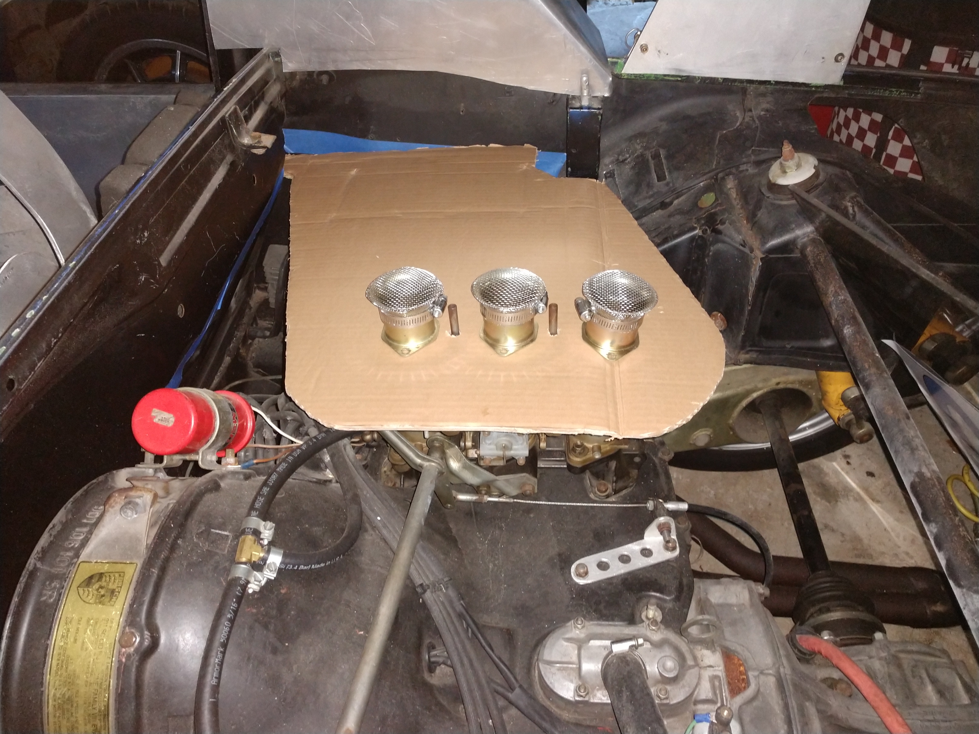 Excuse me and now I'll go back to the work I am about to do. The support is to tie the drip rail to the inner fender well and needs to go far enough forward to pickup the engine grill support. It's in the way of the plenum and would block some airflow. I have laid out some lines for the plenum on the fire walls and the inner fender well to see where the bottom of the plenum will set so I can see what needs to be moved. The passenger side is pretty clean but I'll have to move the breather and the crankcase vent hose on the driver's side but think it will be good with just a little plumbing. Does anyone know how much the engine rocks side to side. I believe that I need to have something flexible in the bottom of the plenum around the base of the carbs. I was thinking that it would move the most during down shifts into 2nd. |