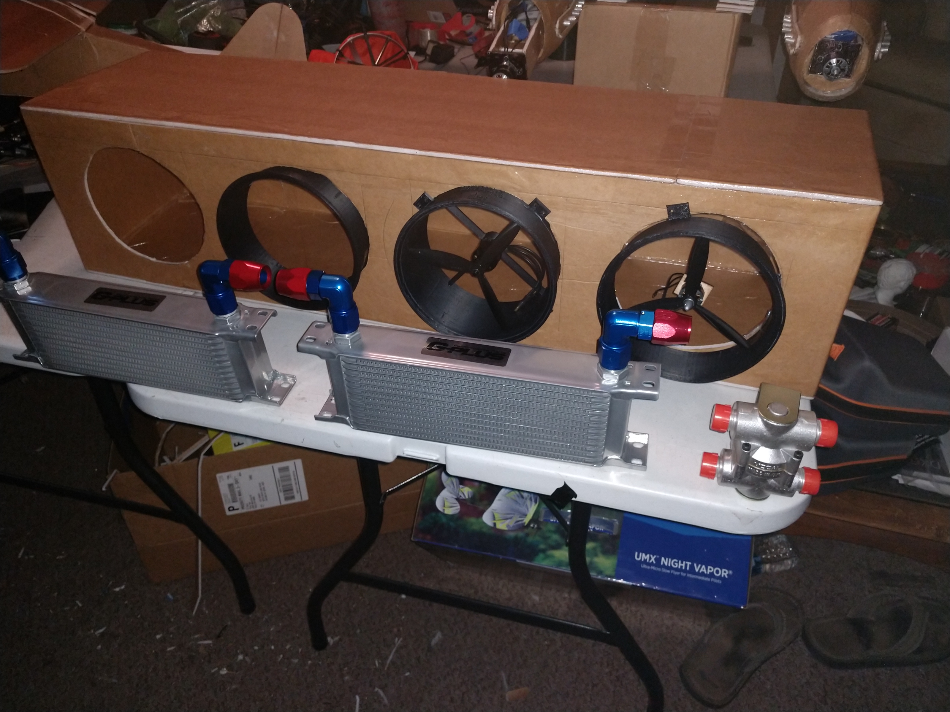 This is not my idea as Jim Hall and Hap Sharp had used the idea of taking the air out of the back of the car on the Chaperral 2J which was deemed illegal as it required a separate engine and me of course I am making an oil cooler. That car could lower the body 2" running the fan motor at 7K RPM. And was reported to go up to 25 MPH under the power of the fans alone. |