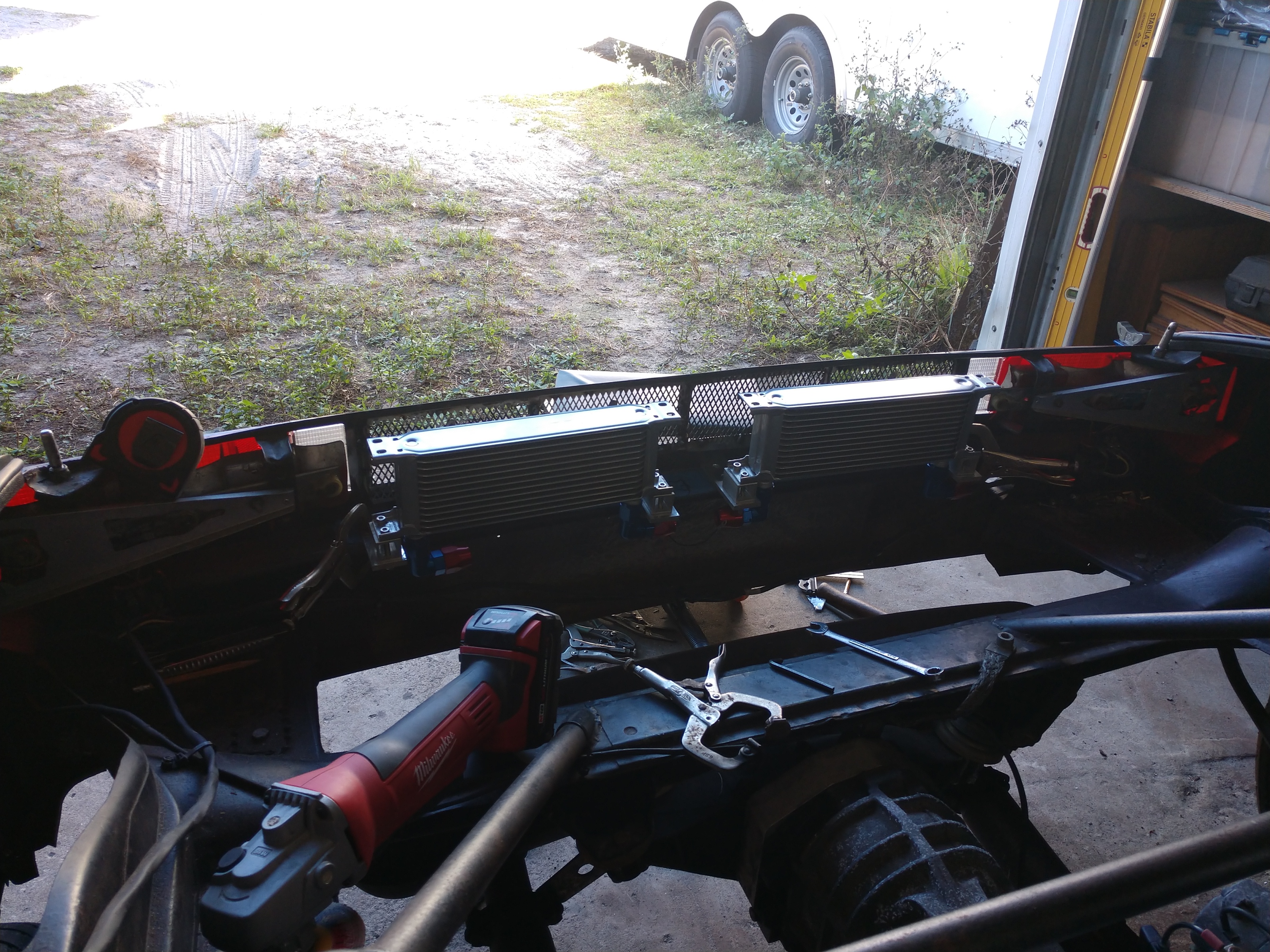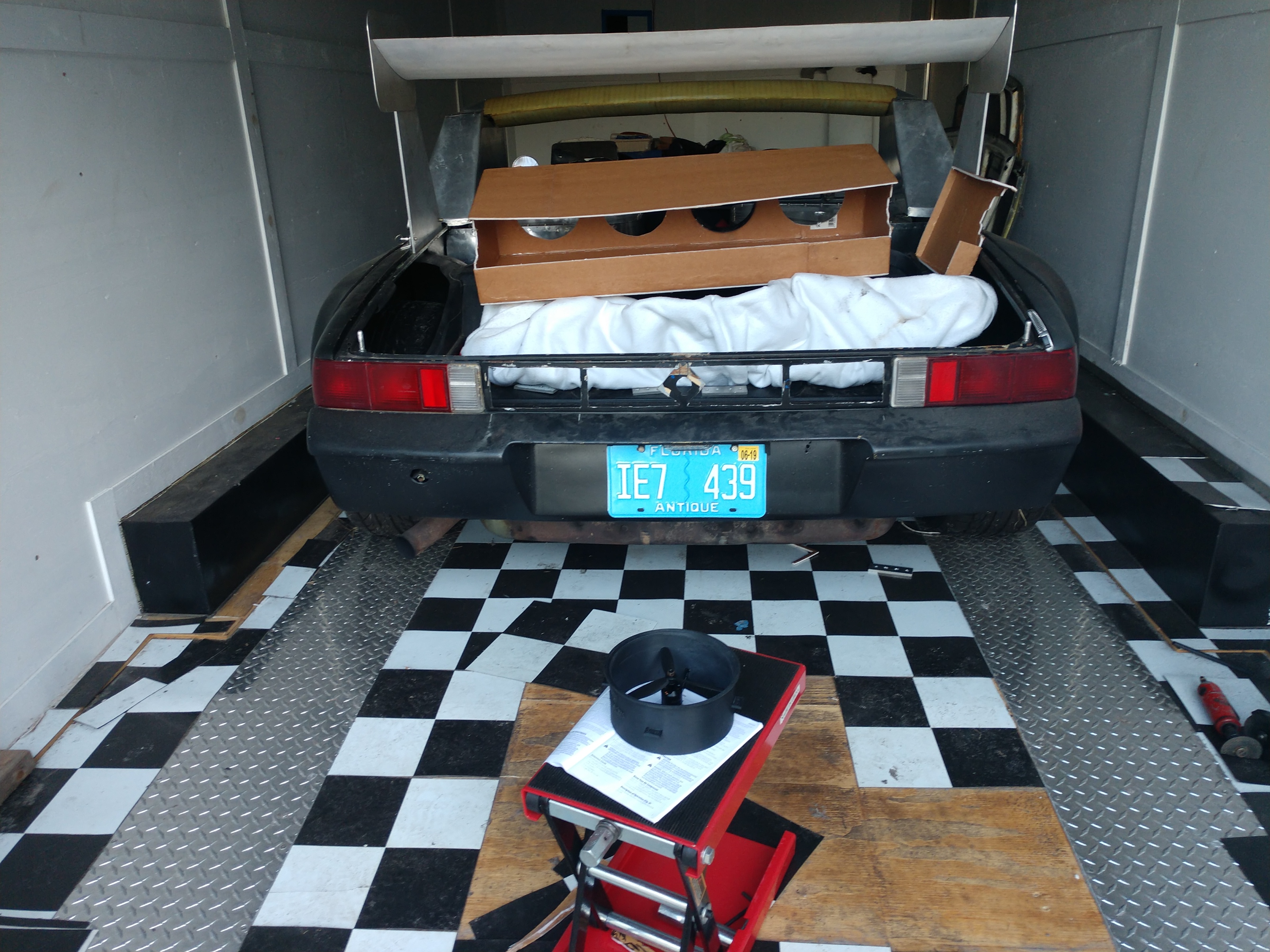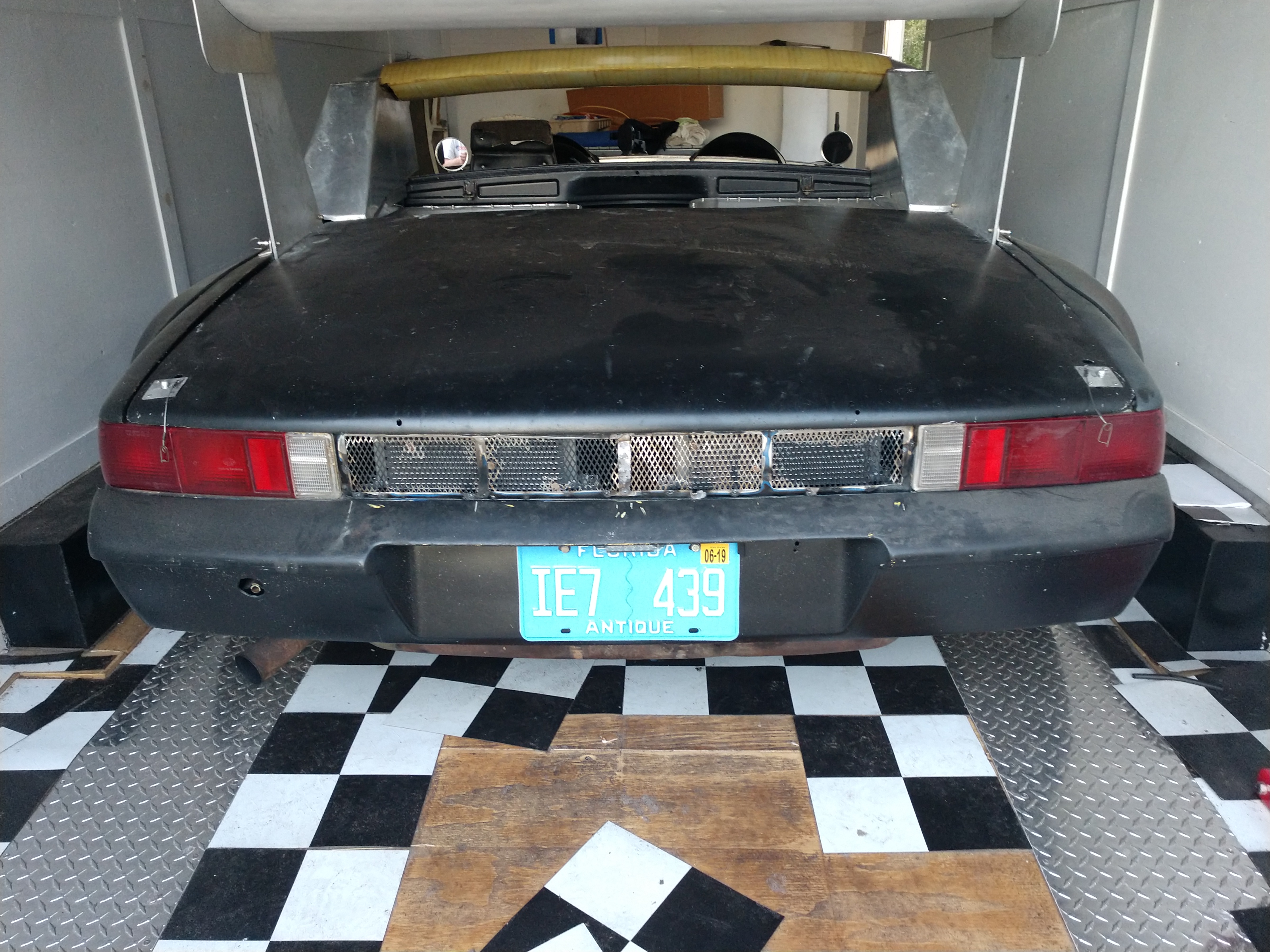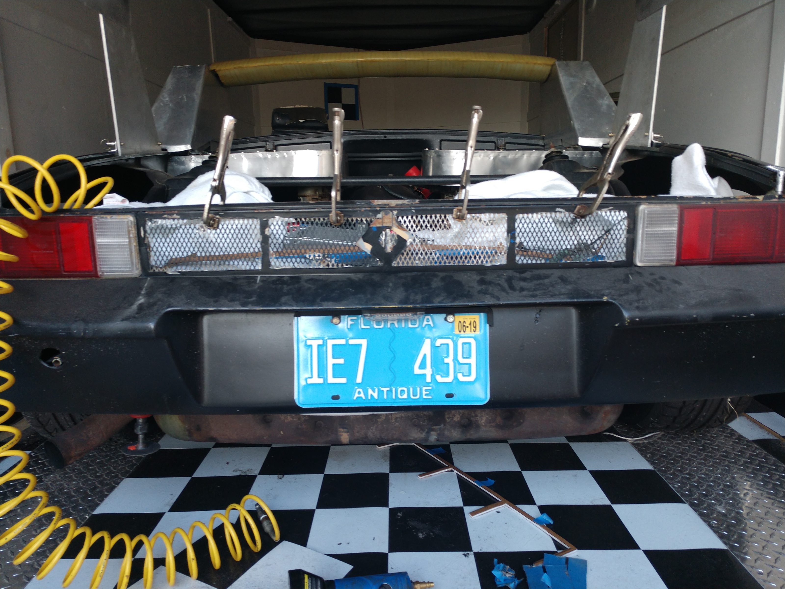 I like the adjustable of the 220 because I get settings from the machine and can slow it down or speed it up depending on how it is working. Can't wait to try the spool gun. I ordered material for the flat bottom today. I know, I know, off on another tangent. I have mentioned this before and I know that this will only lead me to something else like a defuser but there is more stuff in the way of completing the car. Right off the top of my head is rear axle hub to hub and the front suspension is not finished. I need to move her from the trailer to the garage for some grinding and welding hopefully I can get all of that done today. Picture is only here to get me to move the car. Welder doesn't reach out here. |