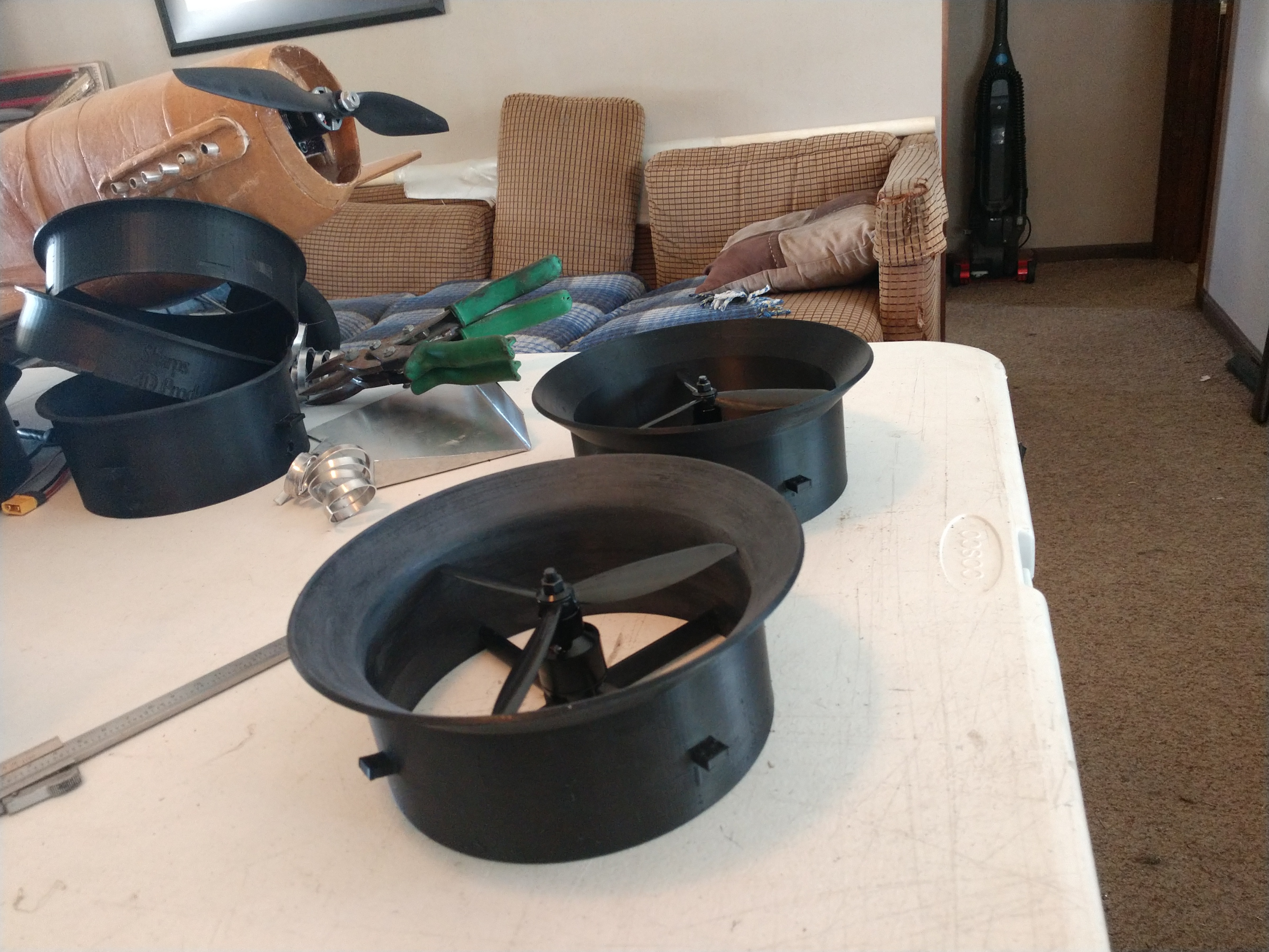 3 of the 4 bells and the last one is in the printer now. It will be done sometime around 5pm today. The propeller on the last bell on the right is installed and clearanced. I can't wait to hear all 4 of these babies pushing air.
