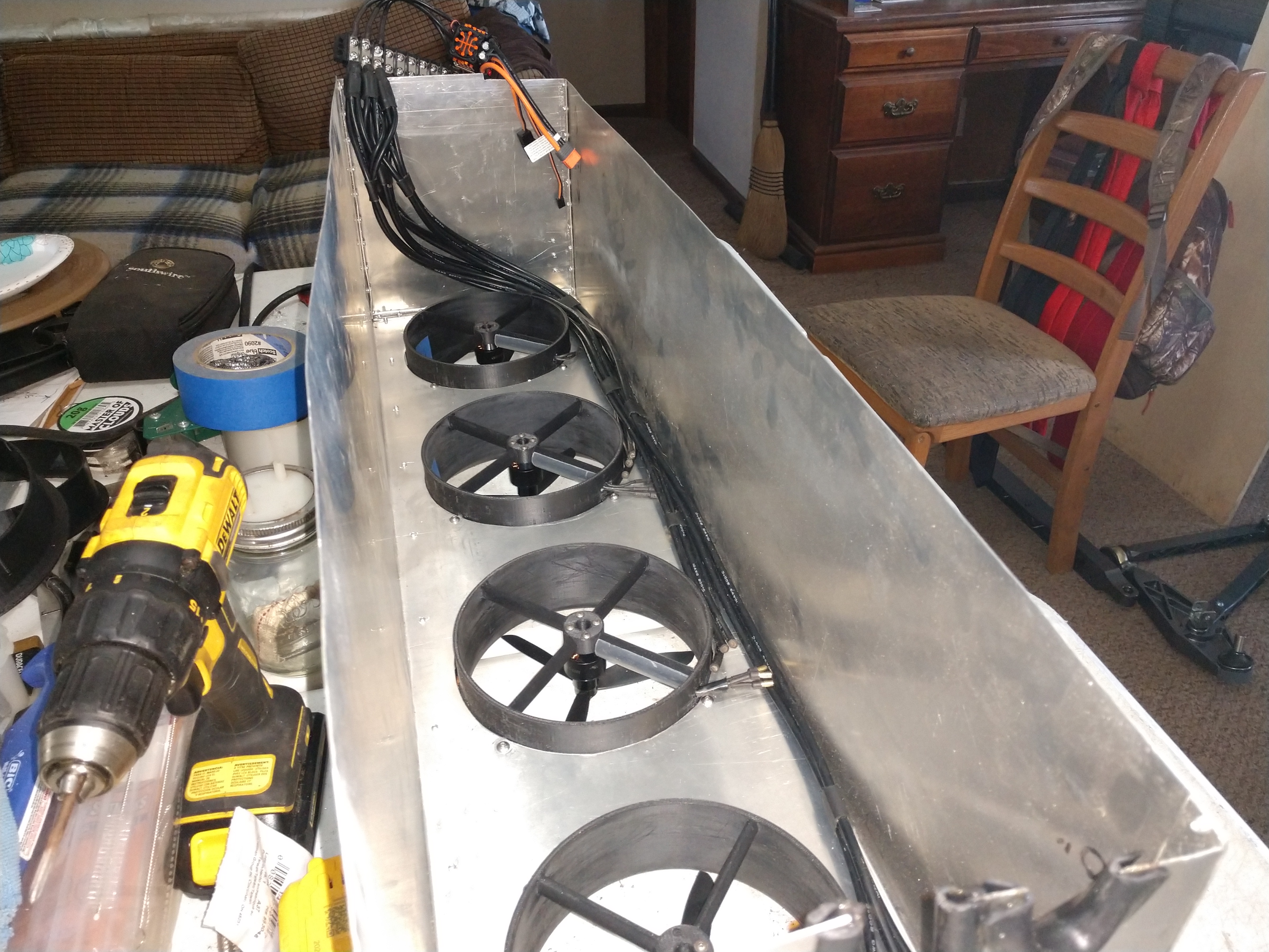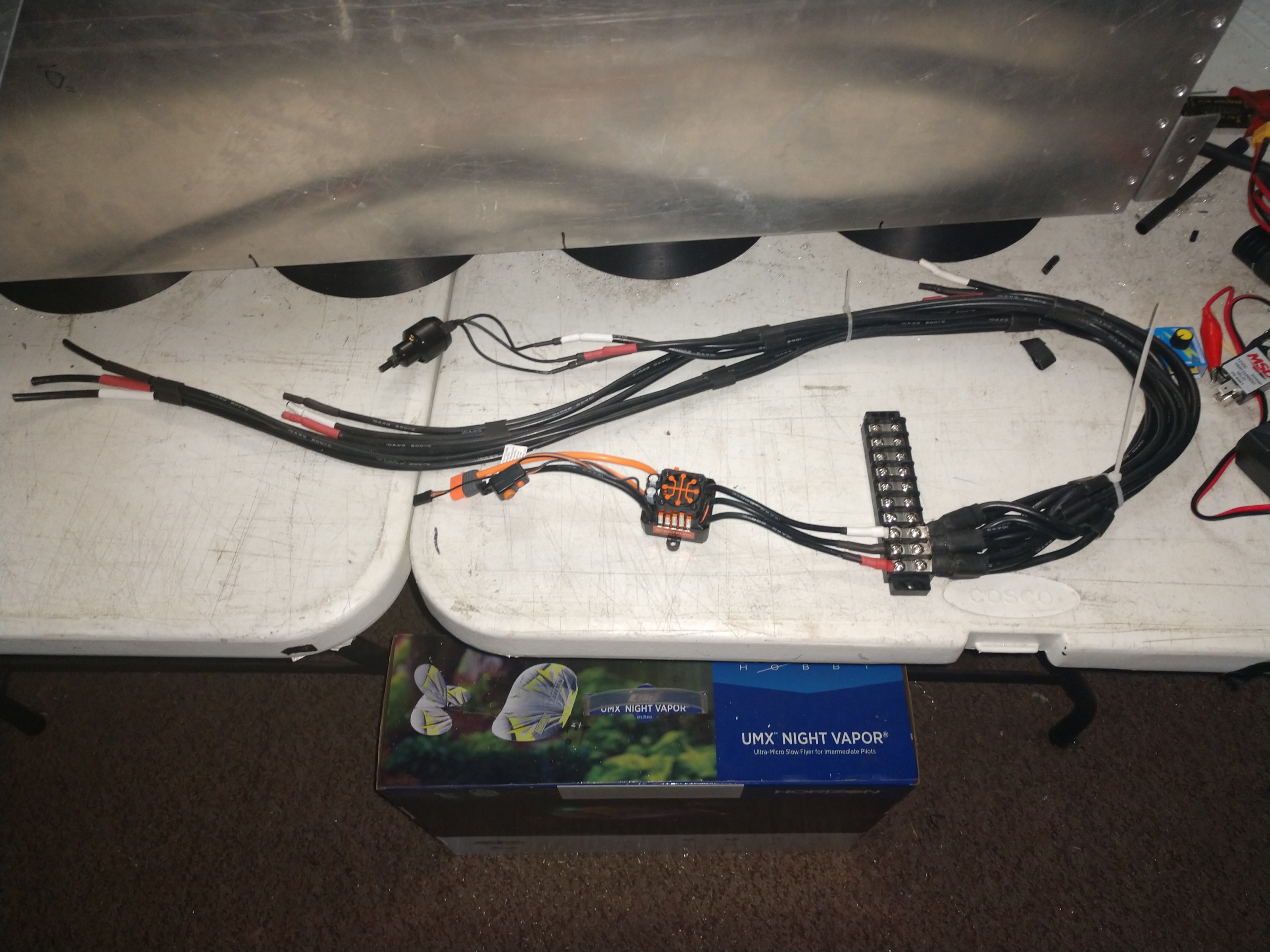 This is the power distribution wires. With a motor plugged in. The wires are color coded because I need to have all the motors going the same direction.