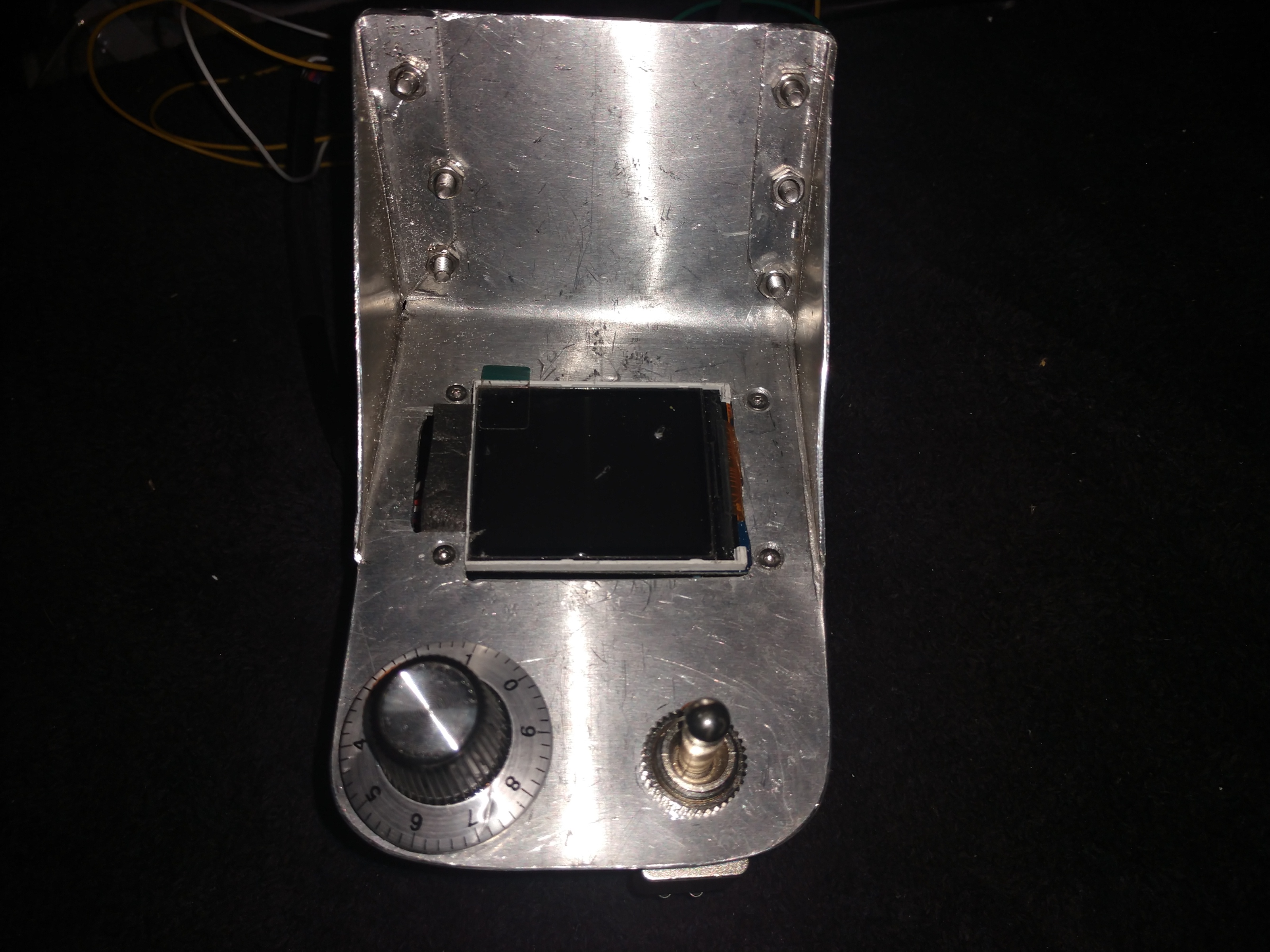I mounted the screen to a large piece of scrap and mounted 1 of the sensors to a very small piece because they take really small screws. M1 I'm, finding that I can mount it to something that I like to work with, like 18 gauge aluminum. Just like everything else, I have no idea what I'm going to do with the screen. But it's probably going to need a shade of some sort. |