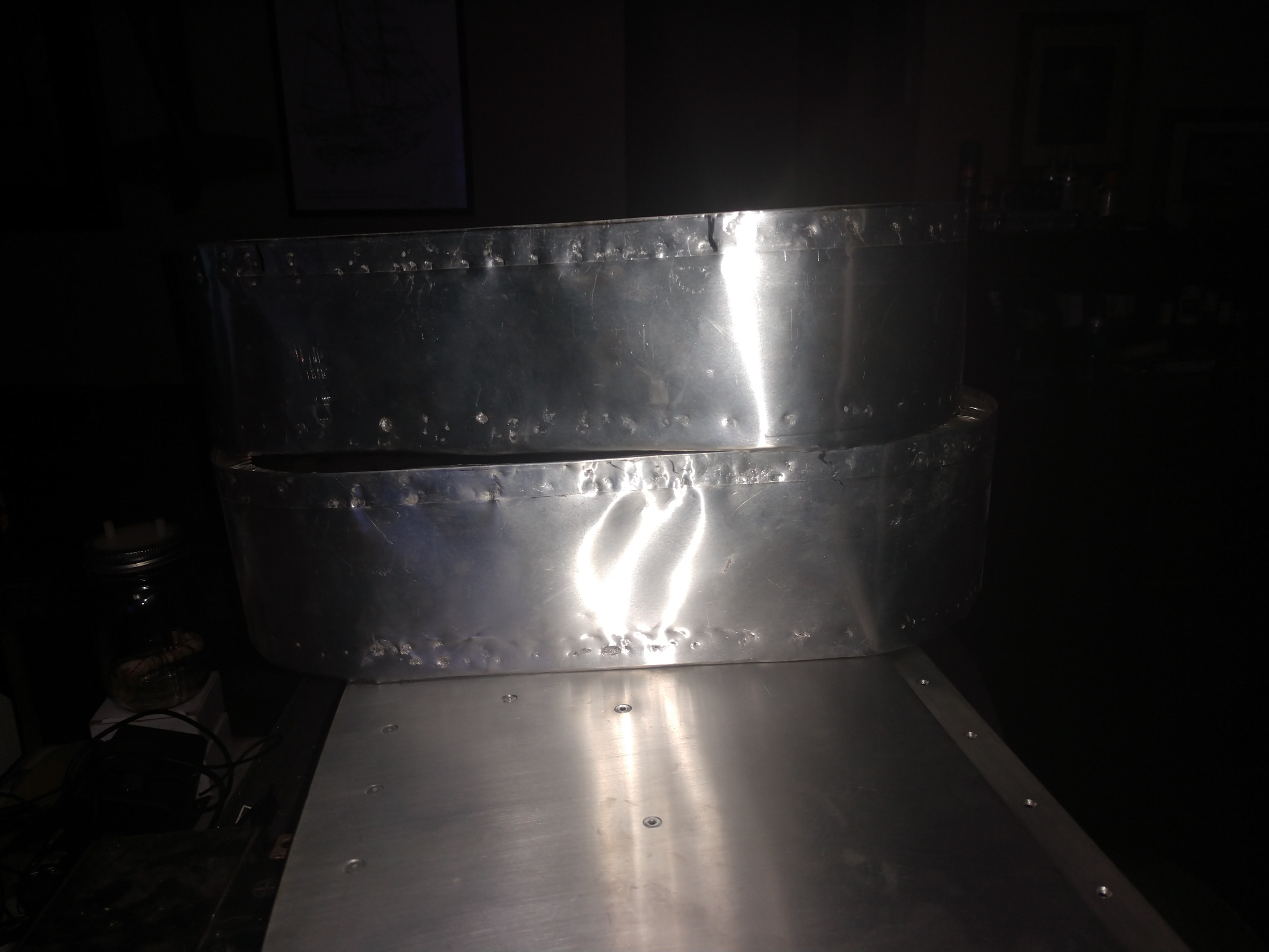 I was trying to get some thing done and was dealing with bad weather. So I made my first mistake, I put up a table on the living room. When that project was done I took down the table and got my living room back. In a few days I wanted to do another project and it was a little bigger, so I set up 2 tables. My living room has become my shop. A/C and heat, I love it. The other day I was watching something on Starbase and I got a good view of the rocket garden. Starhopper and the later models. I looked back at the tables and I had placed a plenum on top of the air box. The plenum looked like it was built by the water tank crew. I have decided to make new plenums. The quality of my work is much better than it was when I made up the plenums.
