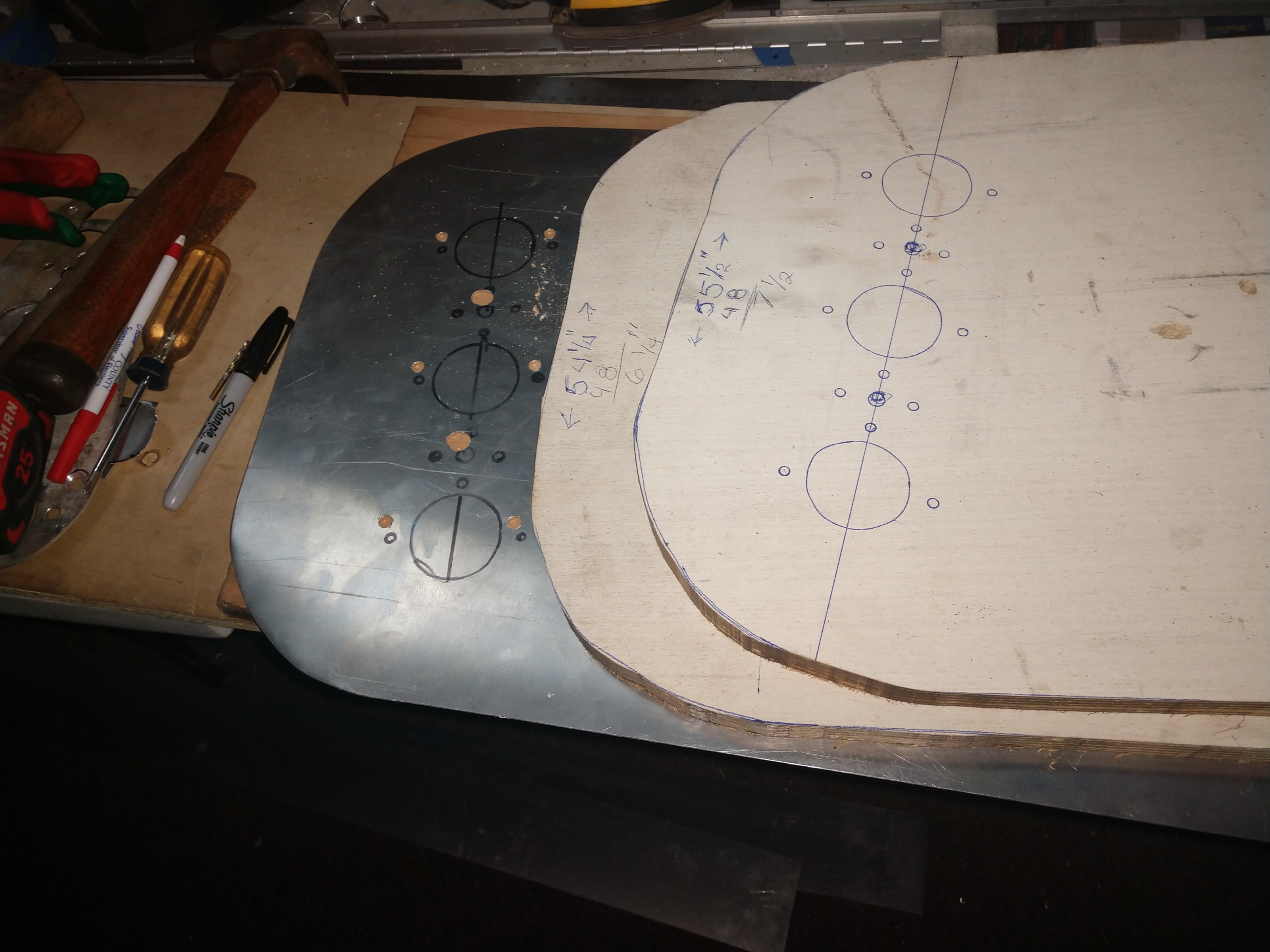 The 3/4" plywood I am using as a guide while I use the shrinker and stratcher on the aluminum angly. |
