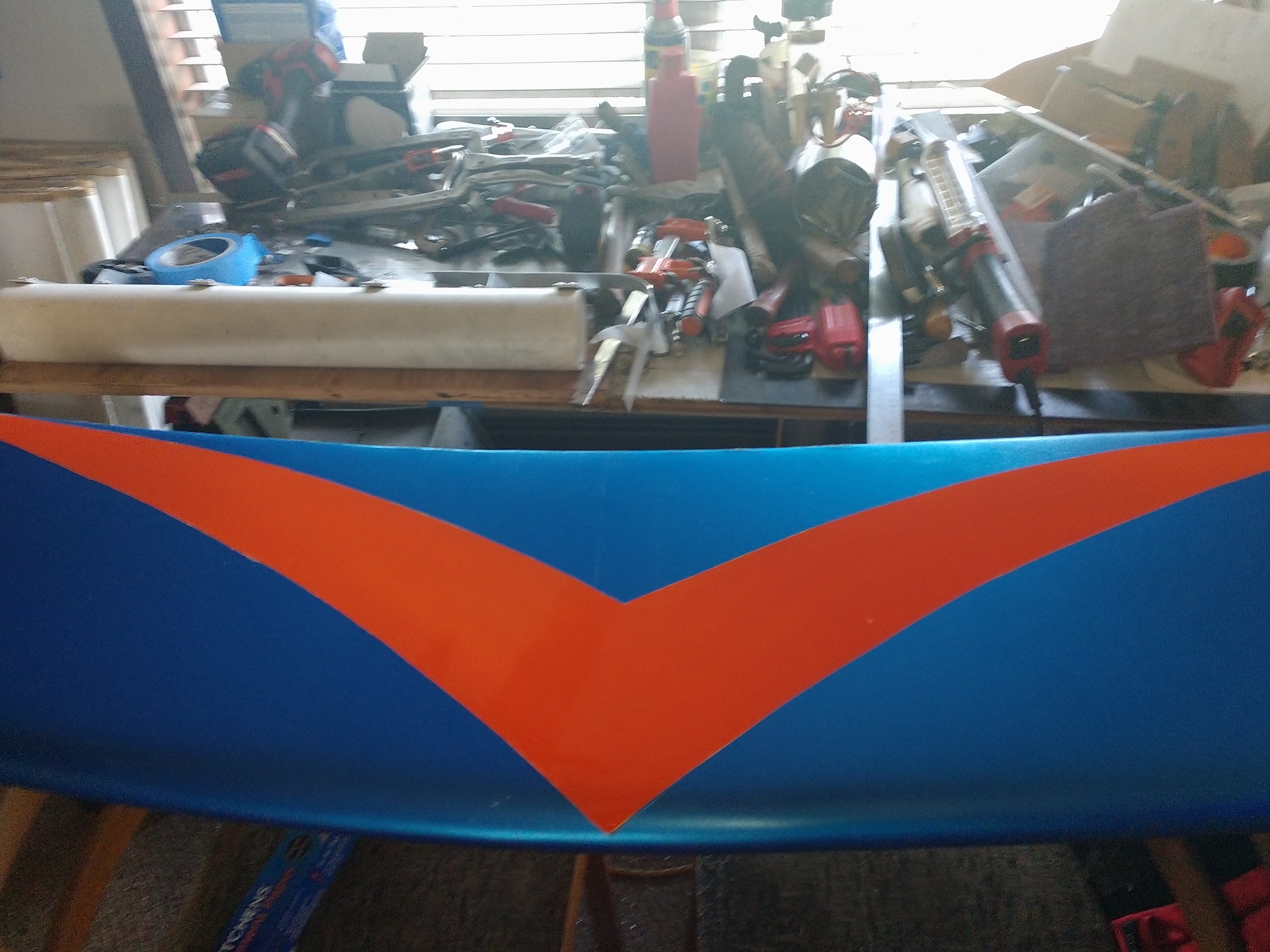 I only posted this picture to edit it. Man did it need it. When I started the rework of the car I thought it needed about 15 pounds of more weight on the front end. Unknown to me the car had some camber left in the suspension but all of that is mute now that I'm doing a complete front suspension change. This could go on forever, probably what's keeping me alive like O'l Lady Winchester, but she died too. That is the 15 pounds I was looking for. Plus about 60 pounds of down force if the wing works. |