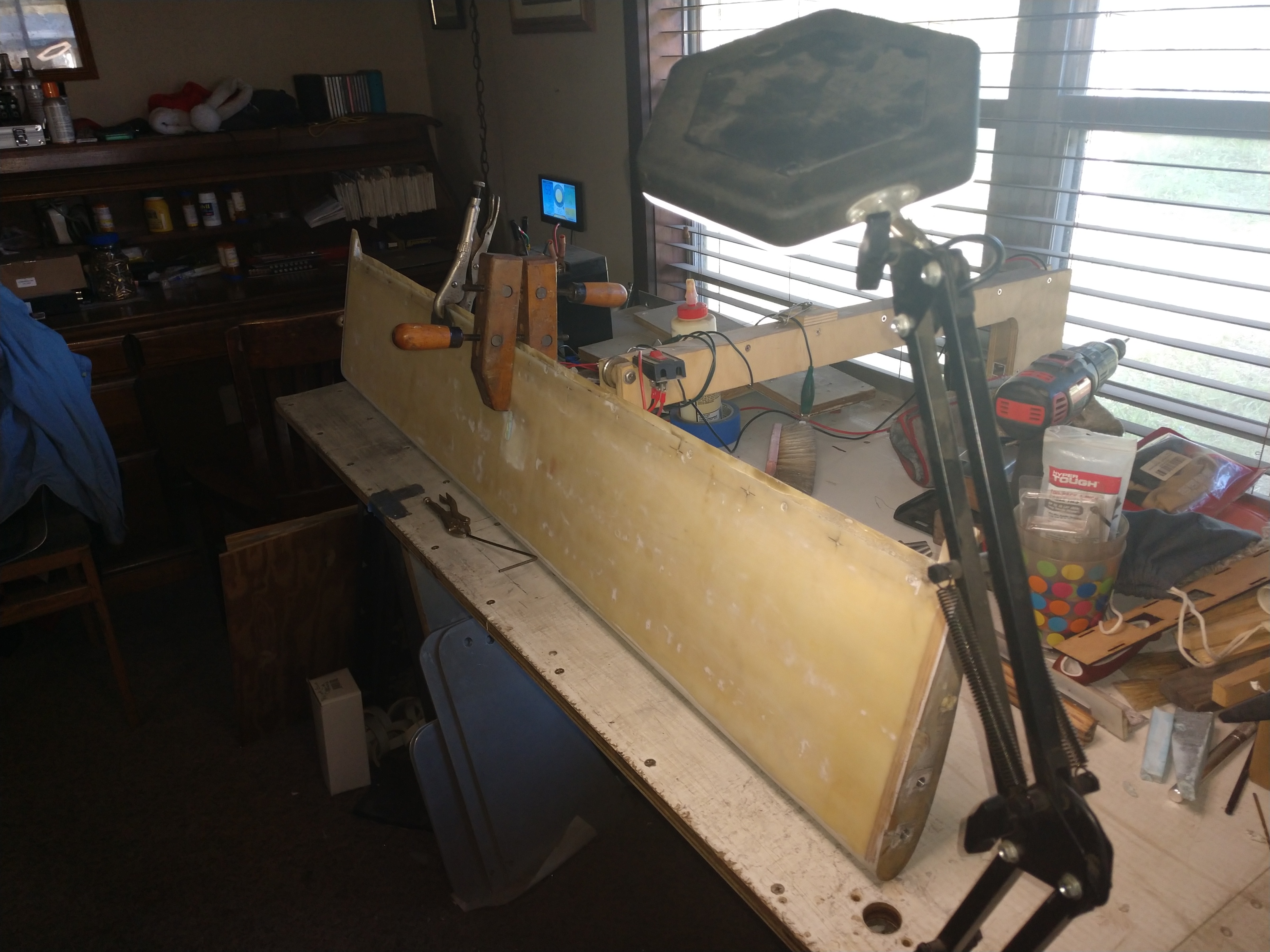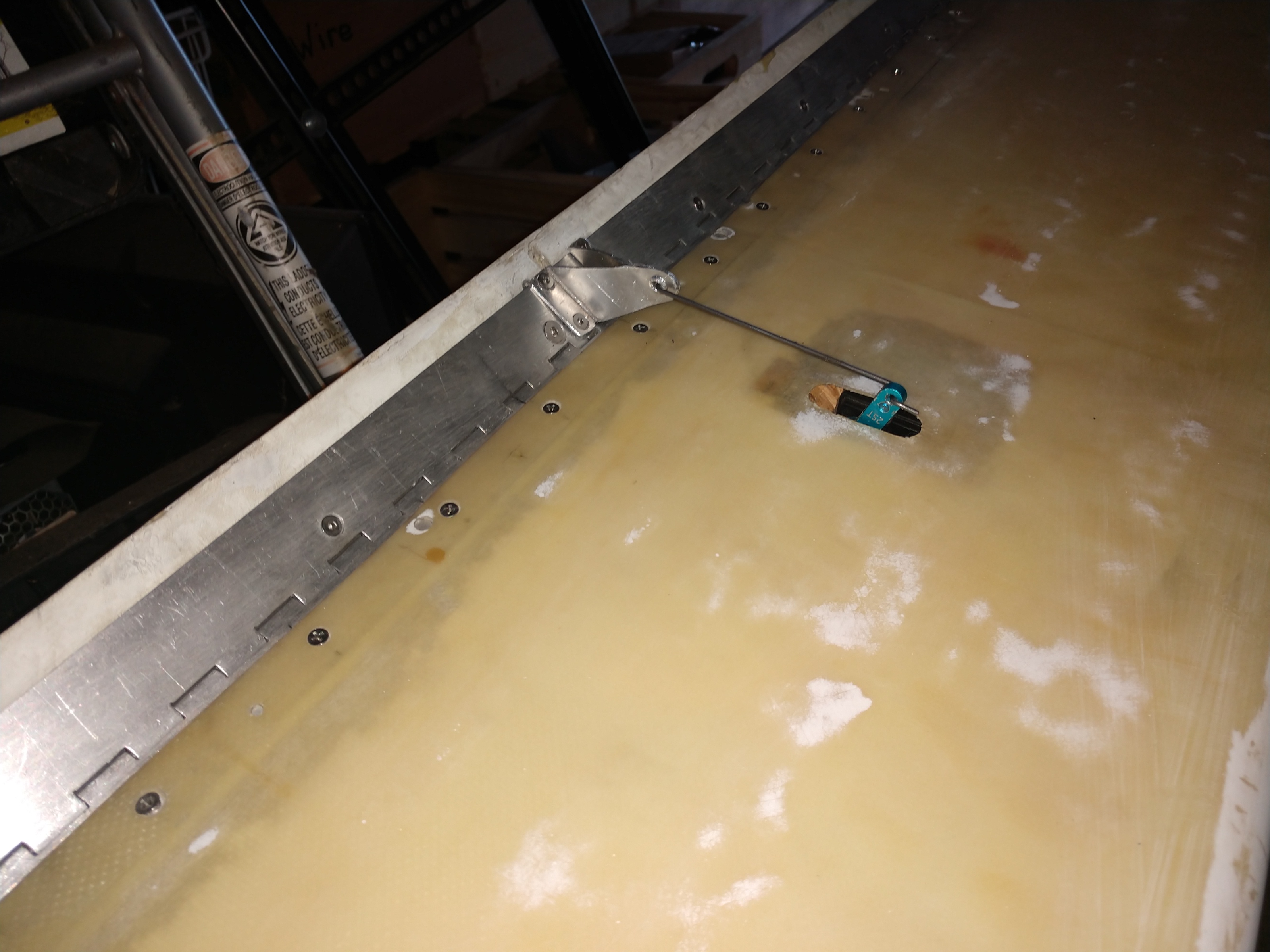 Repairs on the rear wing are completed, put in a new hinge and it works much better than the old one. Also reglued the frame (formers to the skin) trying to get some of the rigidity back. It's all good now. Still need to install and tune the servo for the Gurney flap. While doing all this I splashed some alcohol on the wing and when I went to wipe it up it took the paint down to the primer. So I'm done with duplicolor, I had a hard time getting colors from them. I was under the impression that duplicolor had all the necessary products to give me a complete paint job under one label. Now I'm looking at Eastwood.