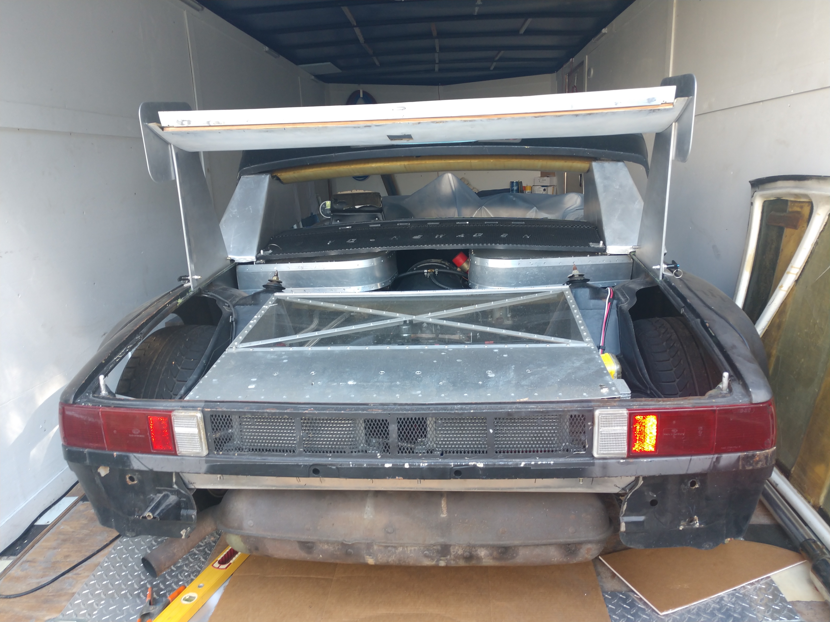 Thanks Scott, I'm trying to not do anything that involves bending over. So not much progress on the car. Right now I need to get some fuel so I can bring her out of the trailer. One of her needs is an oil change, while I'm in there I'll start looking at what it's going to take to get the diffuser started. I've got a pretty good idea what's going to be needed and how to assemble it. New mufflers, straight megaphones with Supper Traps. Can't wait, need to get the car up on the stands.