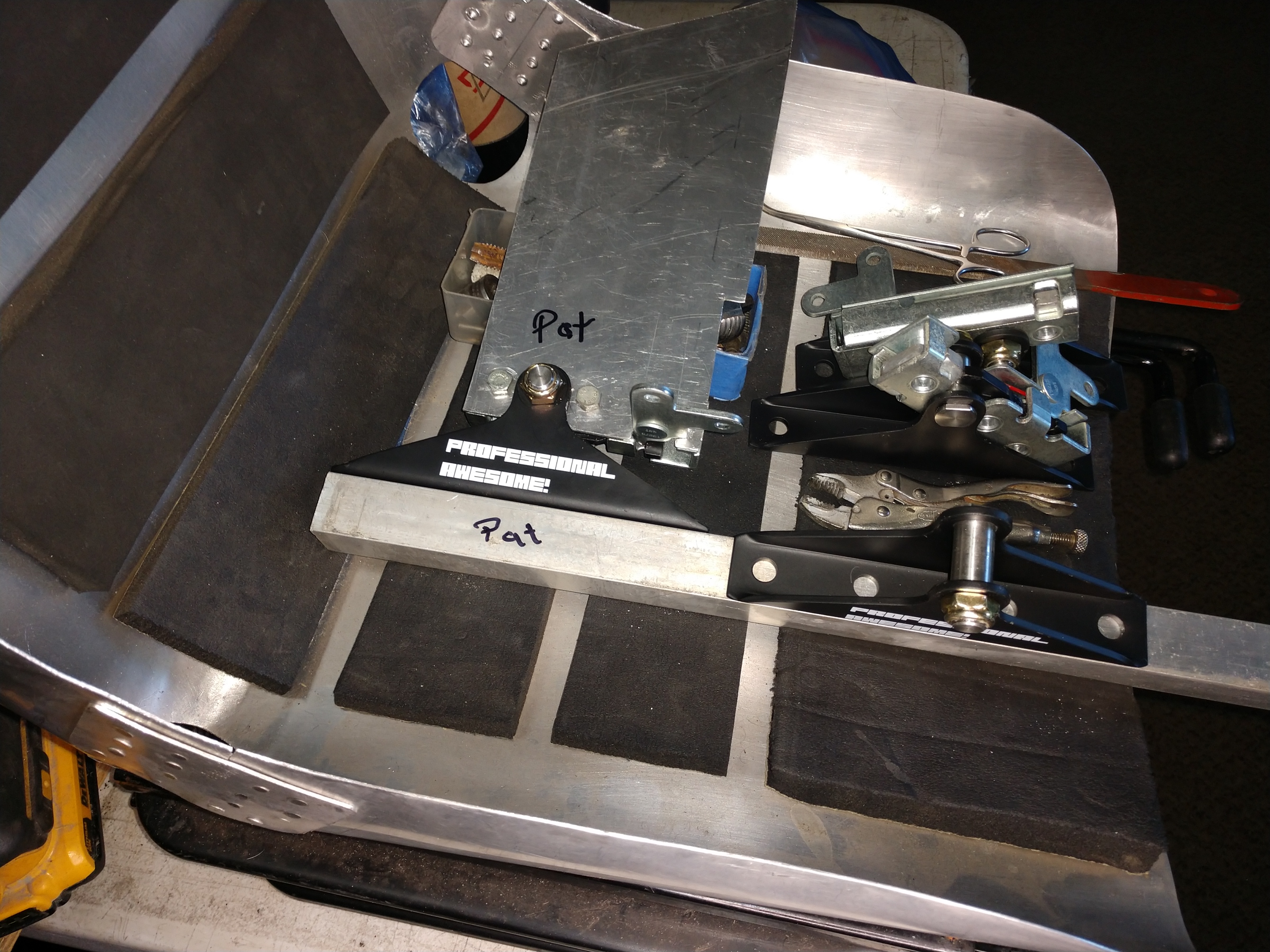 What the fuck Joe, get with the program. A thousand viewers between my post's. Well I'm doing stuff like trying to find some latches for the diffuser really the name of the company that makes them is Professional Awesome Racing. Neat latches, they also have some adjustable splitter support rods that are compressible. I have also been researching Duzs fasteners. I had used some on a dune buggy years ago but I needed to bring me up to date. Building the flat bottom isn't going to be easy as it will require a lot of reaching to get the fasteners in the center of the car. The flat bottom is about to get started and I have a handle on the diffuser.