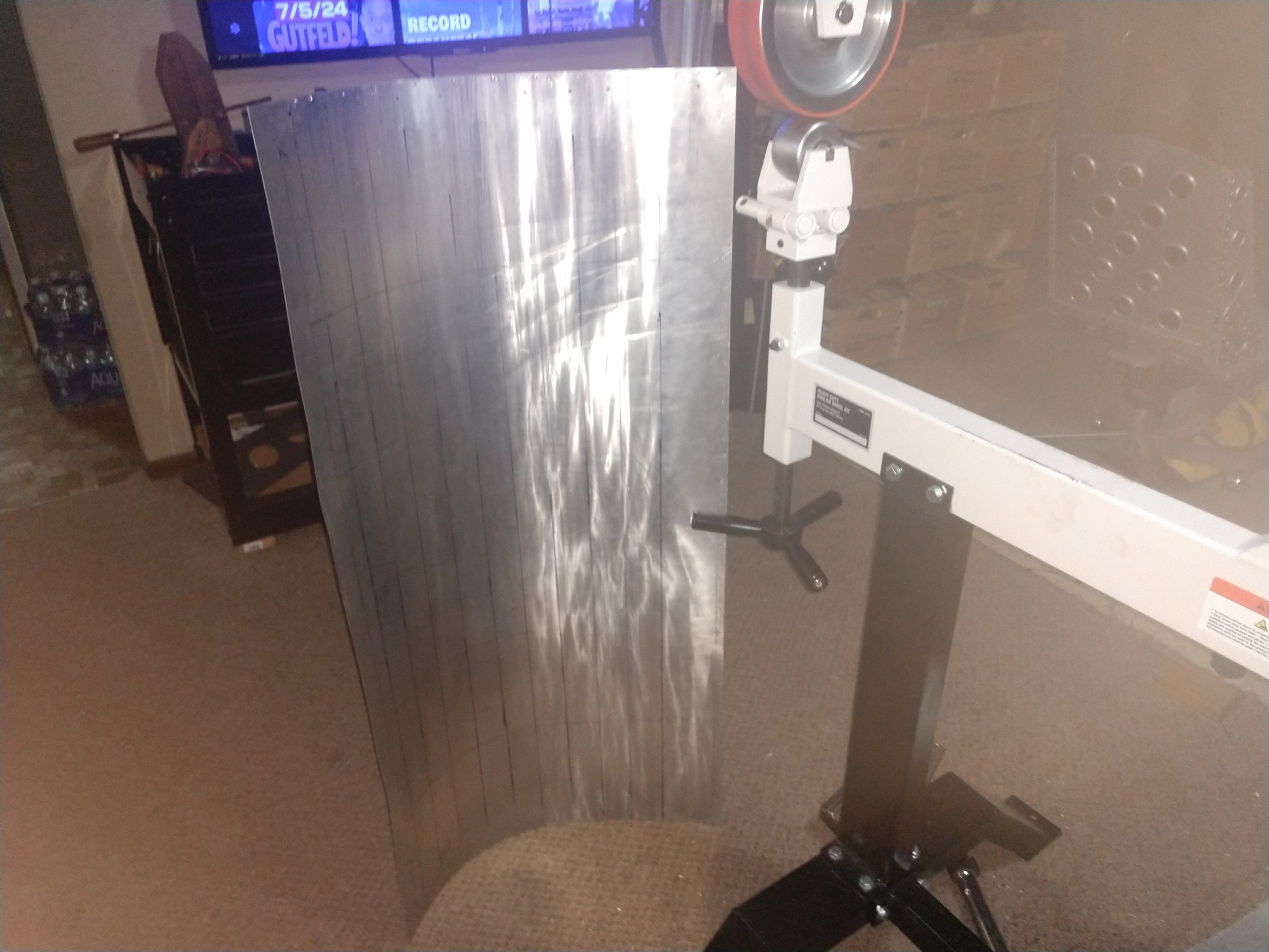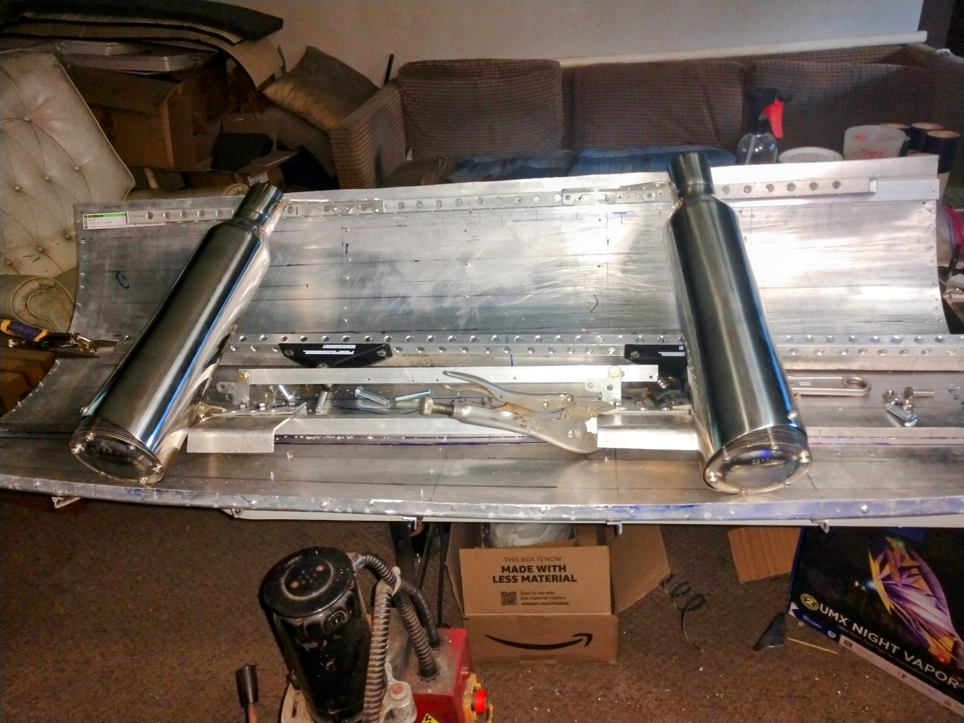 Today is my 10th anniversary here in my house. Closed escrow on 7-3-2014. The shape of the panel I just produced is perfect and will help me with a decision on the exhaust system. What I'm thinking about is dial megaphones with supertraps. But they interfere with the diffuser. I'm trying to fit them in-between the stakes and I thinking about it all the time. I have a slip roller. But just like anything else I have no idea yet.