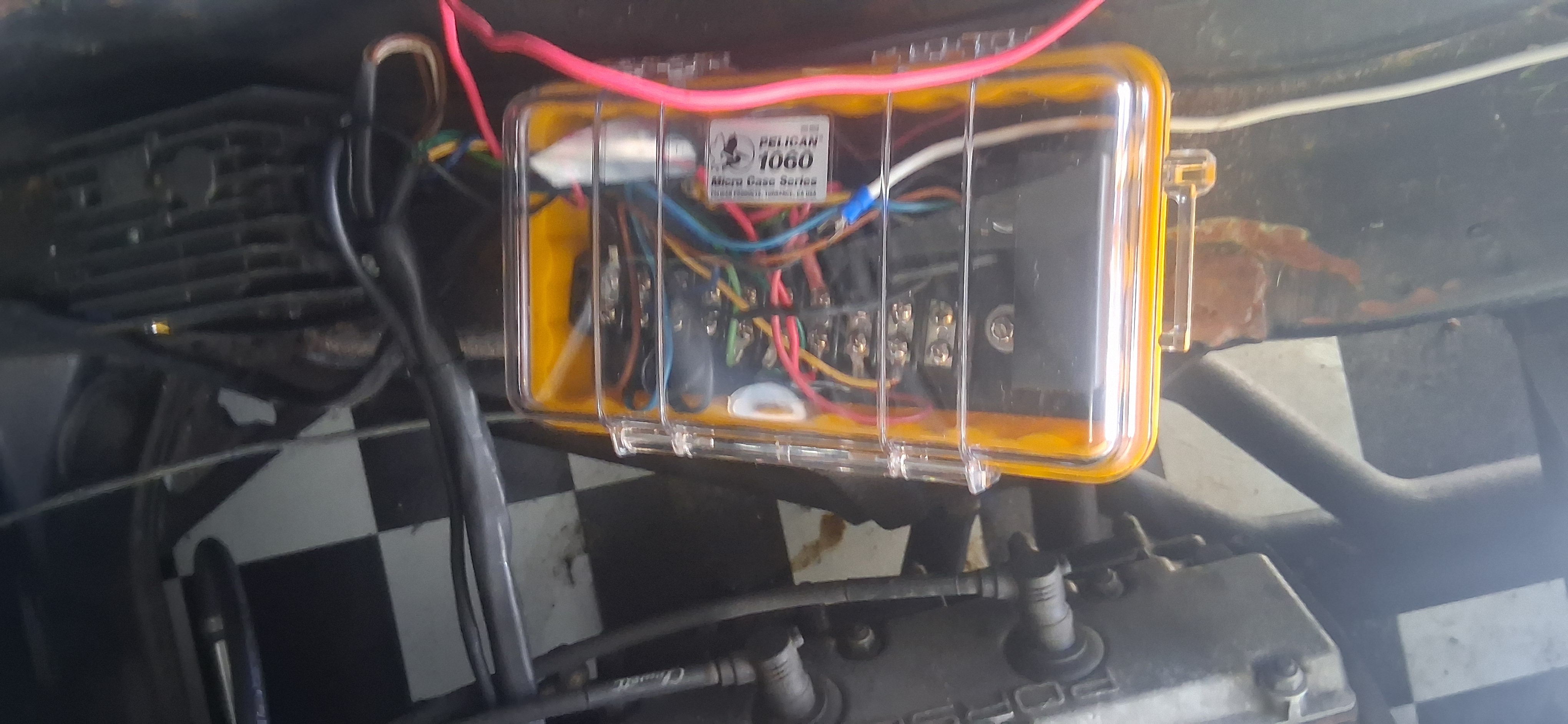 Working on the car. Tried to start her, out of fuel. Have some on hand, fill her up and try again. When I moved her I was at the end of an oil change and checking all the new hoses for leaks and I was topping off the oil. After all that I have some questions about wiring in the new yellow box. Back to work.